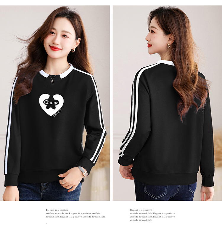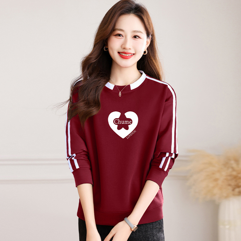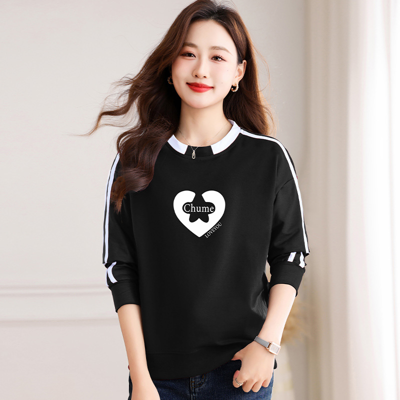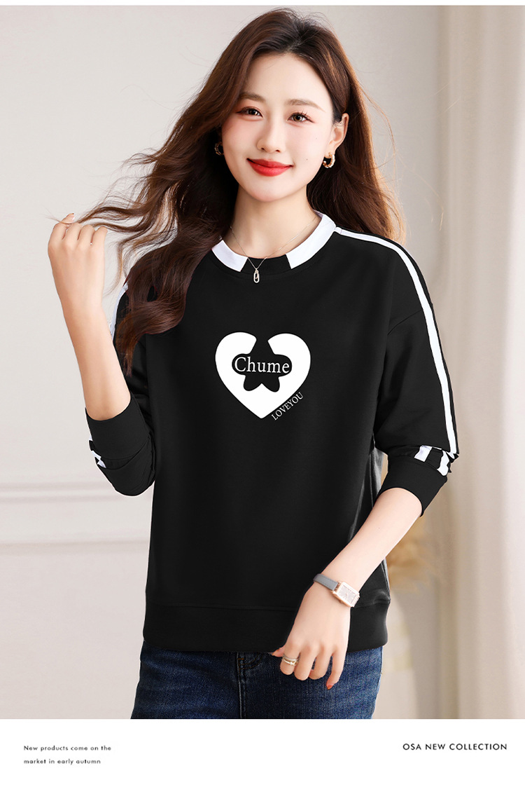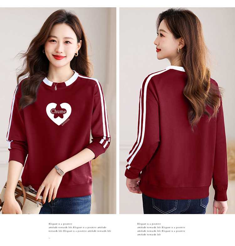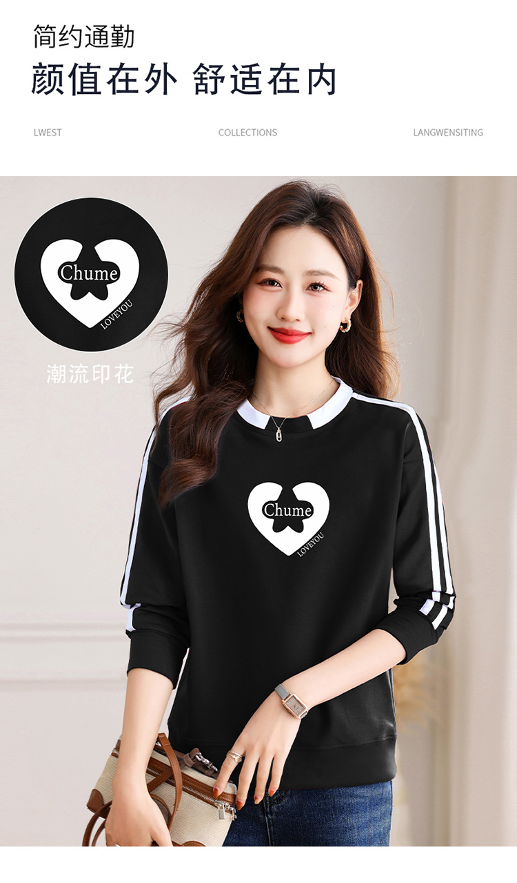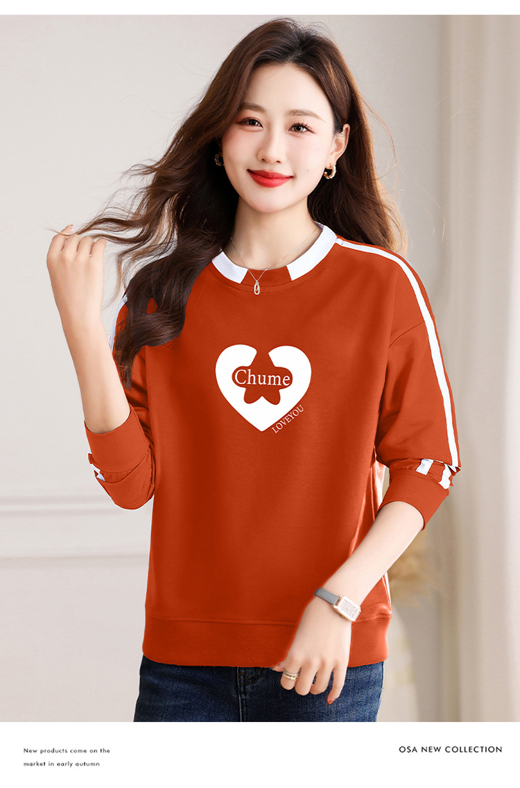 크메르 패션 캐주얼 삽입 컬러 블록 인쇄 된 콘트라스트 컬러 크루 넥 스웨터 여성의 봄과 가을 서양 스타일 중년 어머니 티셔츠스토어 가기