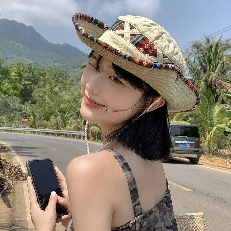 어부 모자 야외 레저 오래 된 데님 양산 모자 남성과 여성을위한 서양 데님 등산 어부 모자스토어 가기