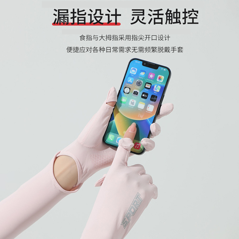 선스크린 장갑 여성용 아이스 실크 안티-UV 사이클링 전기 자전거 긴 얼음 소매 여름 통기성 얇은 운전 소매