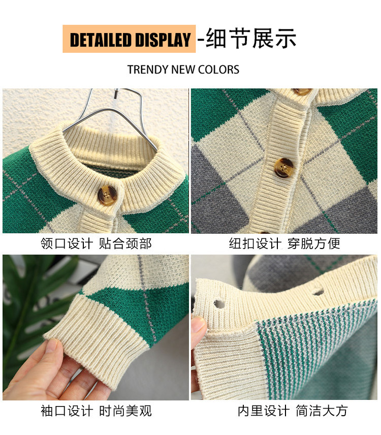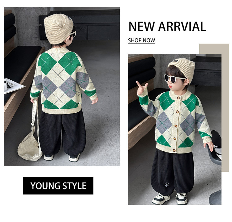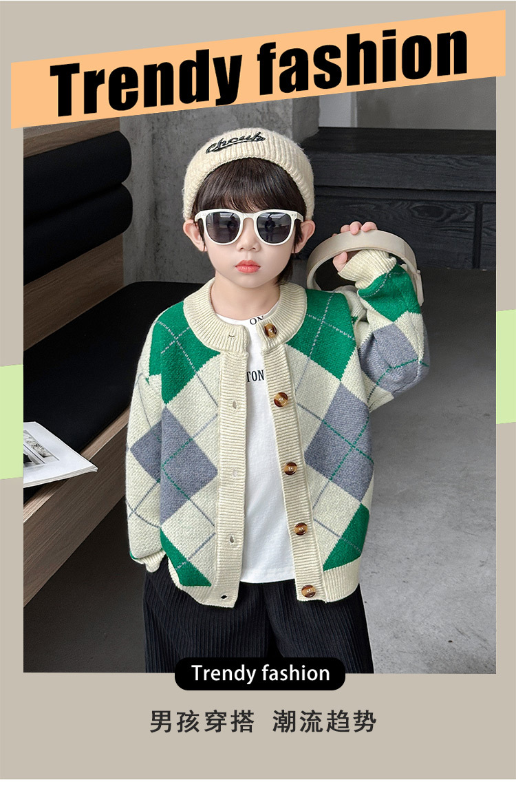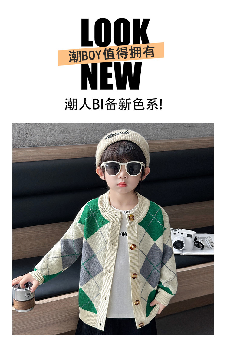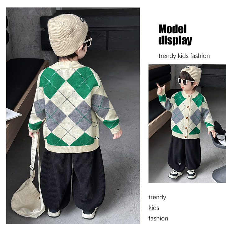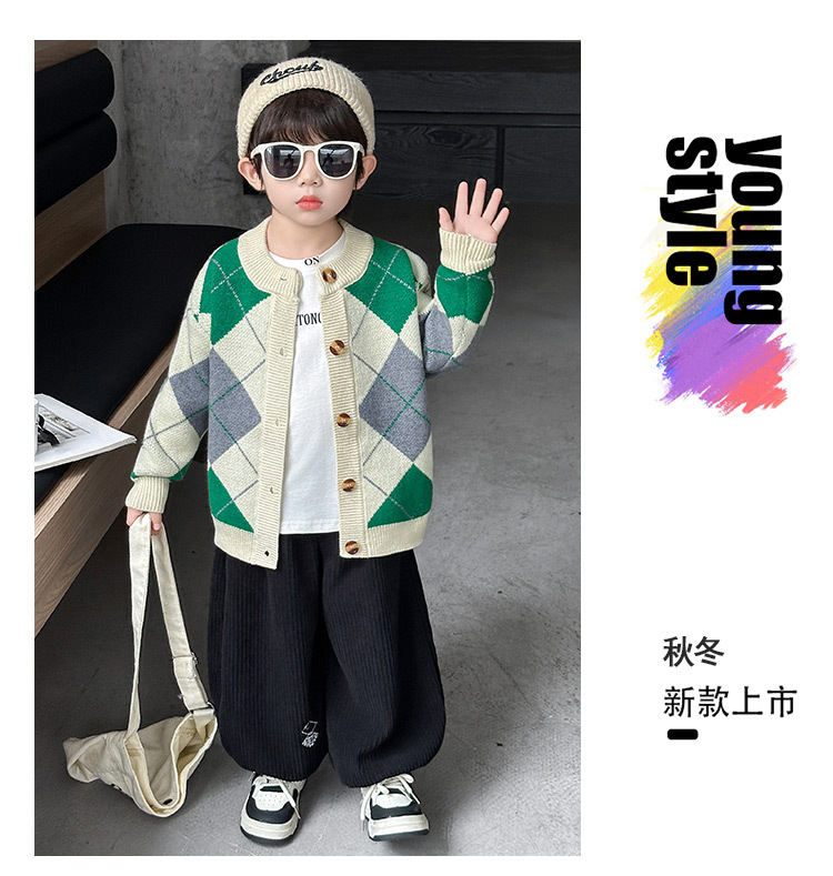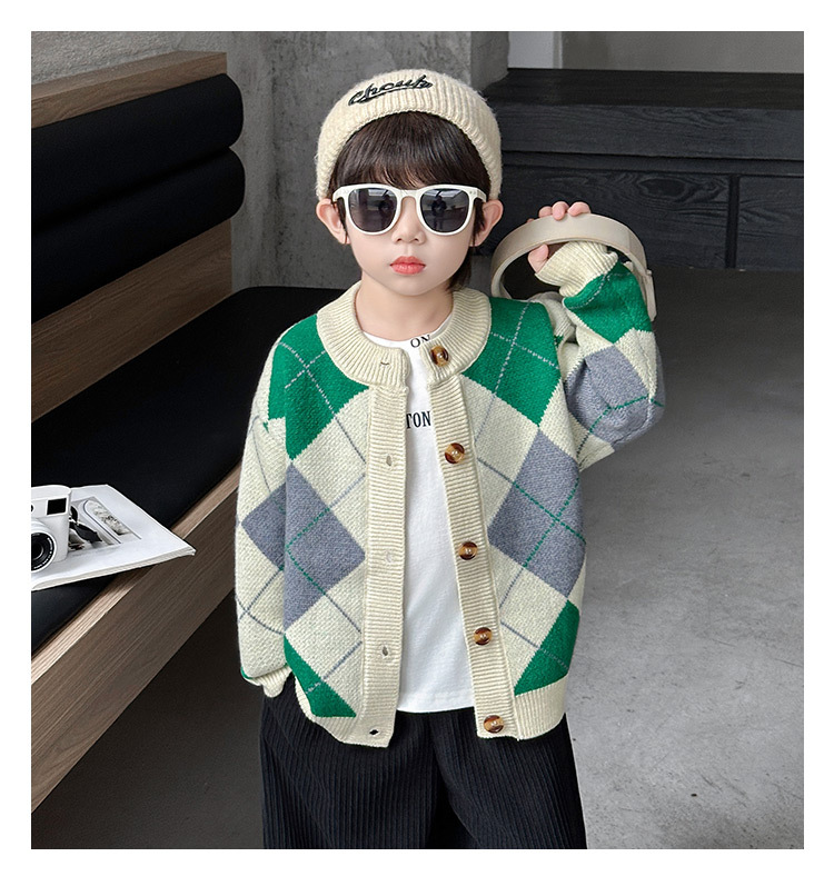 남아용 가디건 스웨터, 패셔너블한 신상, 스타일리쉬한 중소형 아동용 봄가을 아우터, 아동용 한국 스타일 마름모 니트 스웨터, 트렌디스토어 가기