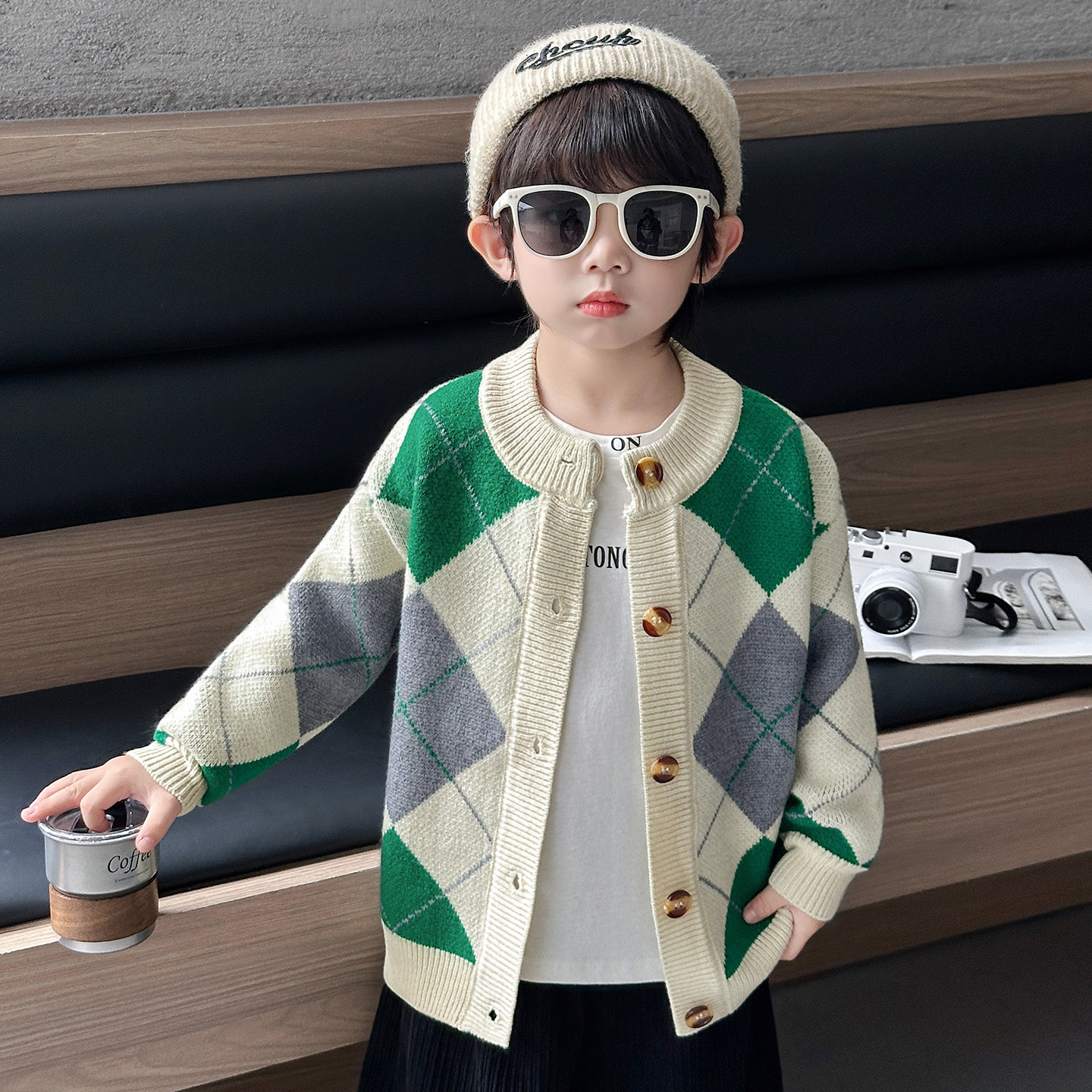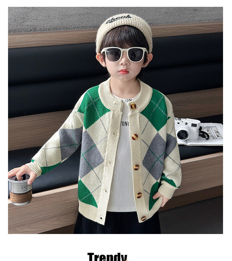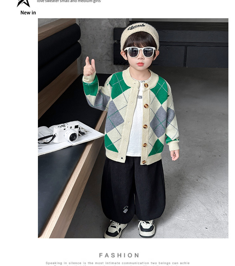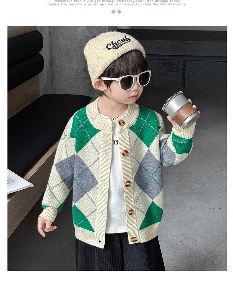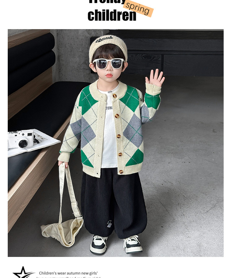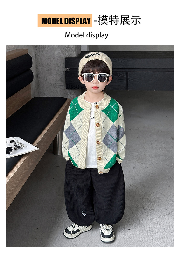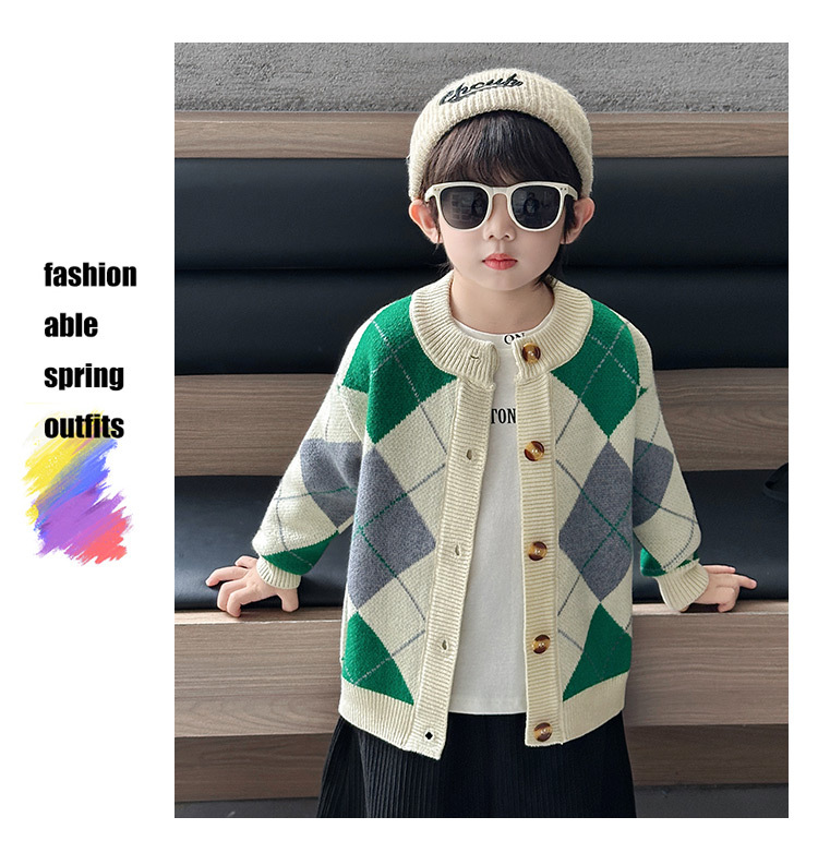 남아용 가디건 스웨터, 패셔너블한 신상, 스타일리쉬한 중소형 아동용 봄가을 아우터, 아동용 한국 스타일 마름모 니트 스웨터, 트렌디스토어 가기