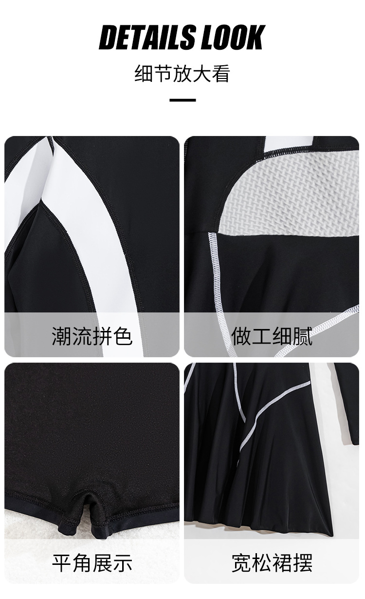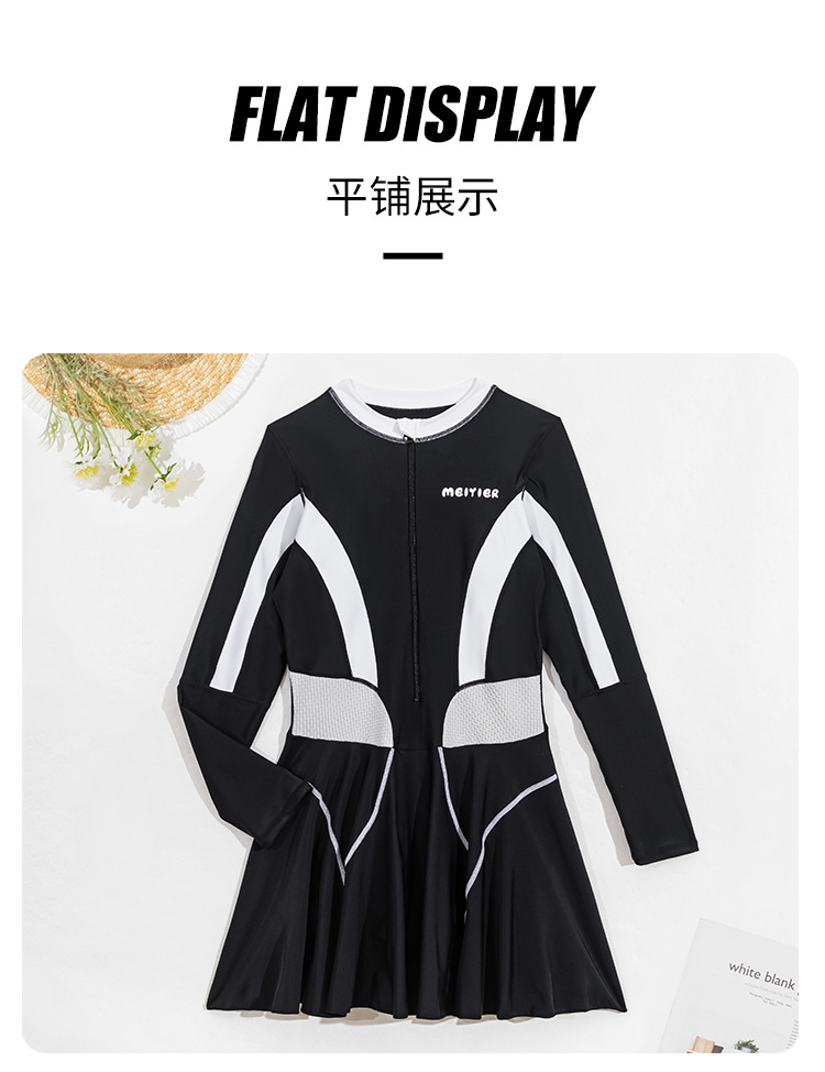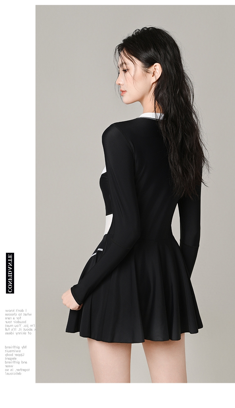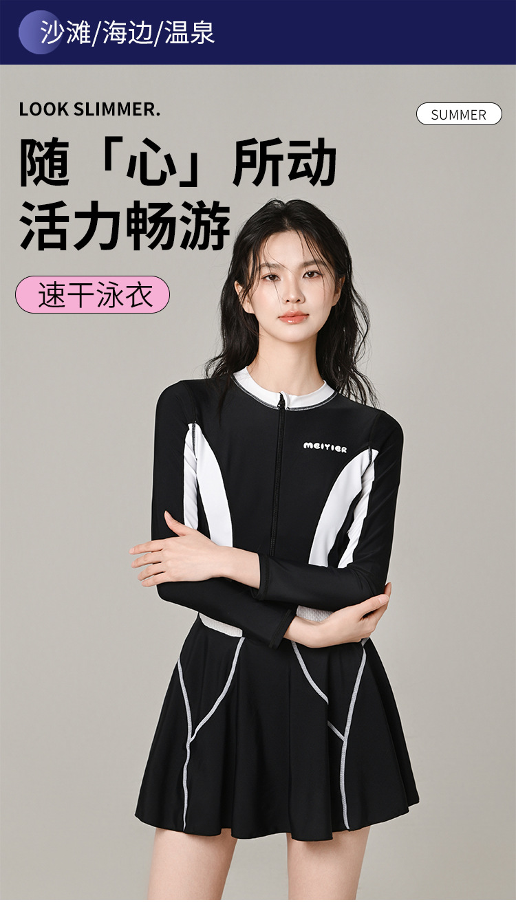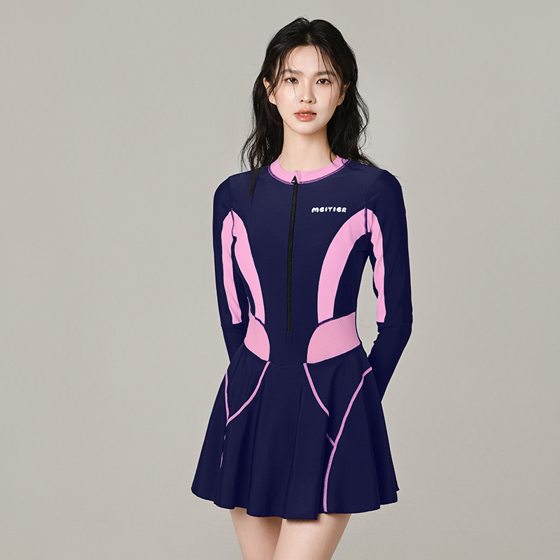 2025 살짝 뚱뚱한 여성을 위한 원피스 수영복, 긴팔 원피스 스커트 수영복, 스포츠 스타일 슬리밍 속건 수영복
