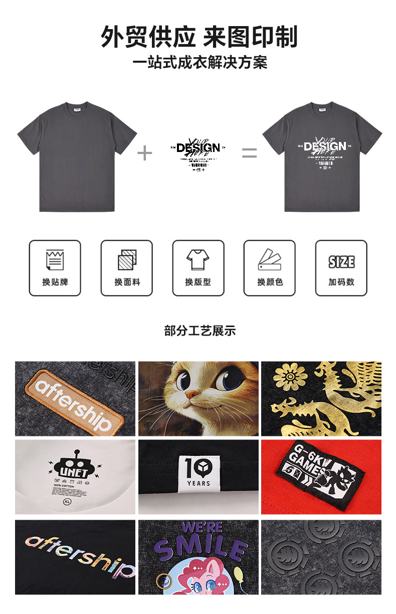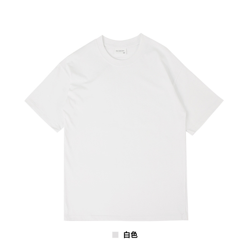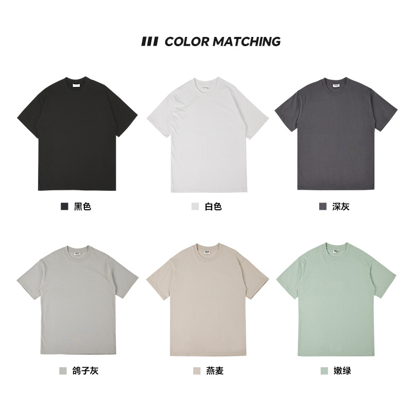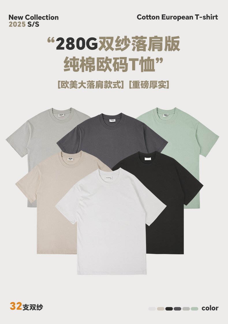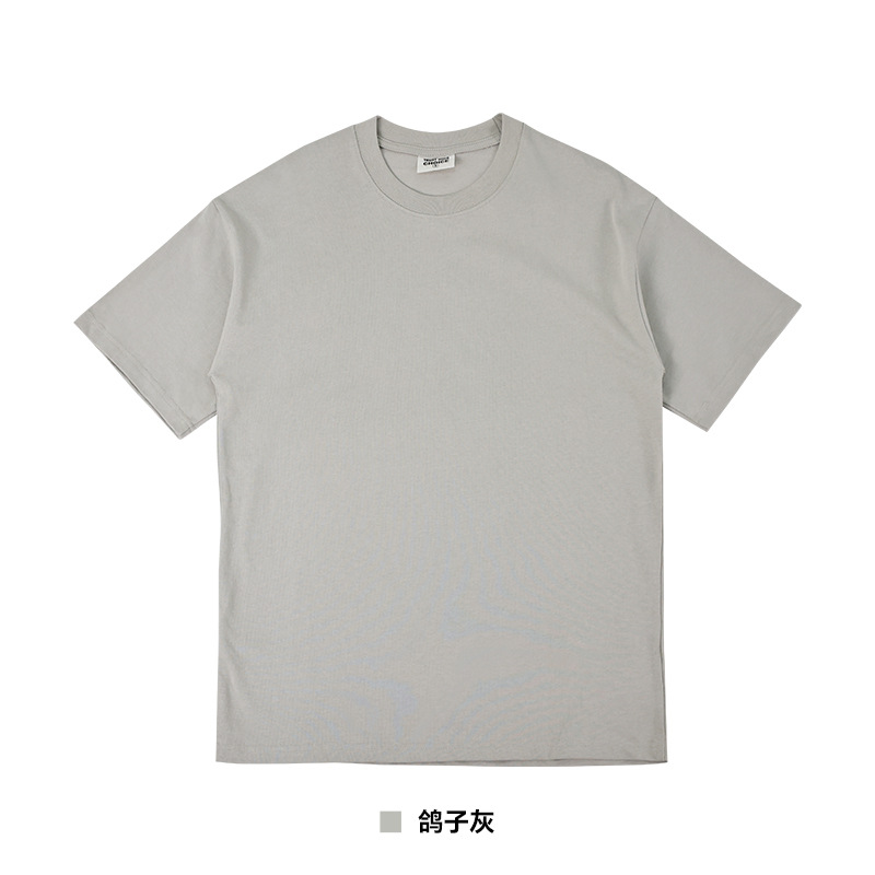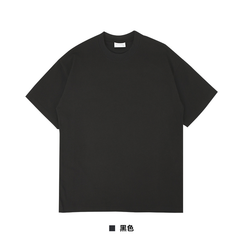 국경 도매 280G 유럽 사이즈 대형 드롭 숄더 더블 원사 코튼 라운드 넥 티셔츠 무거운 빗질 면화 조수 브랜드 짧은 소매 남성
