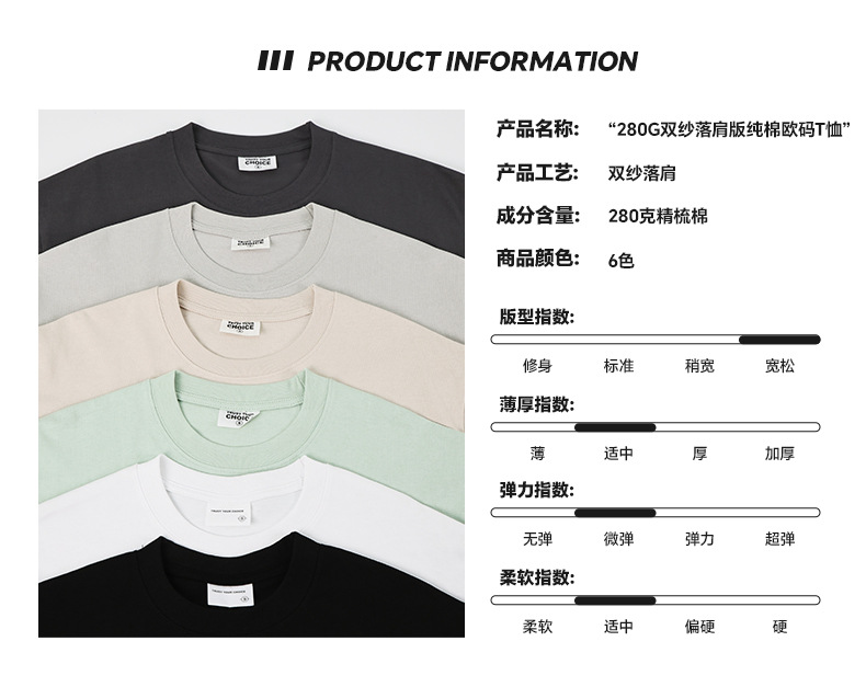 국경 도매 280G 유럽 사이즈 대형 드롭 숄더 더블 원사 코튼 라운드 넥 티셔츠 무거운 빗질 면화 조수 브랜드 짧은 소매 남성스토어 가기