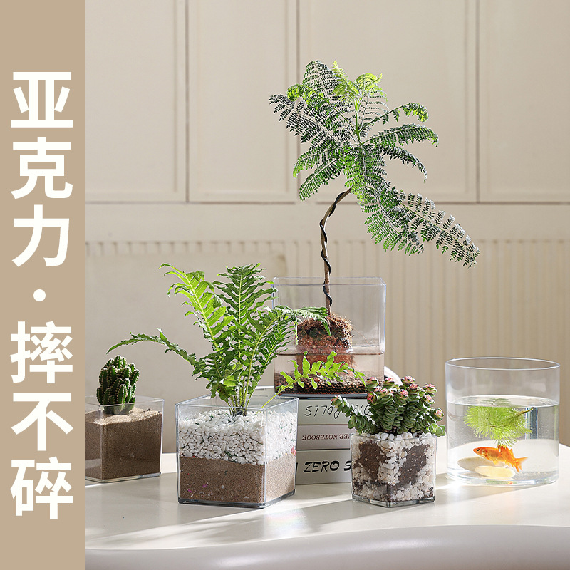 튤립 수경 용기 식물 데스크탑 용기 아크릴 청록색 수경 녹색 식물 사각형 탱크 크리 에이 티브 투명 꽃병스토어 가기