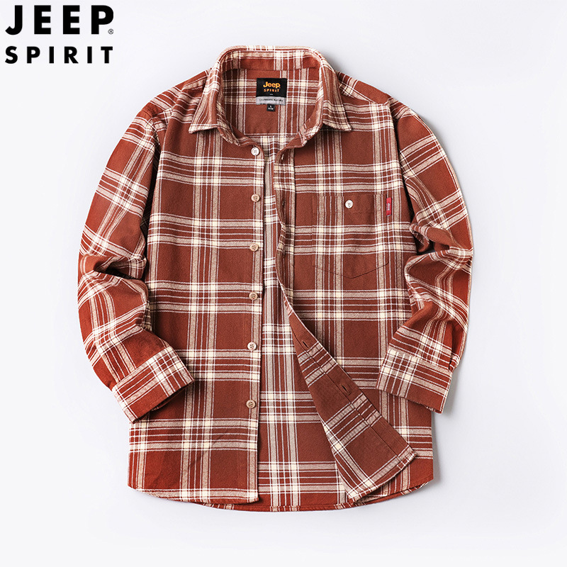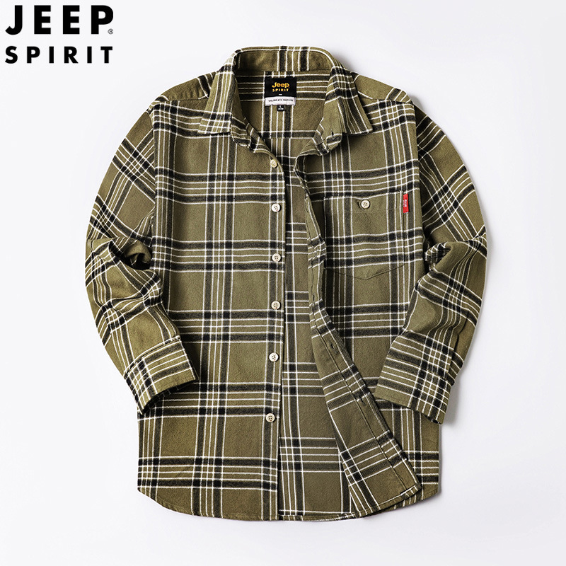 JEEP SPIRIT 코튼 셔츠 체크 무늬 최고 비즈니스 남성용 느슨한 자수 체크 무늬 클래식 캐주얼 봄과 가을.