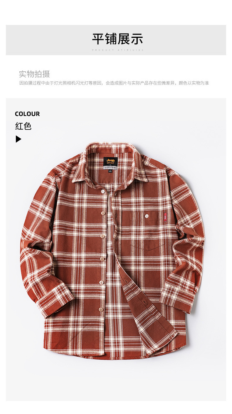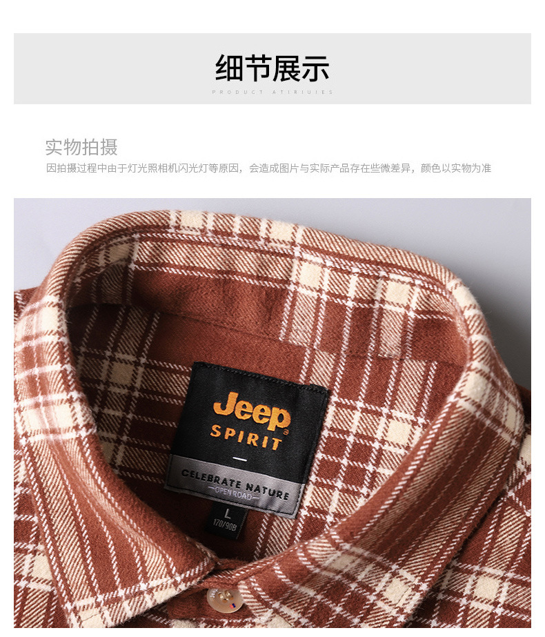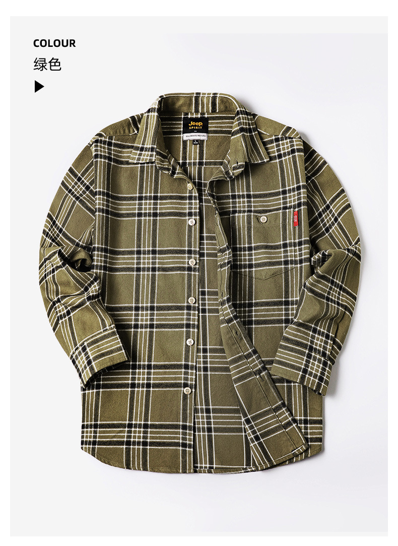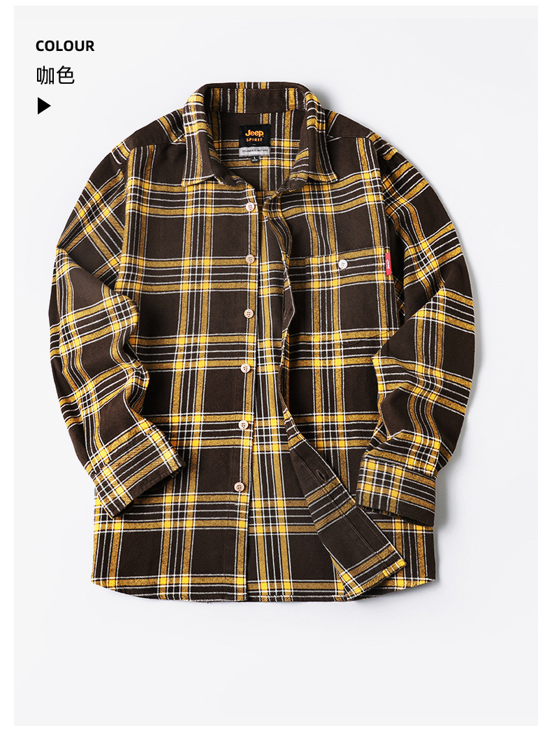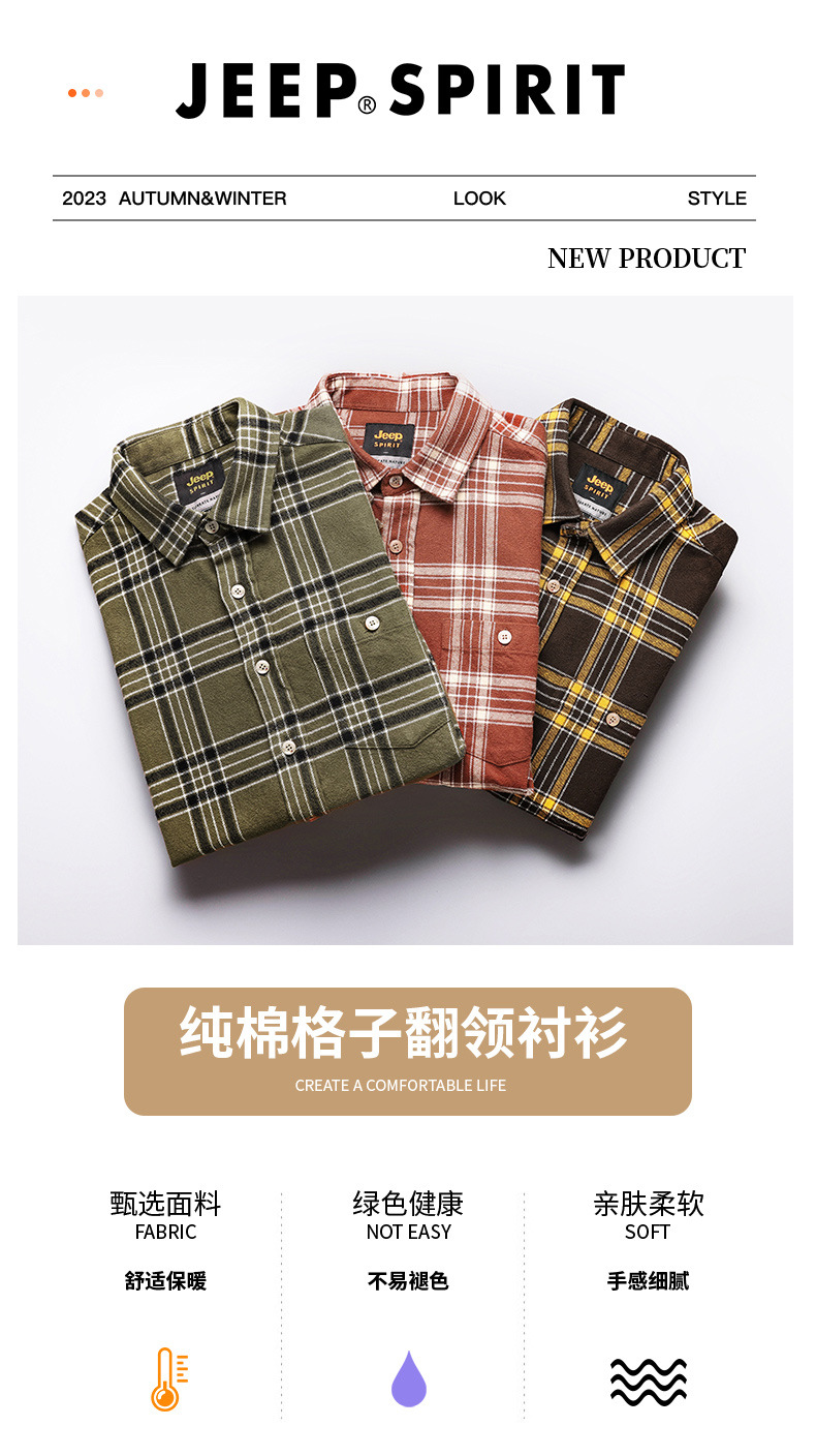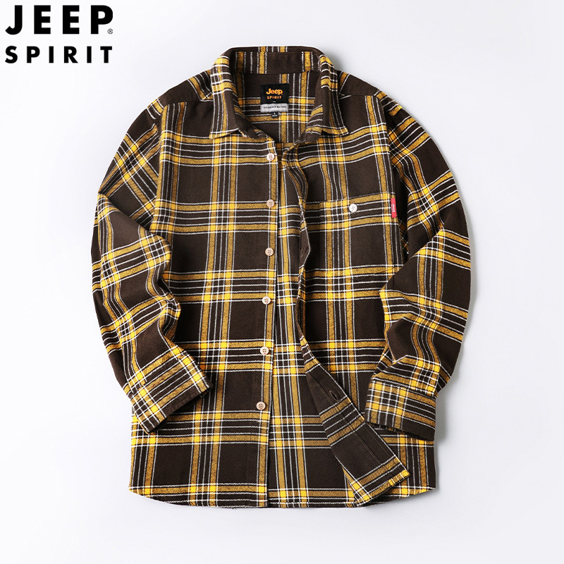 JEEP SPIRIT 코튼 셔츠 체크 무늬 최고 비즈니스 남성용 느슨한 자수 체크 무늬 클래식 캐주얼 봄과 가을.스토어 가기