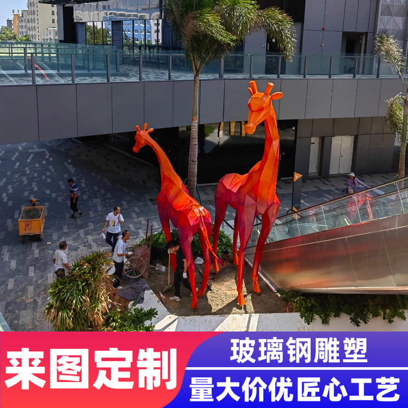 户外大型玻璃钢雕塑 仿真几何长颈鹿广场景观雕塑 装置户外雕塑