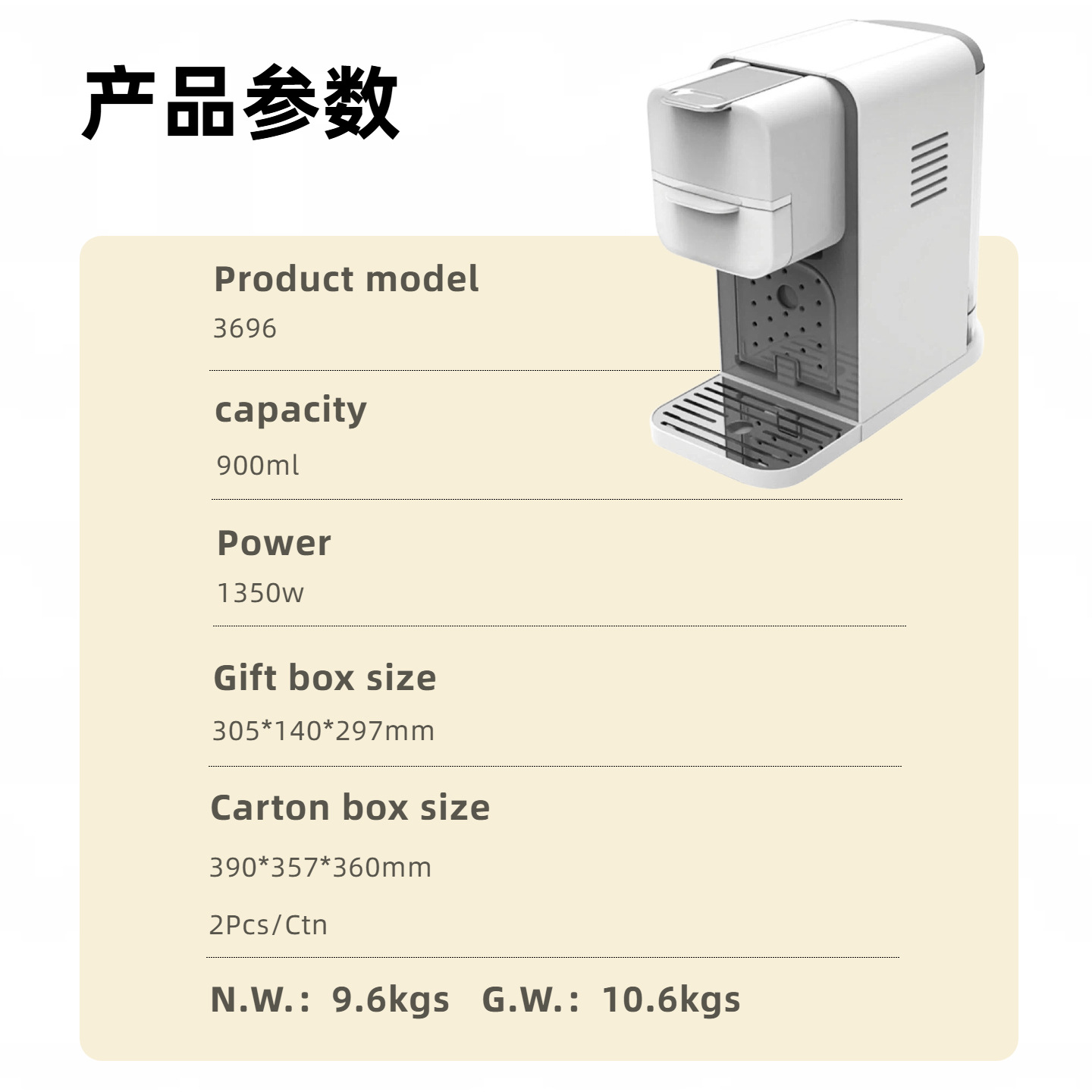 • With 0.9Ldetachable watertank