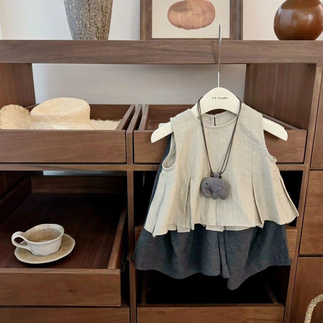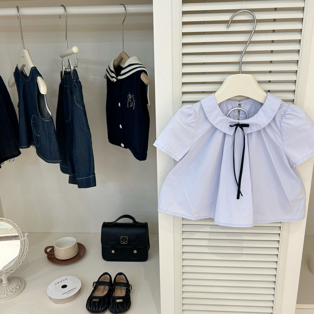 스위트 스몰 시스 봄여름 여아용 컬리지 스타일 단색 플리츠 스커트 세트 여름 반팔 셔츠 투피스 세트 트렌디스토어 가기