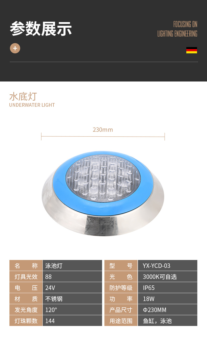 수영장 조명 국경 수중 벽 조명 빌라 호텔 수영장 조명 수중 풍경 조명 다채로운 빛 라운드 다이빙 조명스토어 가기