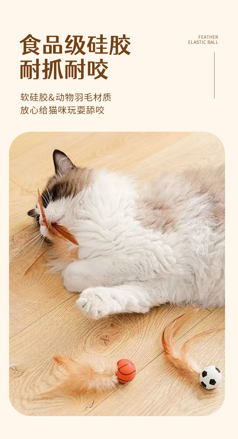 국경 간 새로운 인터넷 축하 치킨 깃털 고무 공 깃털 던지기 고양이 장난감 셀프 하이 애완 동물 장난감