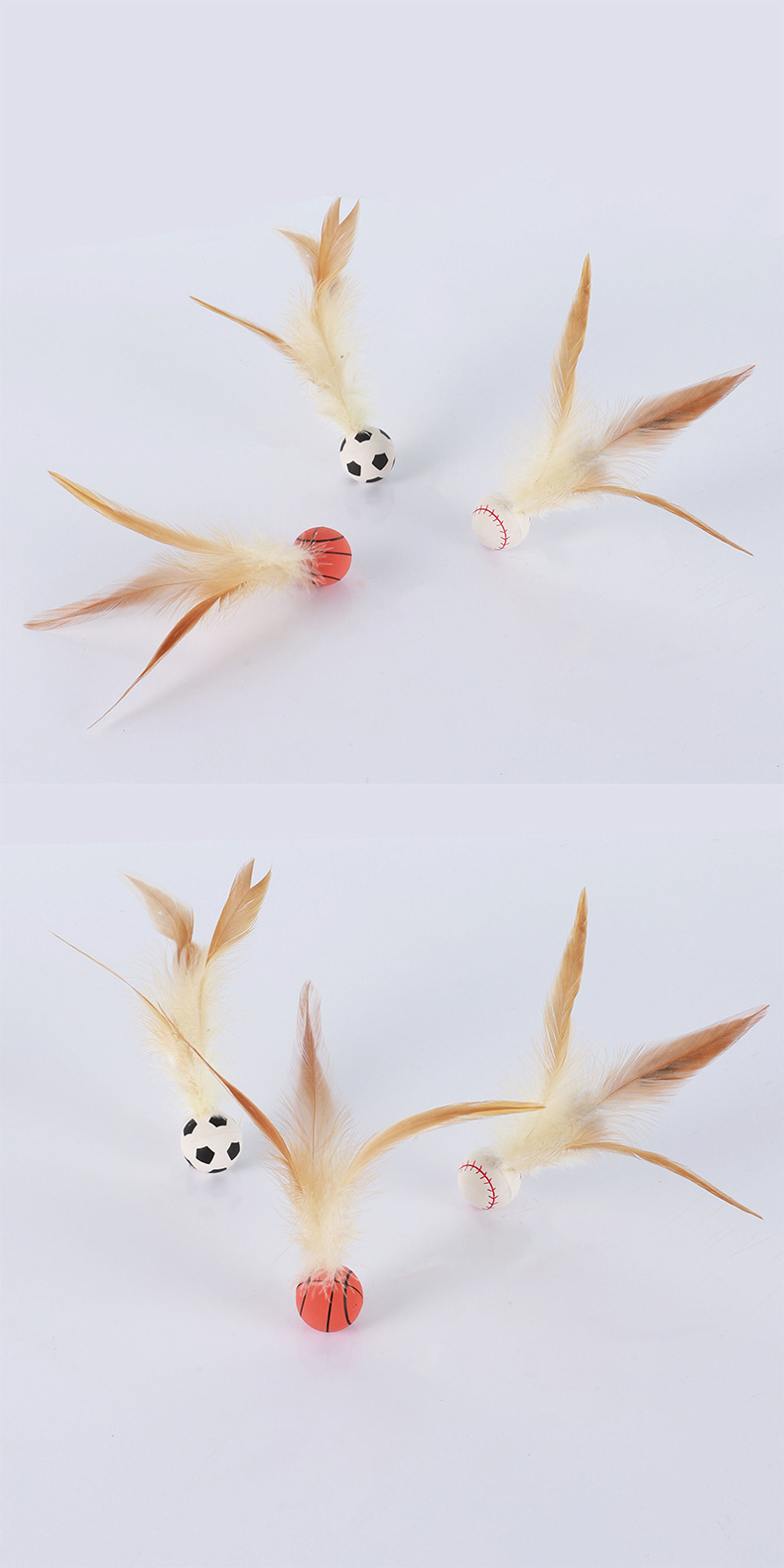 국경 간 새로운 인터넷 축하 치킨 깃털 고무 공 깃털 던지기 고양이 장난감 셀프 하이 애완 동물 장난감스토어 가기