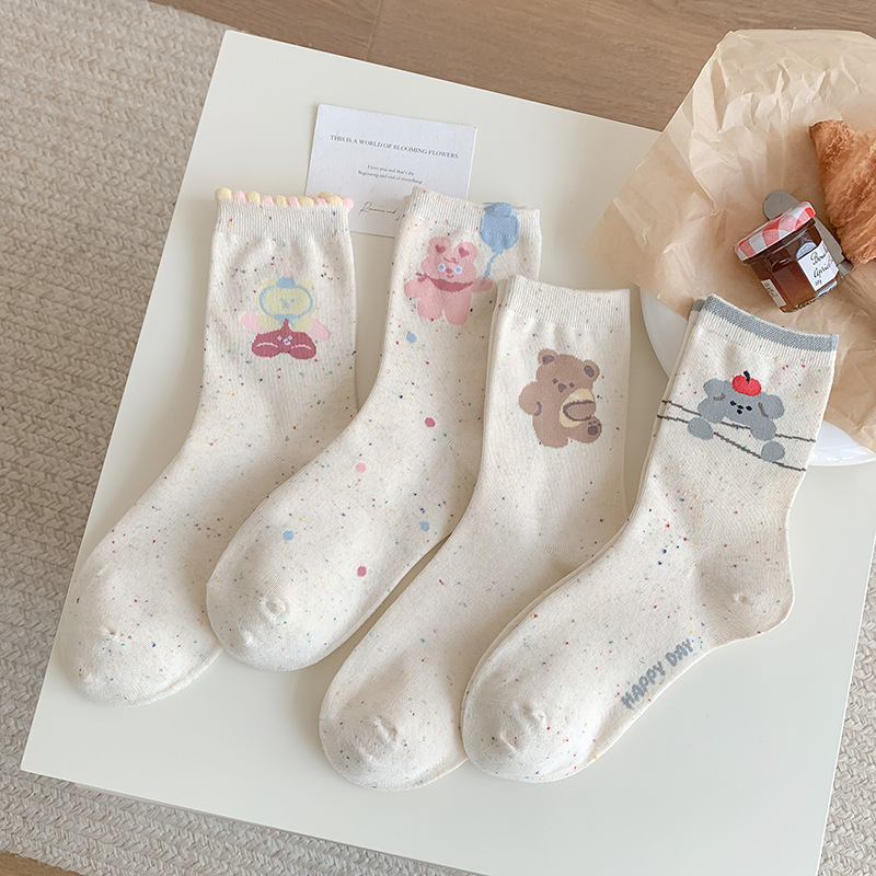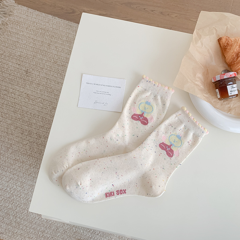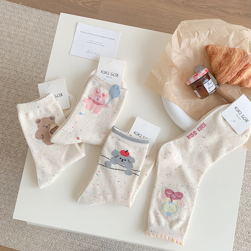 Zhuji 양말 여성의 봄과 가을 중추절 순수한 면 뼈없는 귀여운 만화 포인트 원사 Ins 일본면 양말스토어 가기
