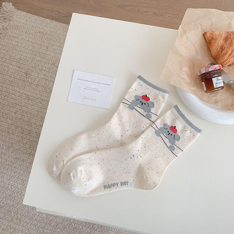 Zhuji 양말 여성의 봄과 가을 중추절 순수한 면 뼈없는 귀여운 만화 포인트 원사 Ins 일본면 양말