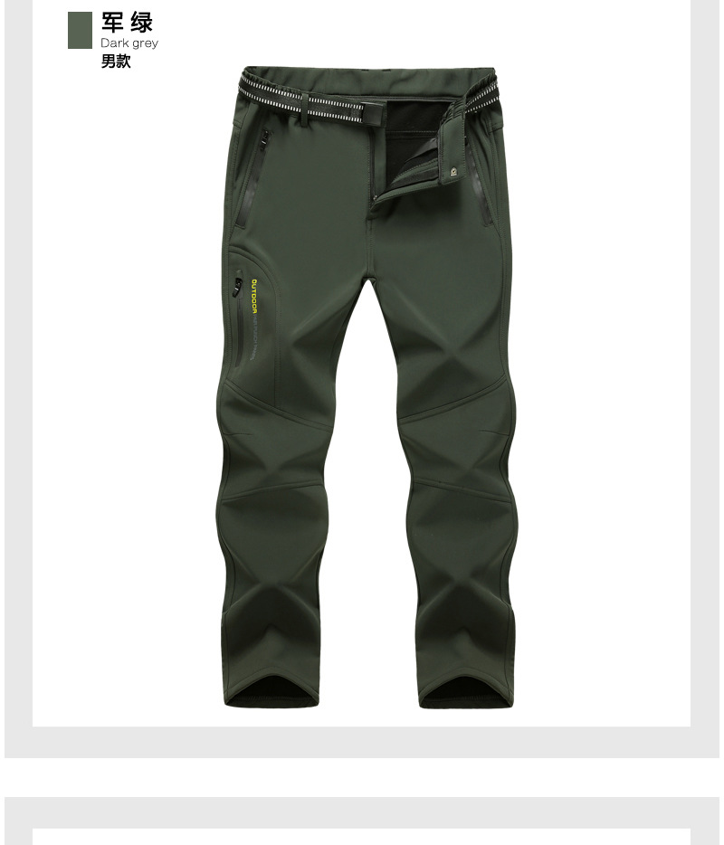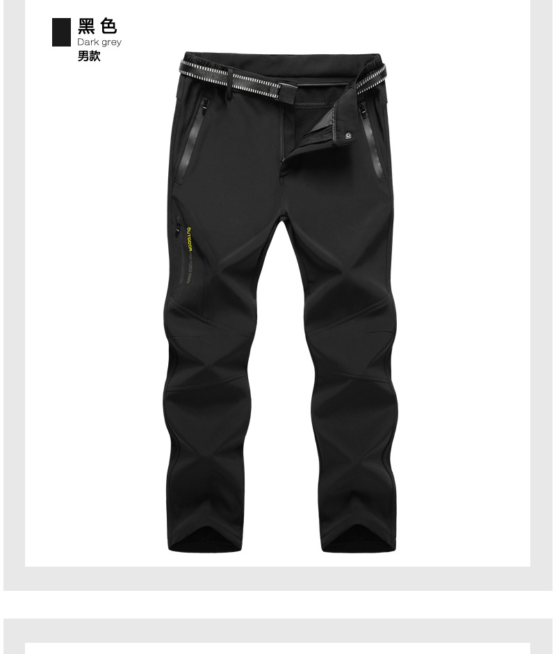 국경 간 라이브 방송 가을/겨울 충전 바지 기모 두꺼운 야외 방풍 방수 따뜻한 소프트 쉘 바지 남녀 등산 바지