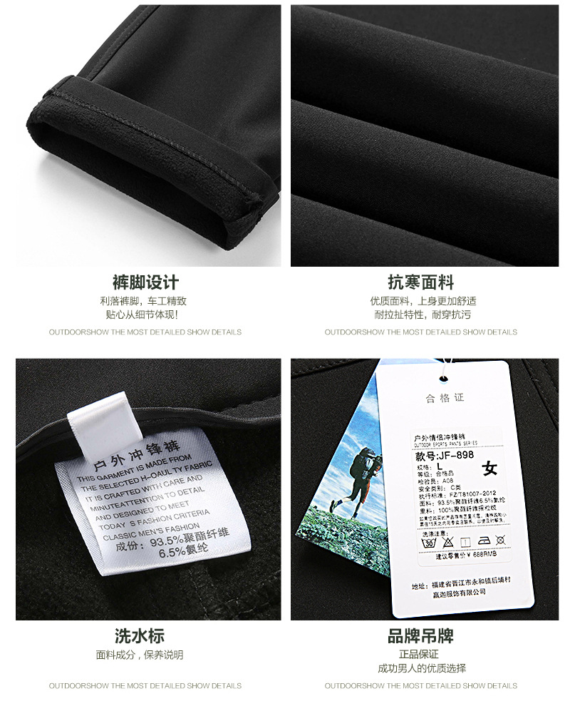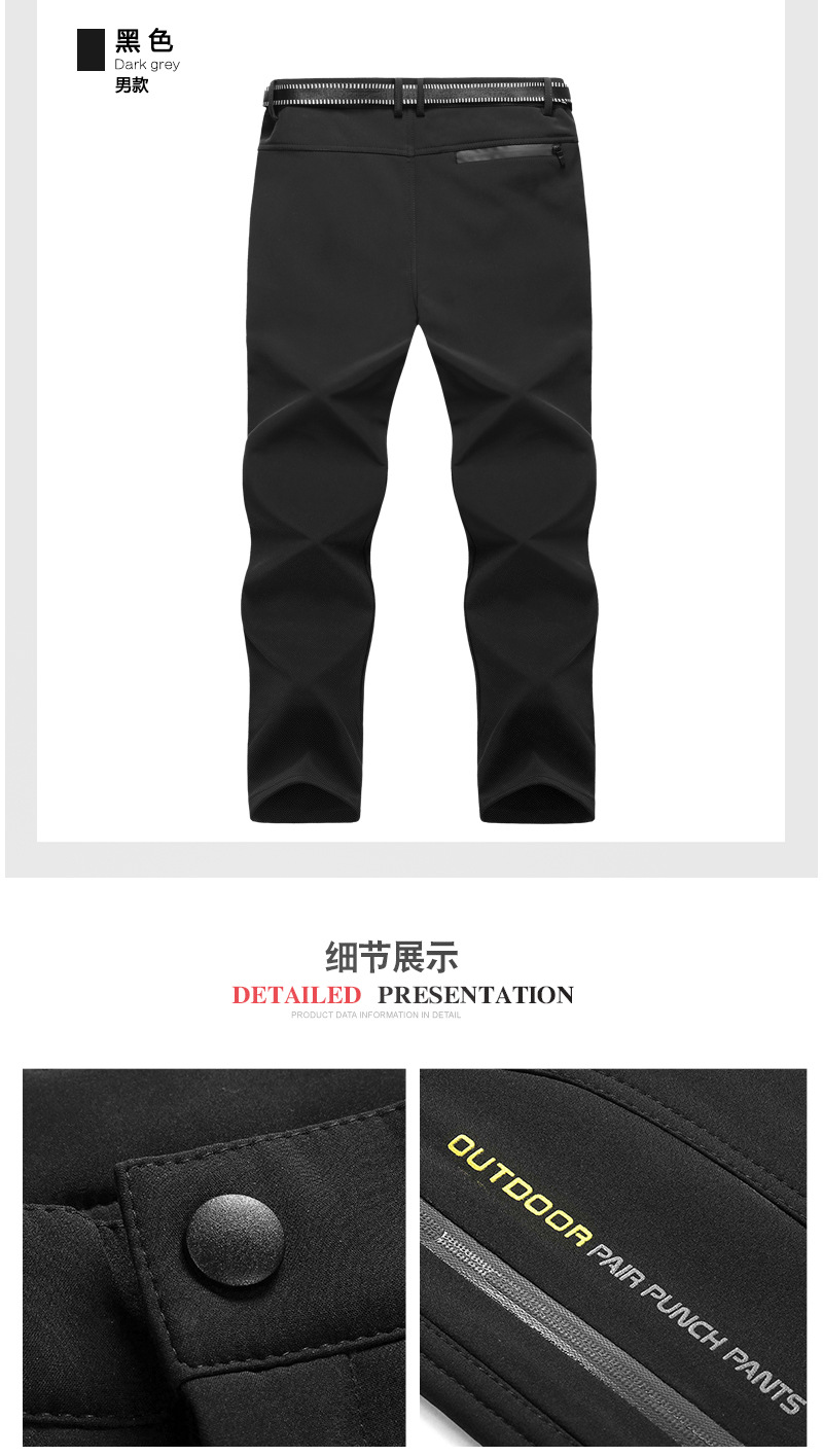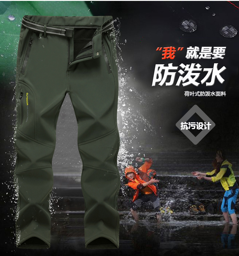 국경 간 라이브 방송 가을/겨울 충전 바지 기모 두꺼운 야외 방풍 방수 따뜻한 소프트 쉘 바지 남녀 등산 바지스토어 가기