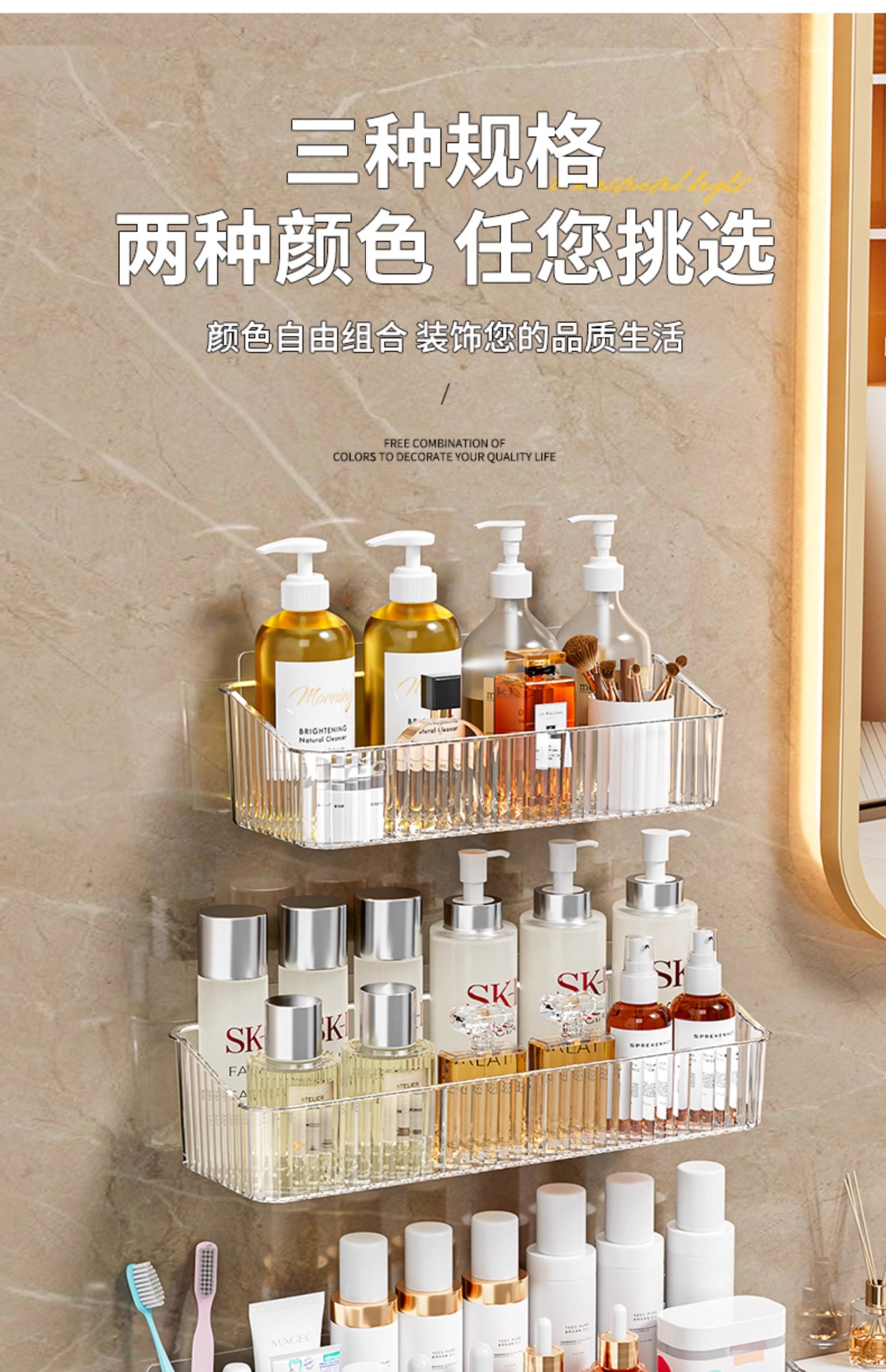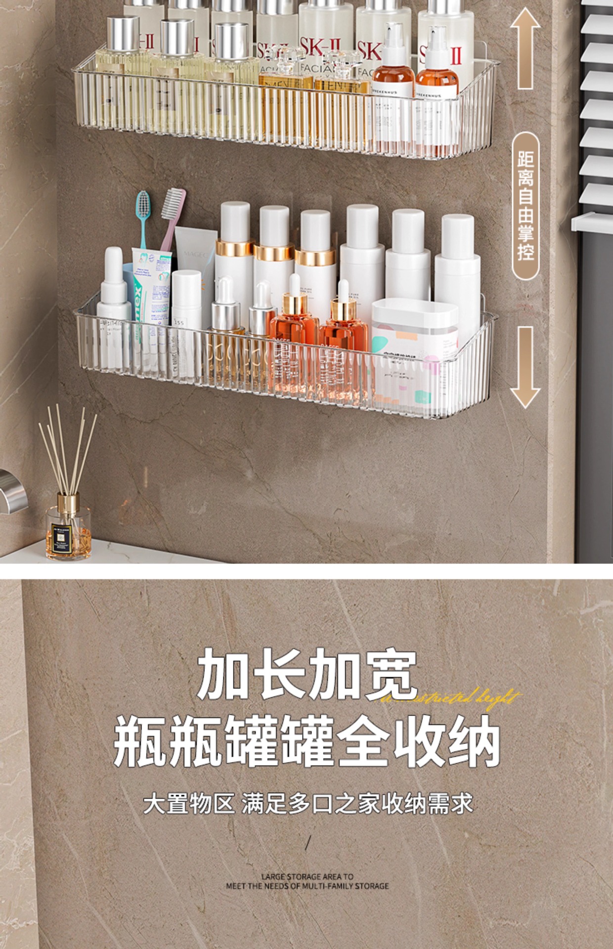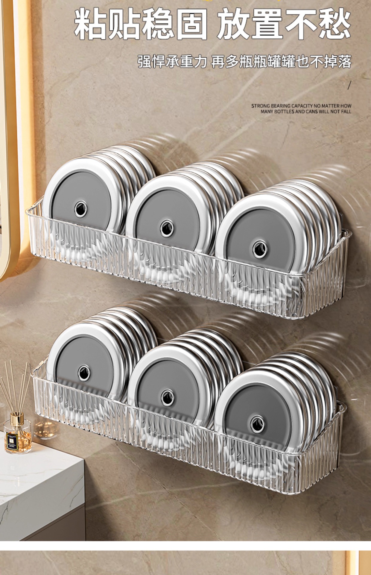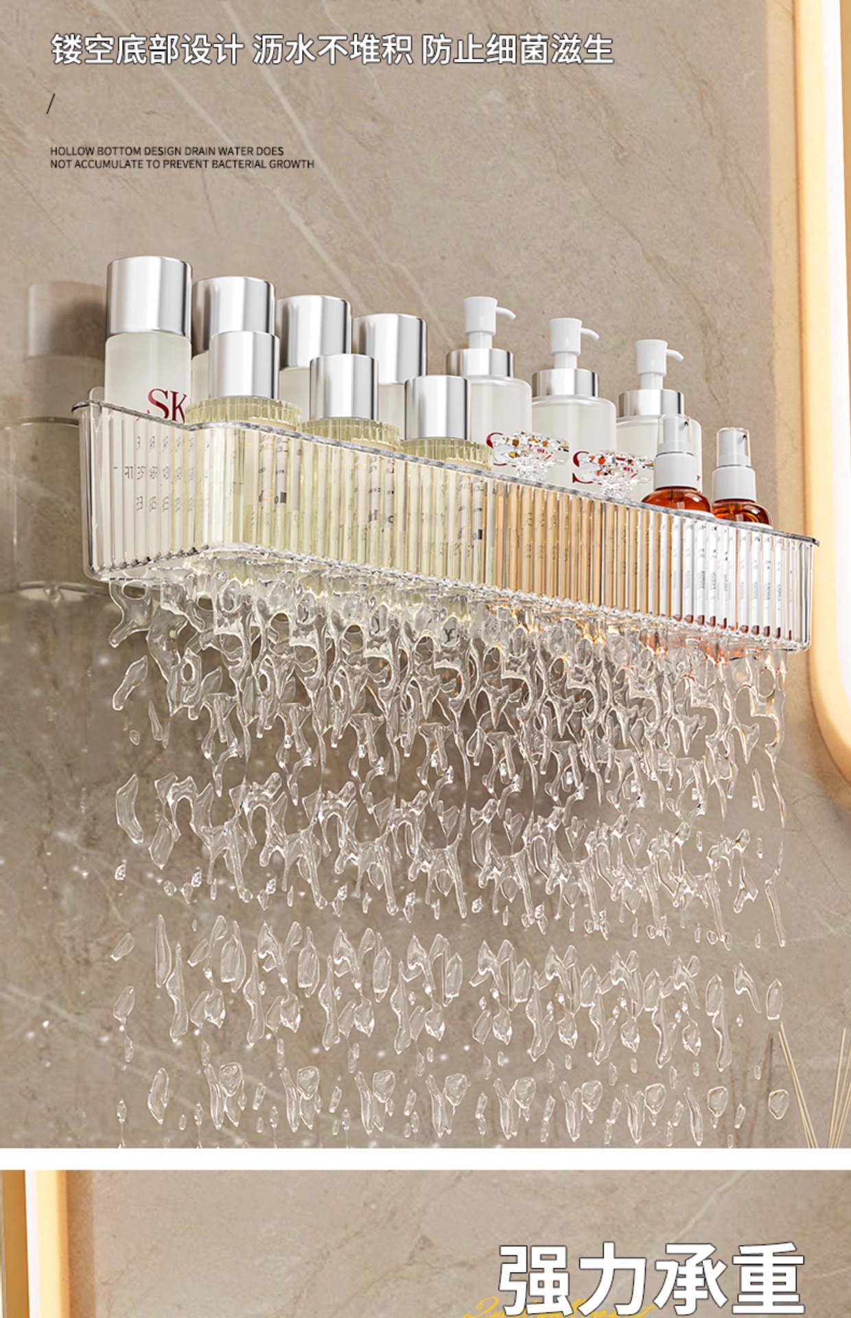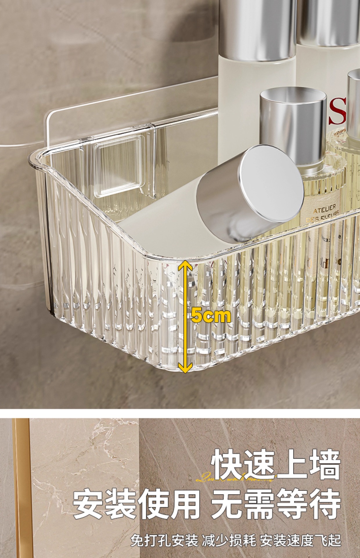 펀치없는 화장실 보관 랙 투명 아크릴 벽걸이 보관 상자 욕실 비누 화장품 보관 랙