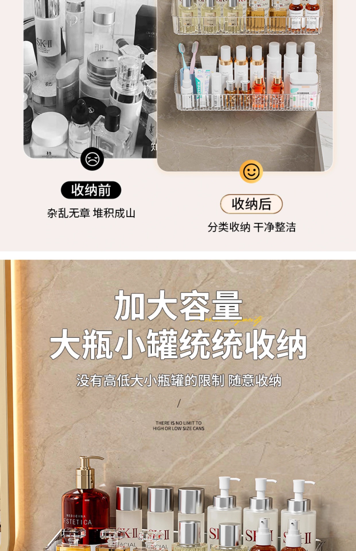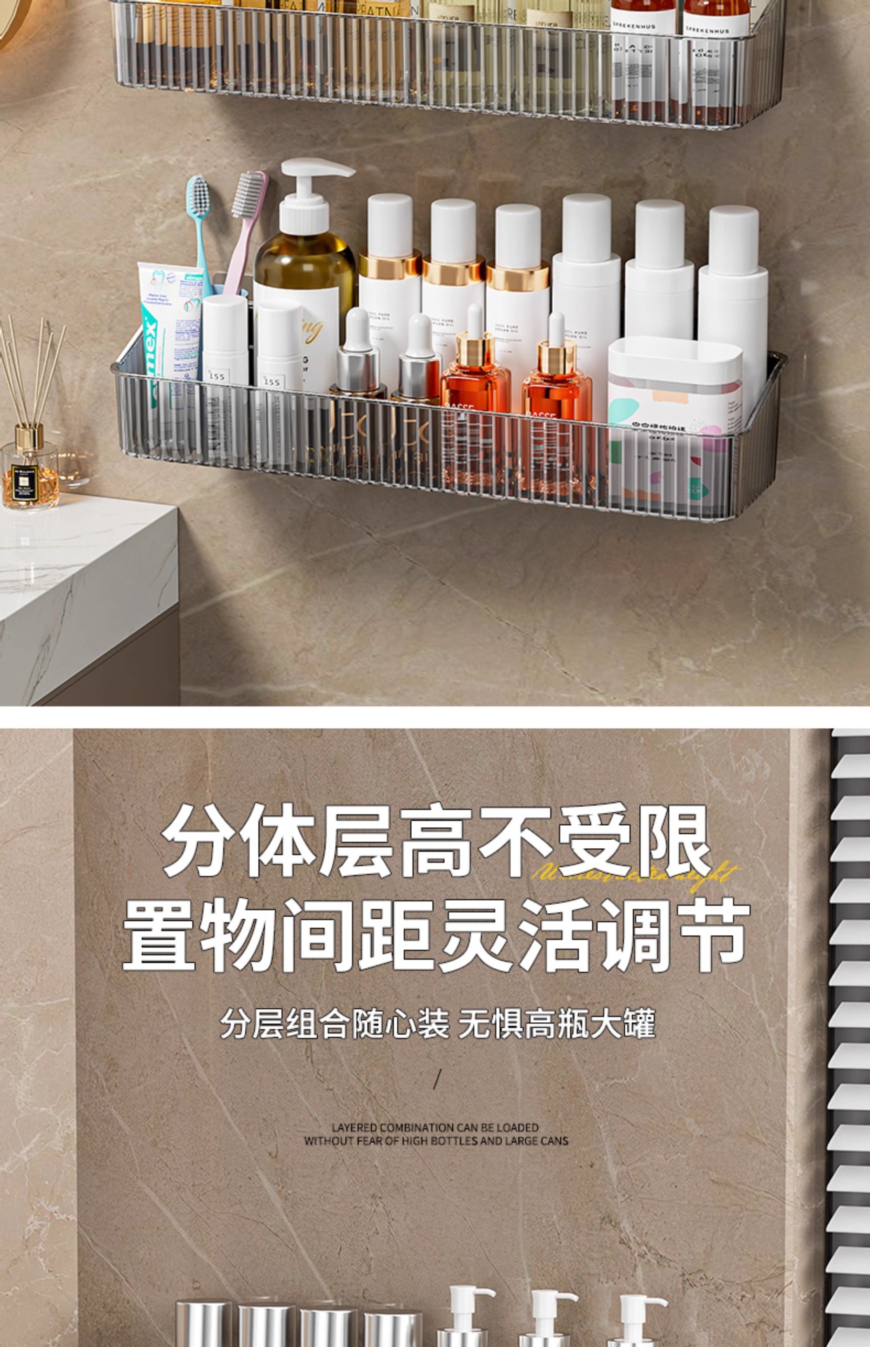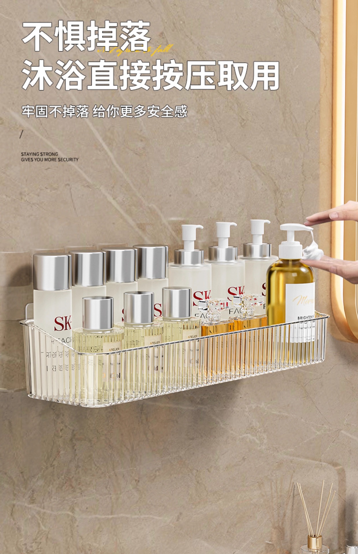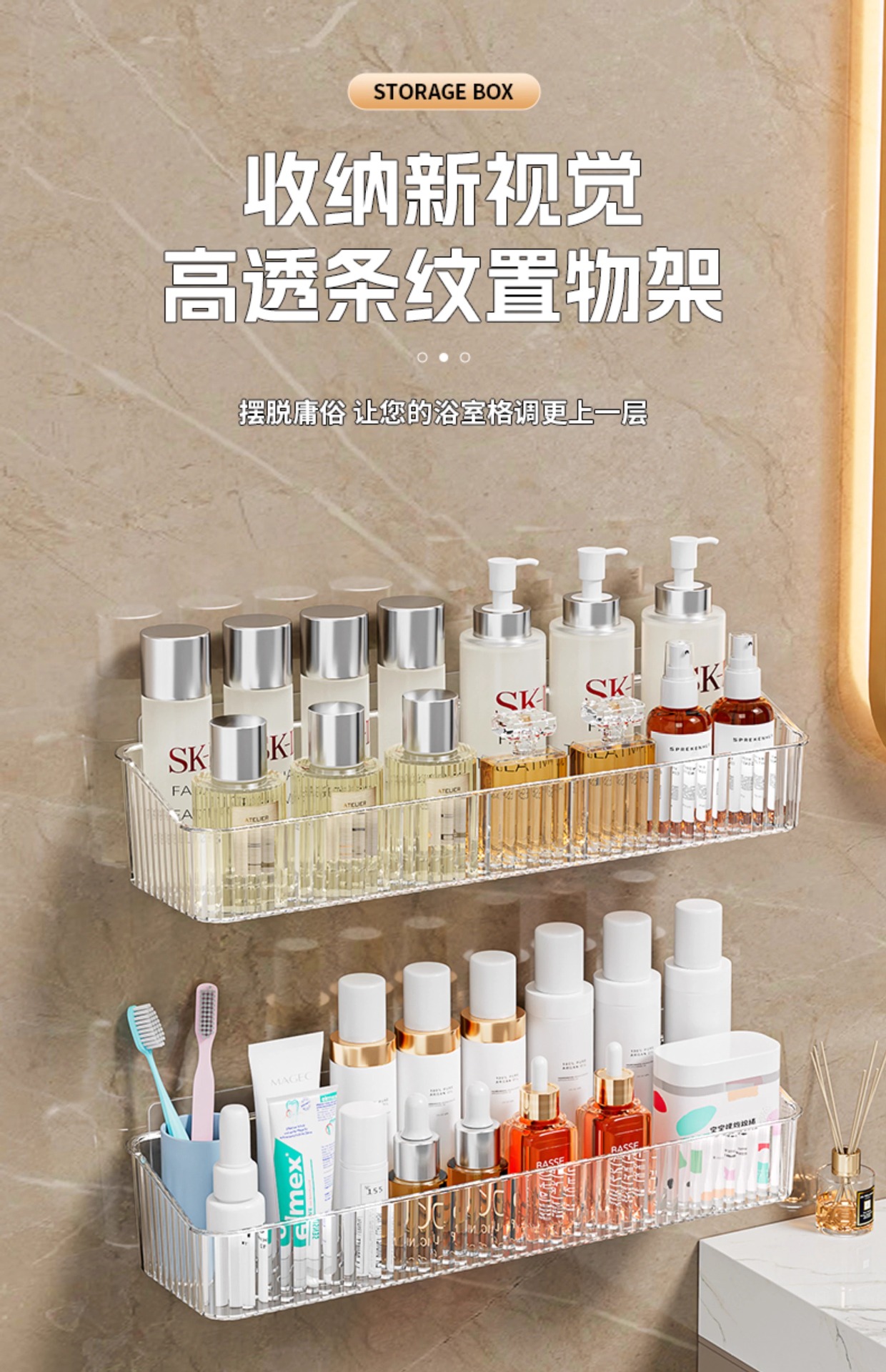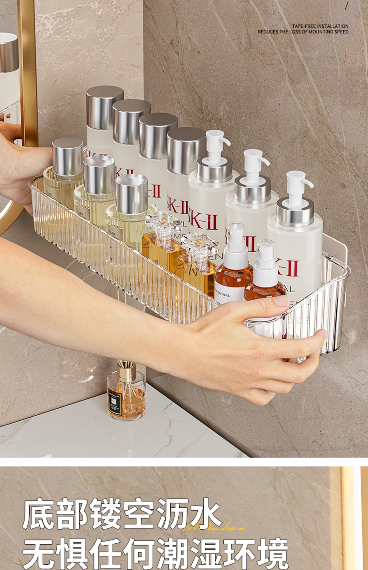 펀치없는 화장실 보관 랙 투명 아크릴 벽걸이 보관 상자 욕실 비누 화장품 보관 랙스토어 가기