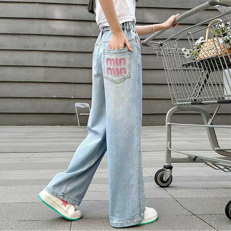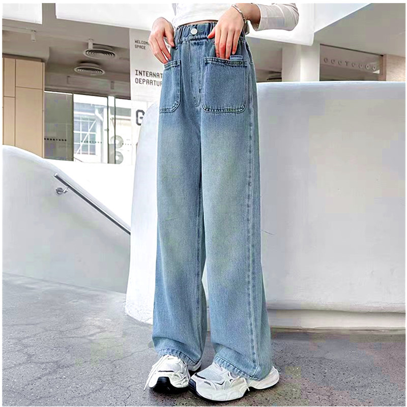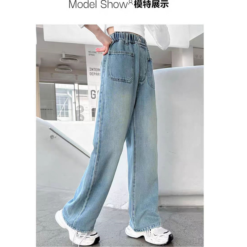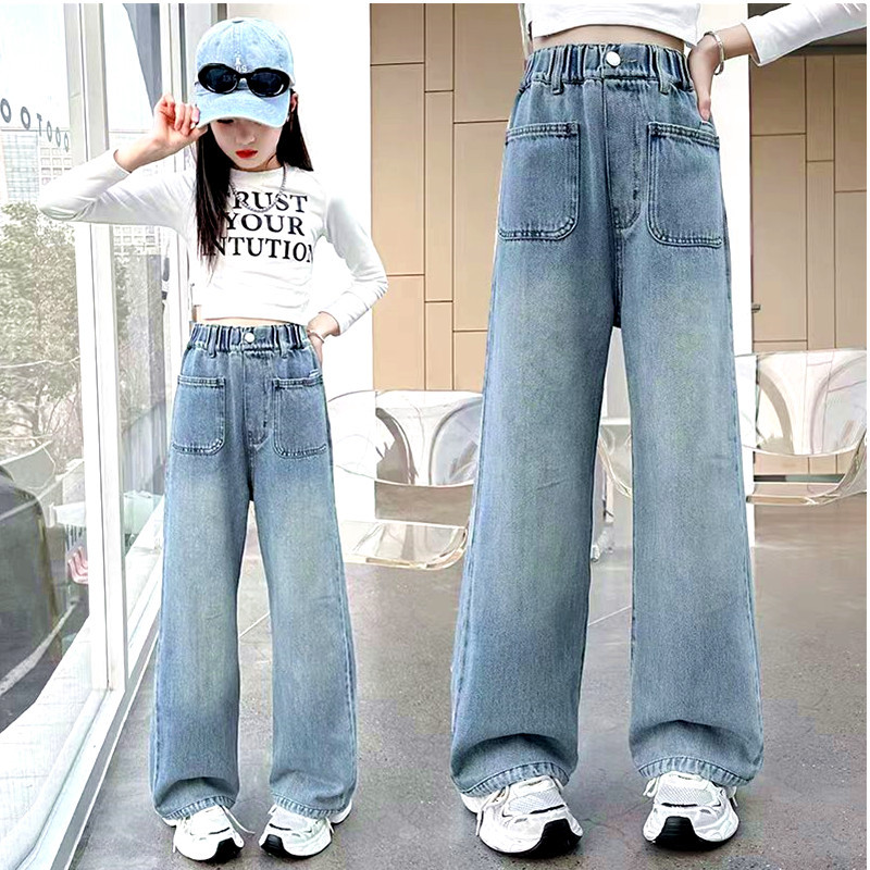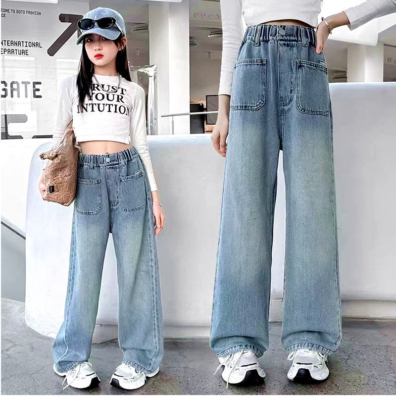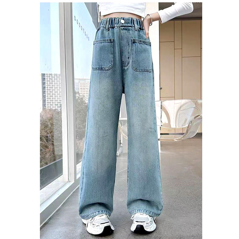여자 청바지 도매 2025 새로운 cuhk 어린이 서양식 레저 넓은 다리 바지 긴 바지 제조 업체 도매