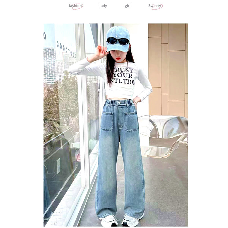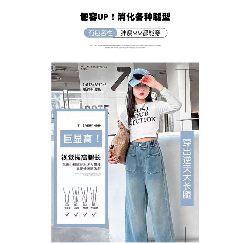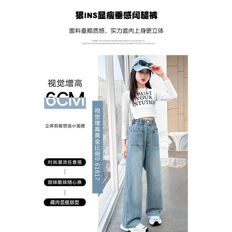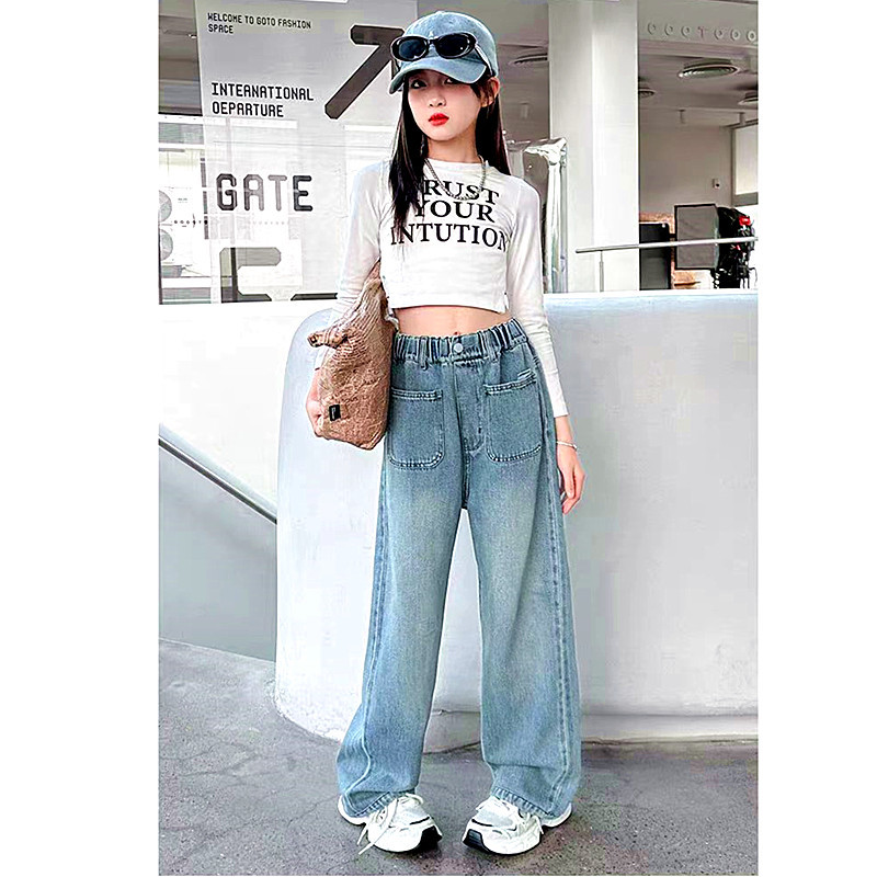 여자 청바지 도매 2025 새로운 cuhk 어린이 서양식 레저 넓은 다리 바지 긴 바지 제조 업체 도매스토어 가기