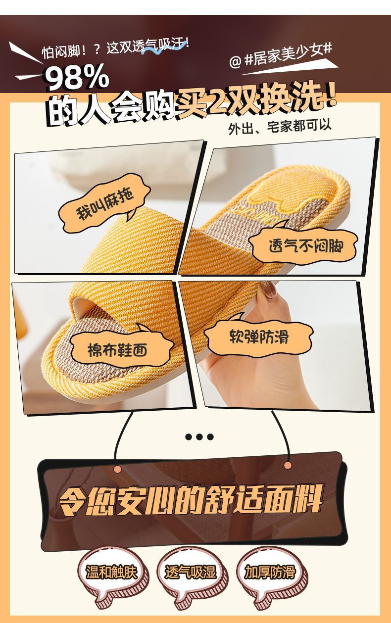 도매 린넨 슬리퍼 여성 봄과 가을 실내 가정용 미끄럼 방지 땀 흡수 애호가 사계절면 및 린넨 천은 발 슬리퍼를 악취하지 않습니다.스토어 가기