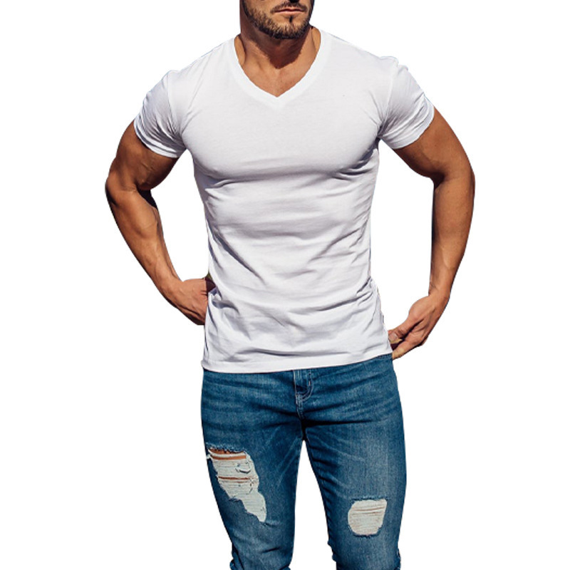 2025 대외 무역 남성 야외 솔리드 컬러 V 넥 티셔츠 캐주얼 빠른 건조 통기성 땀-위킹 반팔 멀티 컬러 탑 재고 헤어