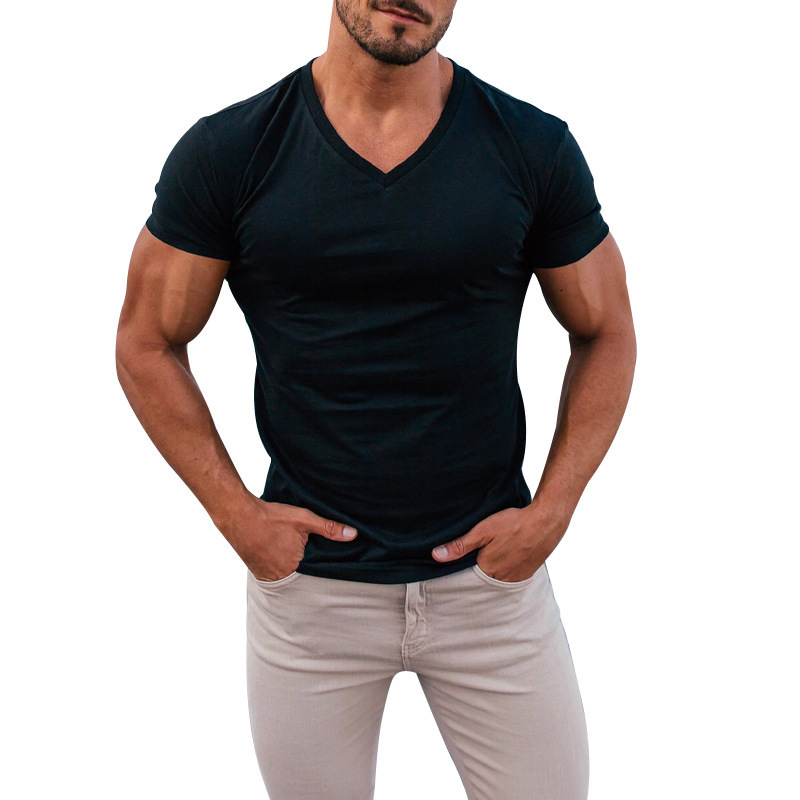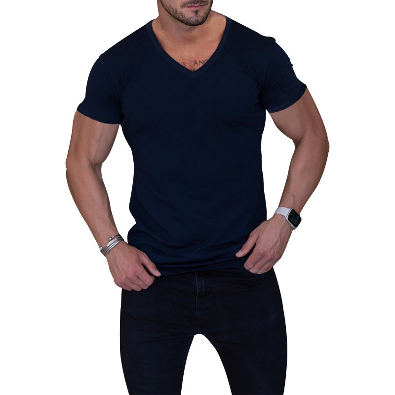2025 대외 무역 남성 야외 솔리드 컬러 V 넥 티셔츠 캐주얼 빠른 건조 통기성 땀-위킹 반팔 멀티 컬러 탑 재고 헤어스토어 가기