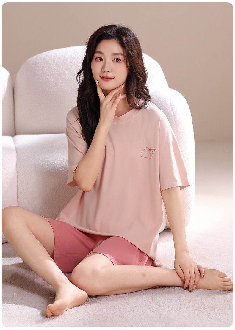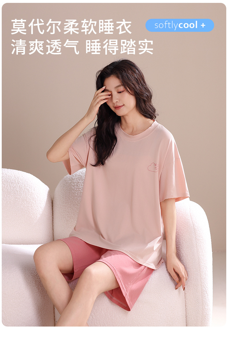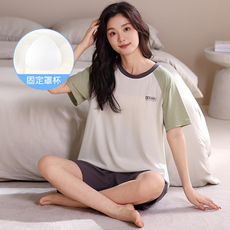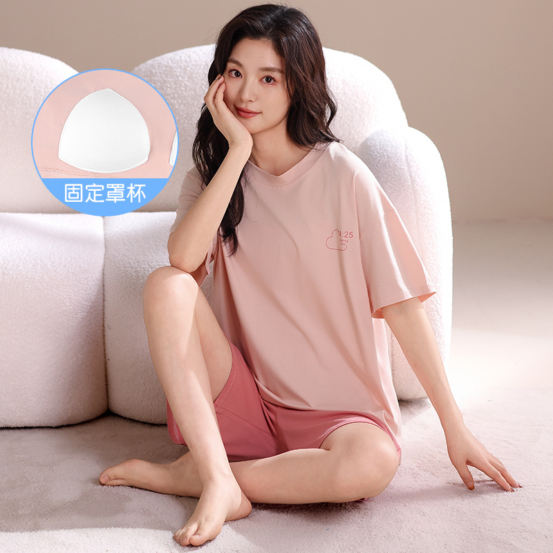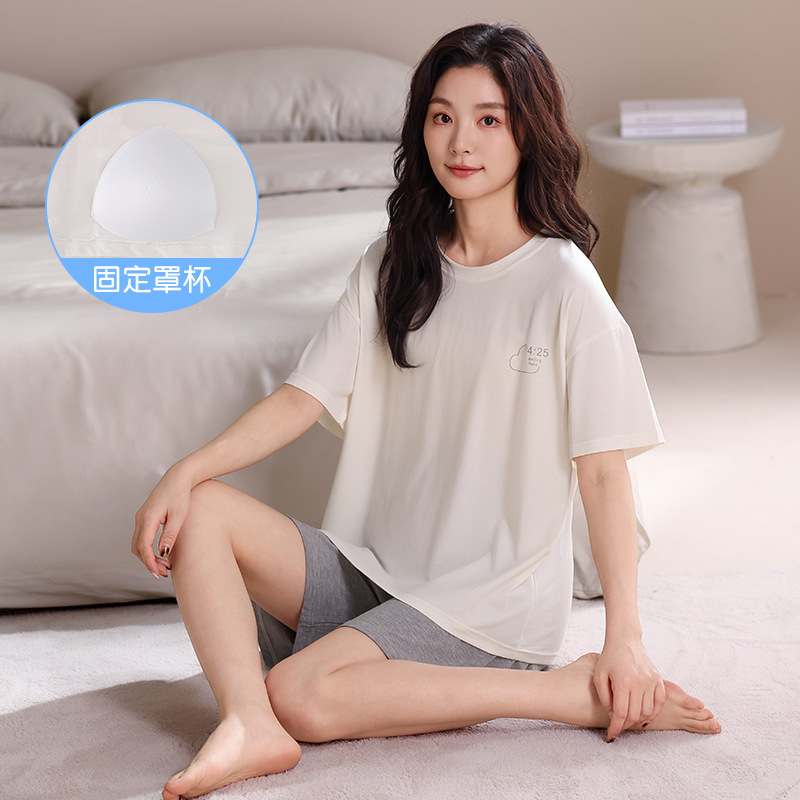모달 파자마 여성의 여름 시원한 느낌 반팔 반바지 가슴 패드 여름 새로운 도착 플러스 사이즈 홈 의류 얇은 세트스토어 가기