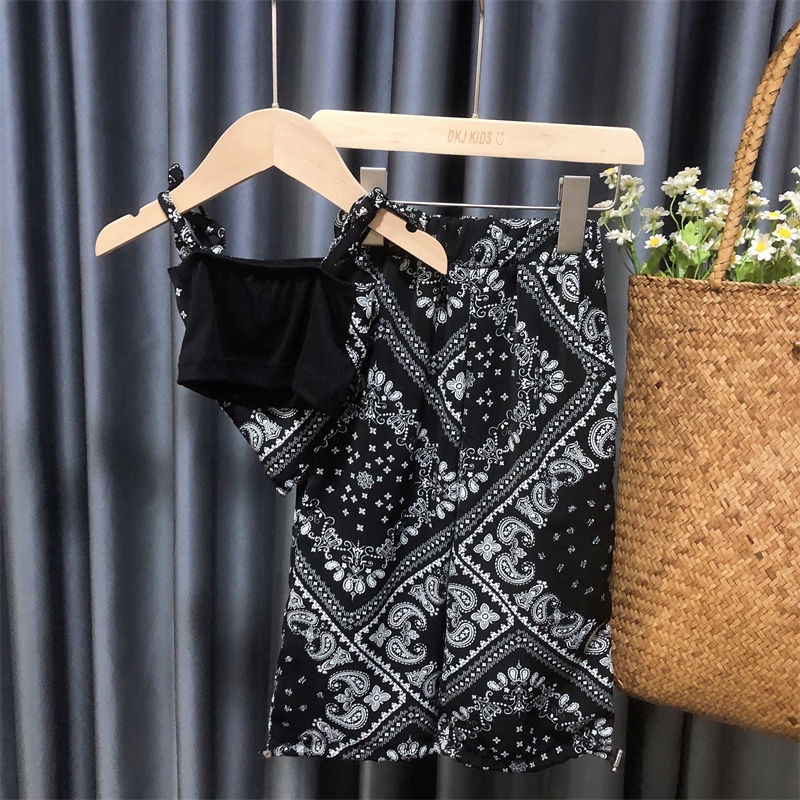 여름 소녀 세트 아기 세련된 어린이 유행 한국 스타일 꽃 조끼 슬링 벨리 바지스토어 가기