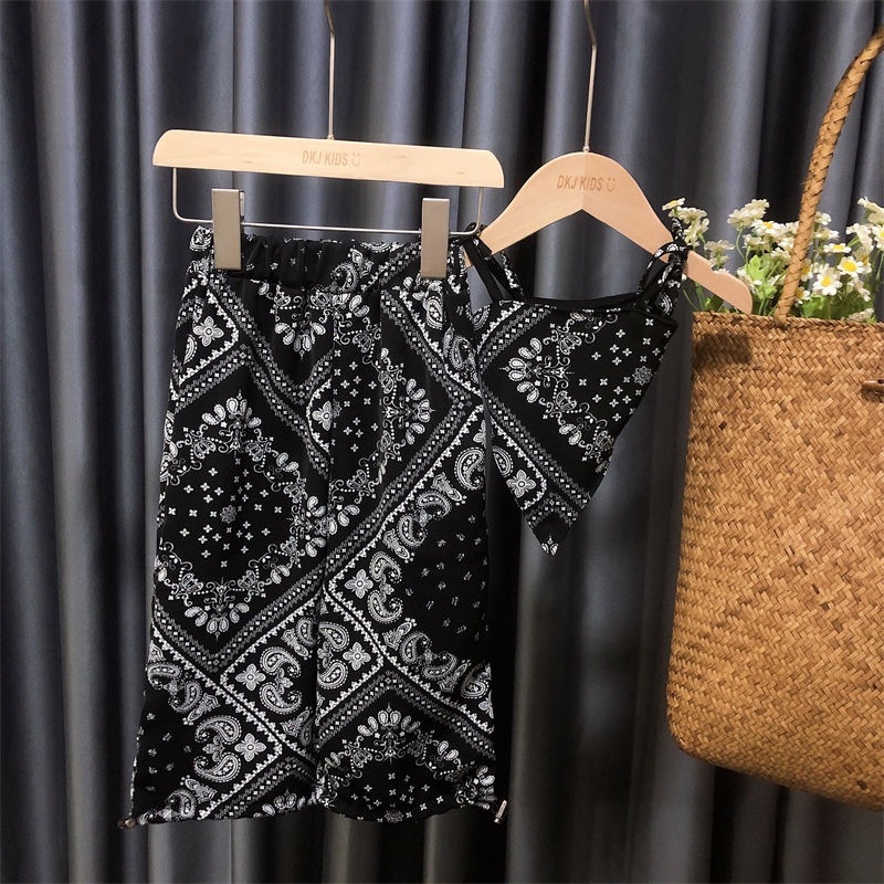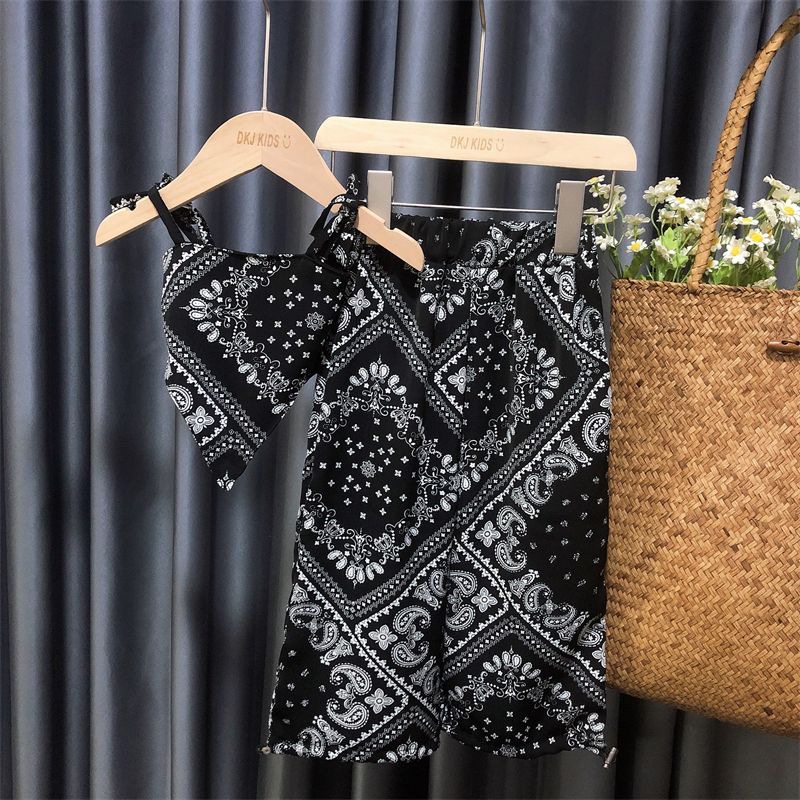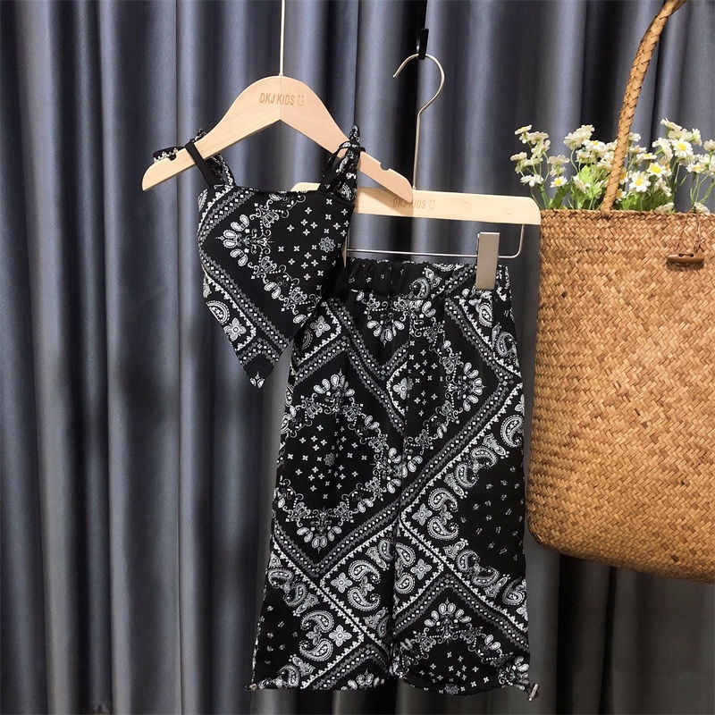 여름 소녀 세트 아기 세련된 어린이 유행 한국 스타일 꽃 조끼 슬링 벨리 바지