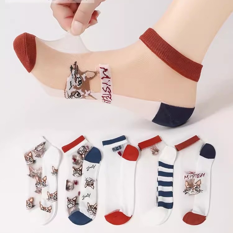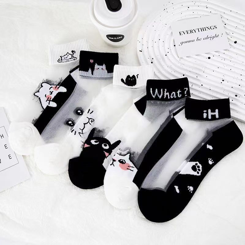 • 흰색 만화 얼음 실크 보이지 않는 양말