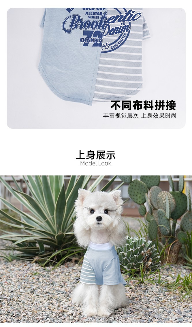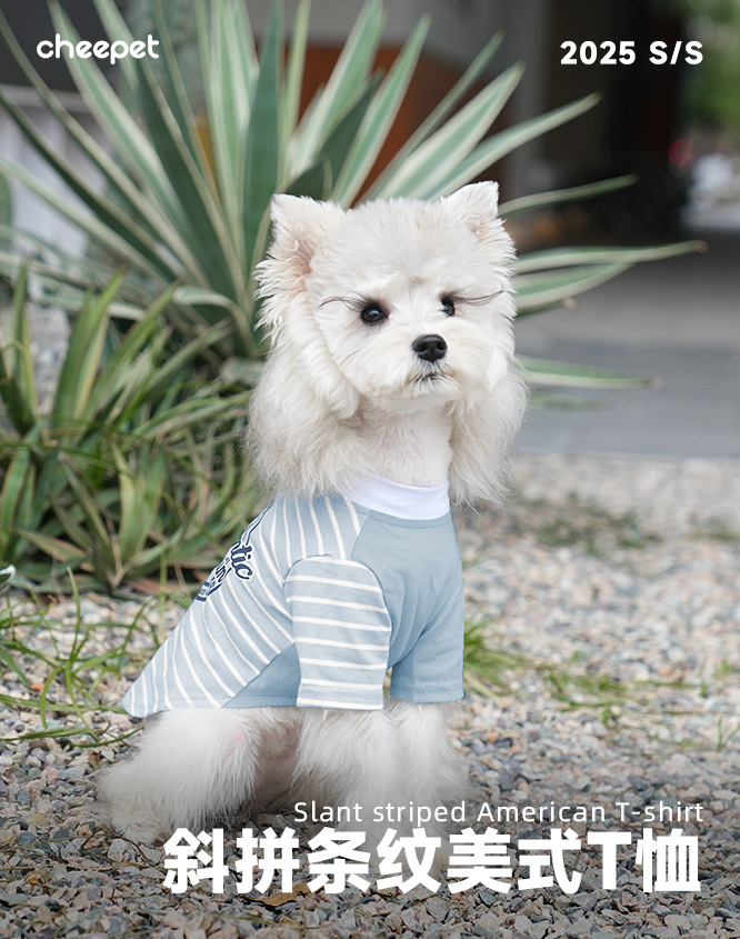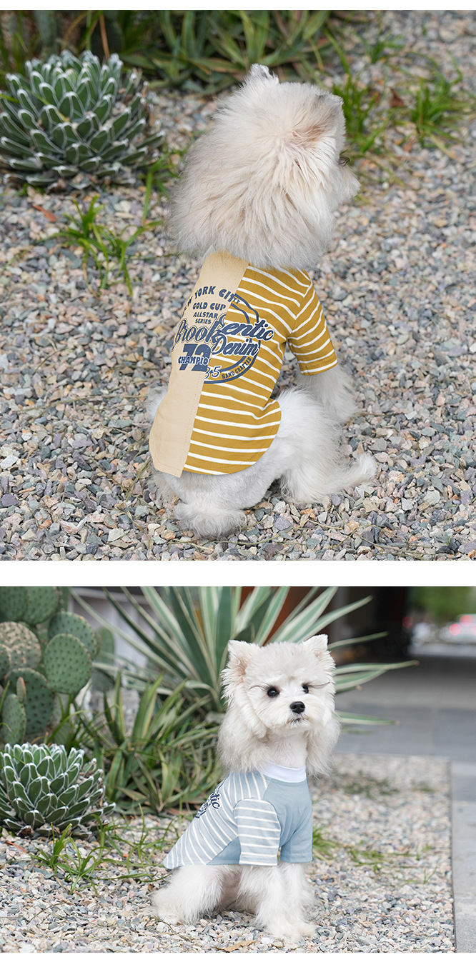 재미있는 개 봄과 여름 멋진 티셔츠 테디 슈너리 바느질 비스듬한 줄무늬 다리 애완 동물 곰 조끼 여름스토어 가기