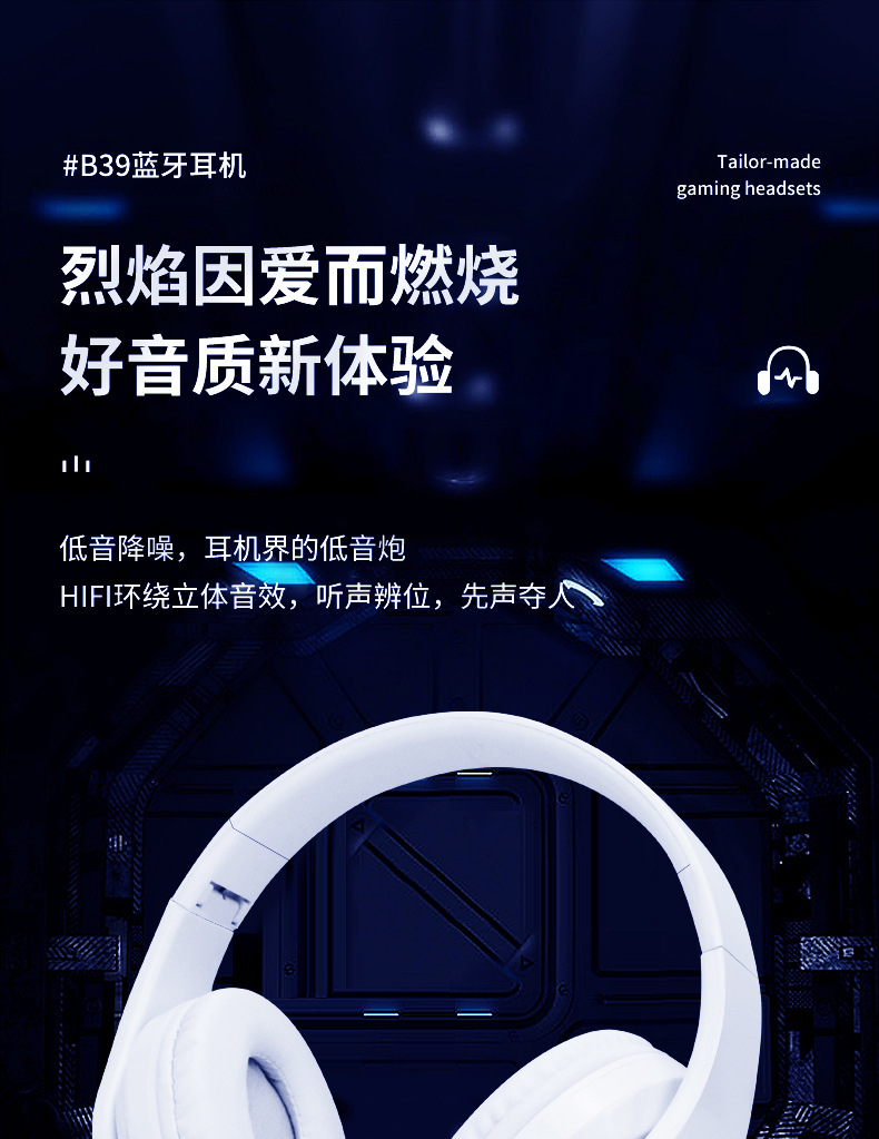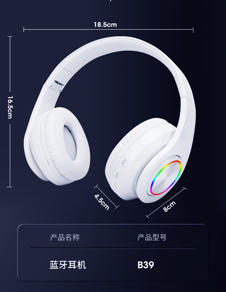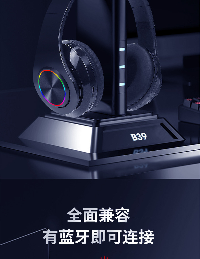 국경 간 뜨거운 판매 B39 블루투스 빛나는 헤드셋 블루투스 무선 서브 우퍼 헤드셋 음악 카드 유니버설스토어 가기