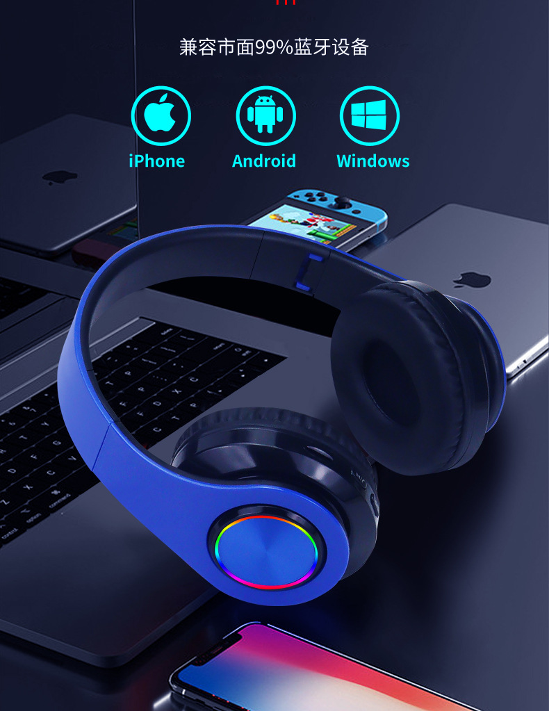 국경 간 뜨거운 판매 B39 블루투스 빛나는 헤드셋 블루투스 무선 서브 우퍼 헤드셋 음악 카드 유니버설