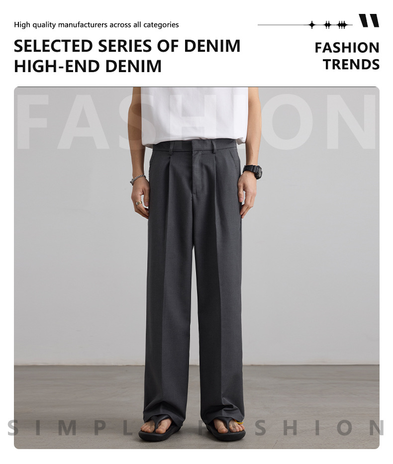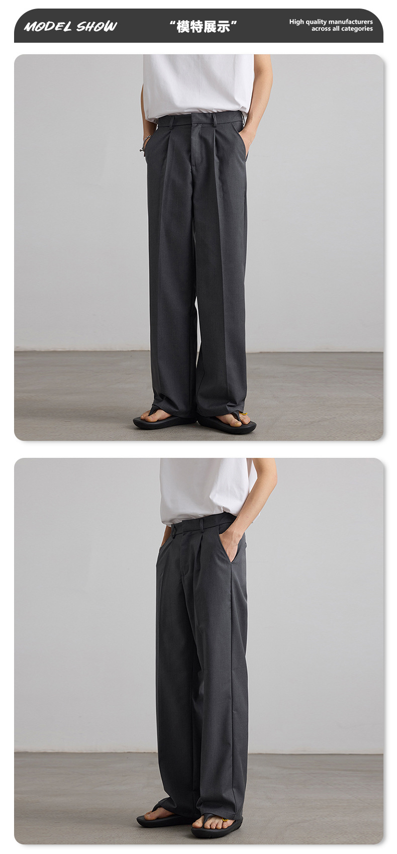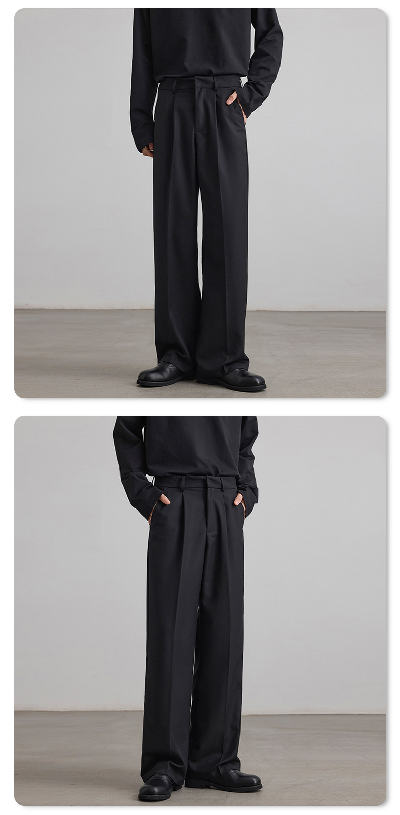 LKTM 남성용 한국 스타일 트렌디 플리츠 A라인 바지(남성 및 여성용), 하이엔드, 다용도, 루즈, 드레이프, 캐주얼 롱팬츠스토어 가기