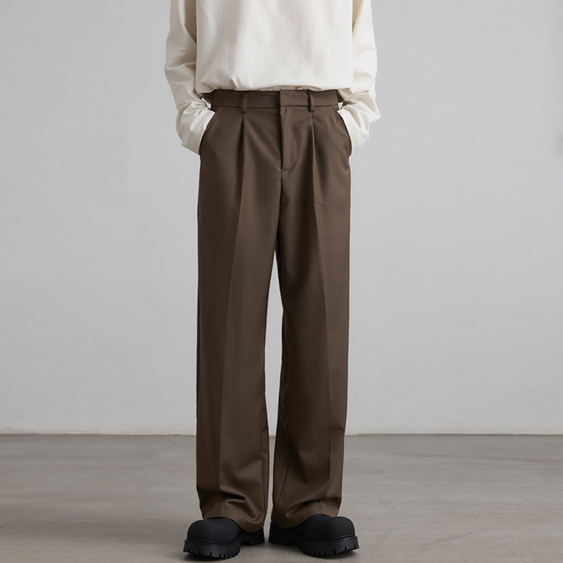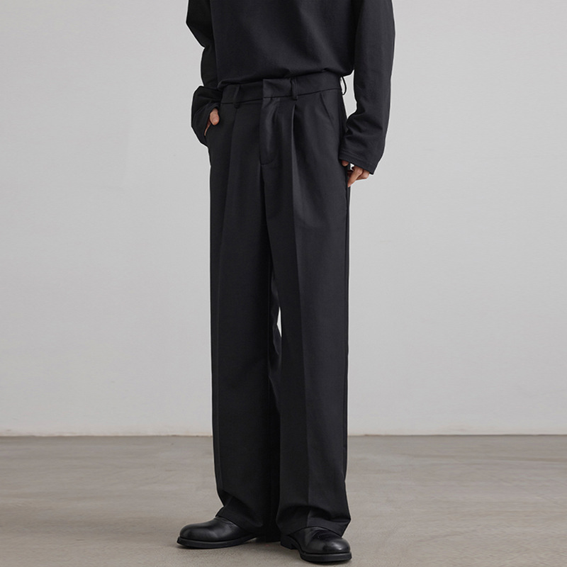 LKTM 남성용 한국 스타일 트렌디 플리츠 A라인 바지(남성 및 여성용), 하이엔드, 다용도, 루즈, 드레이프, 캐주얼 롱팬츠