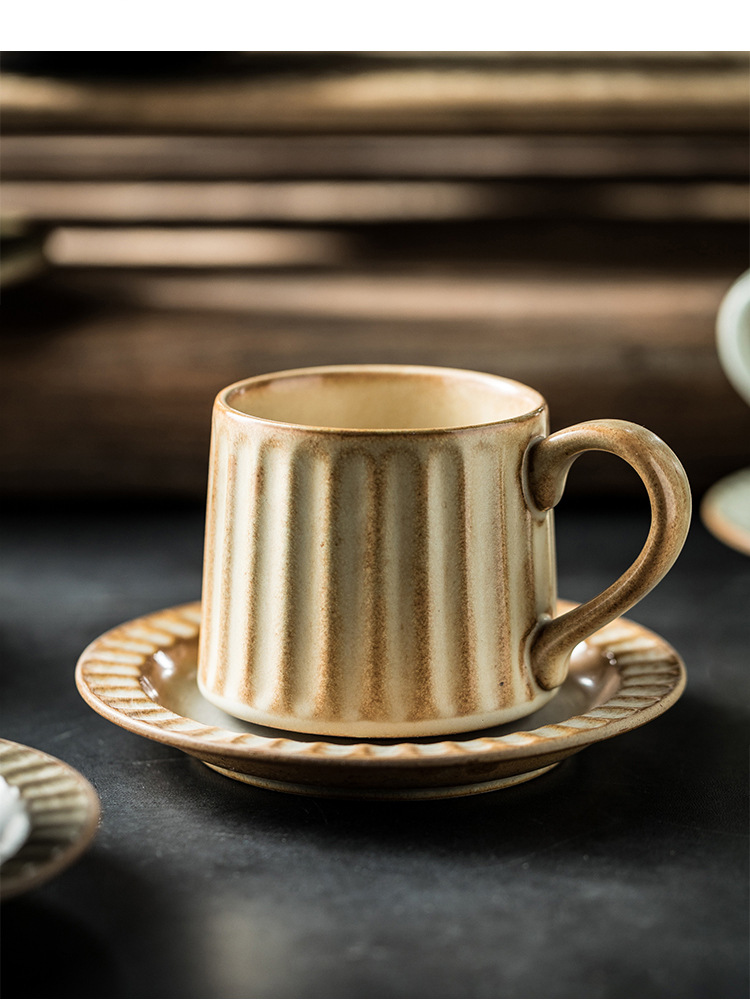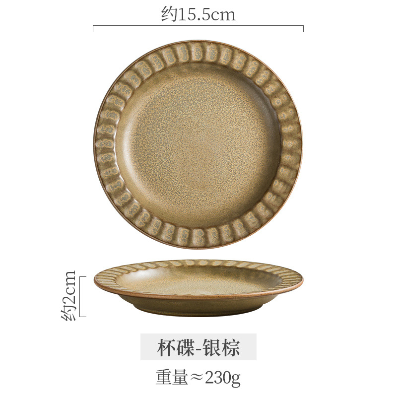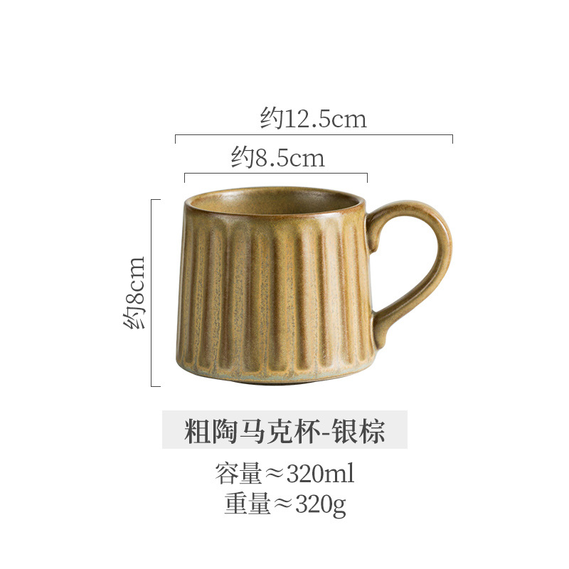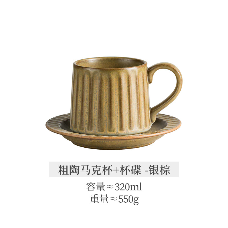 • 석기 머그 + 컵과 접시 - 실버 브라운