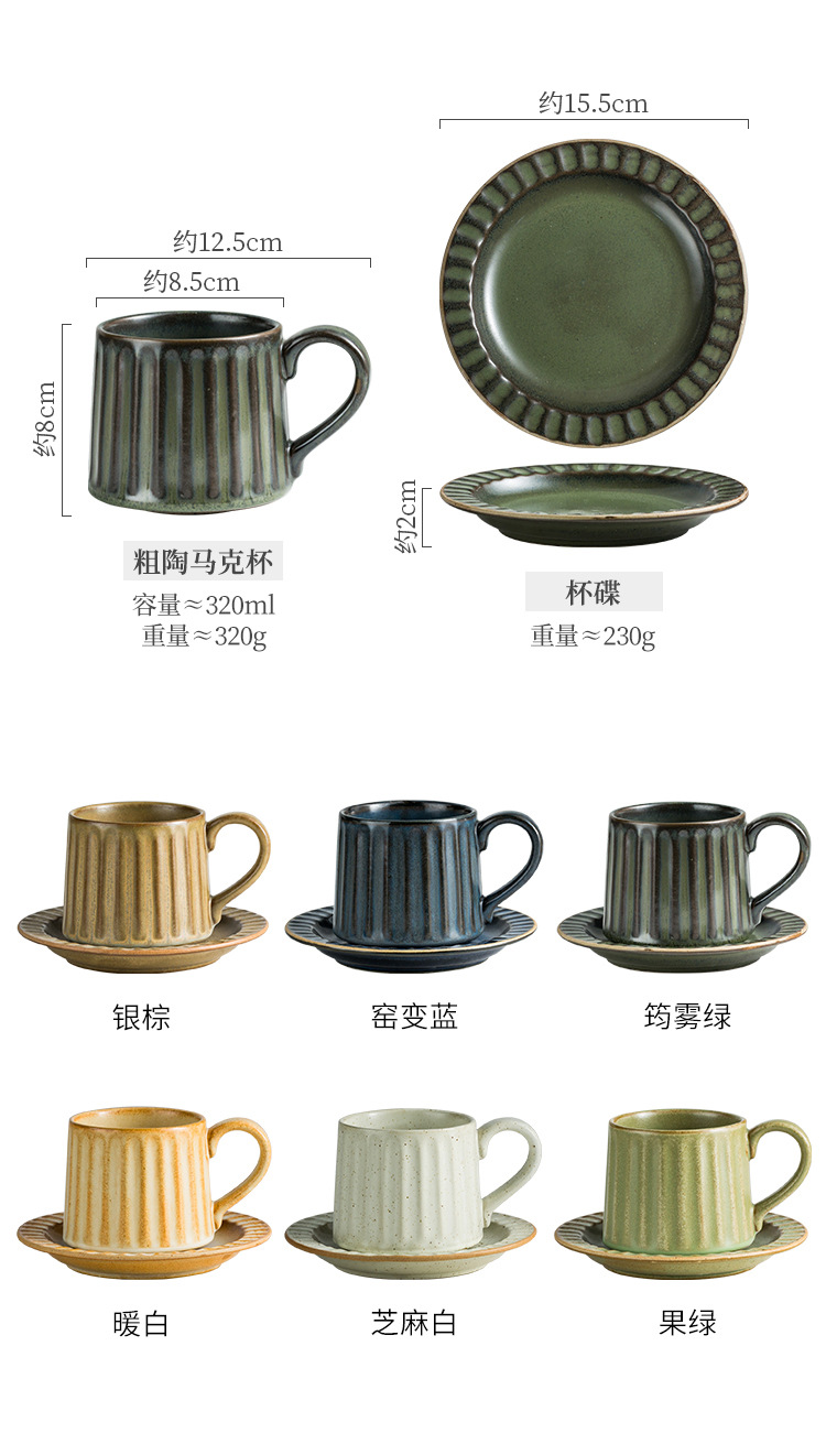 • 석기 머그 + 컵과 접시 - 과일 그린