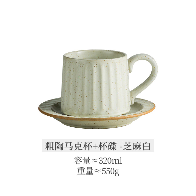 • 석기 머그 + 컵과 접시 - 참깨 흰색