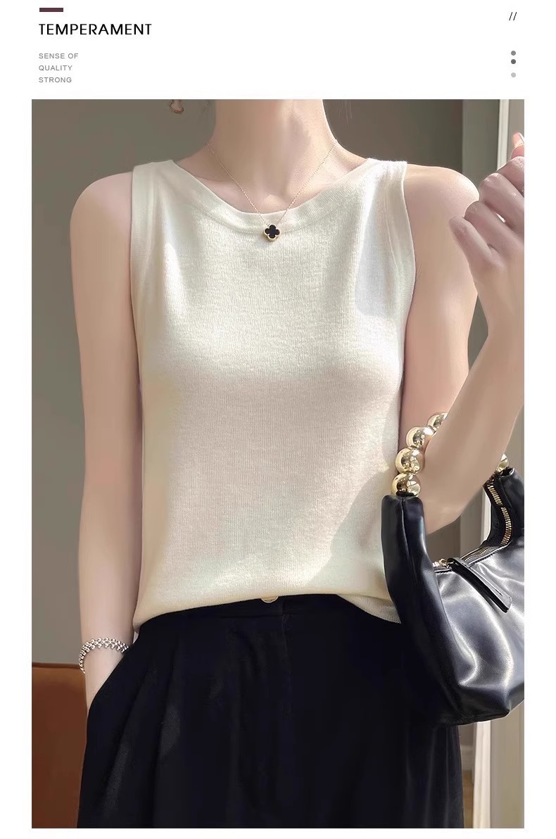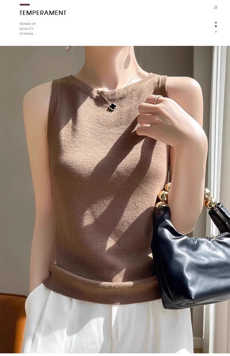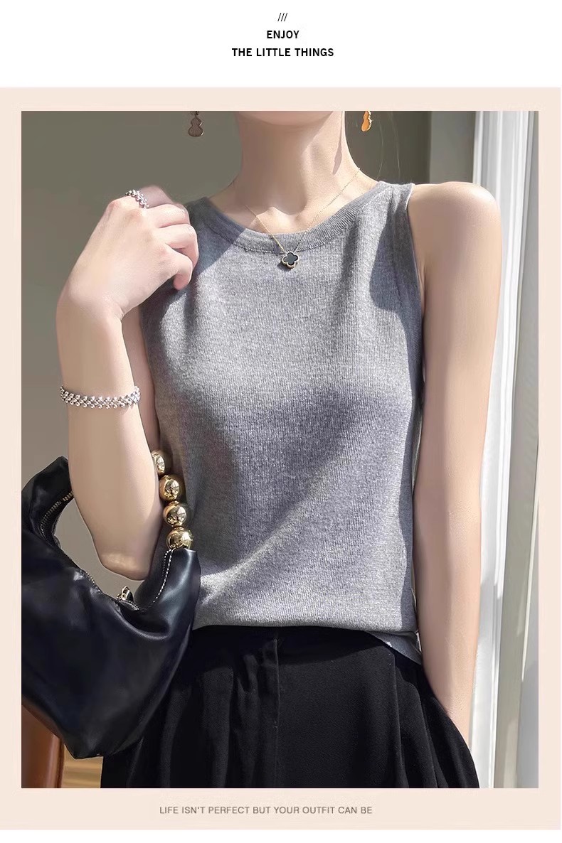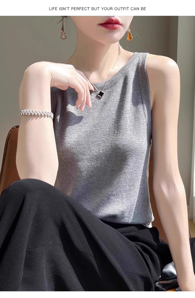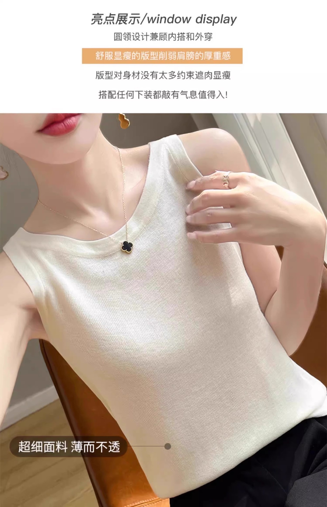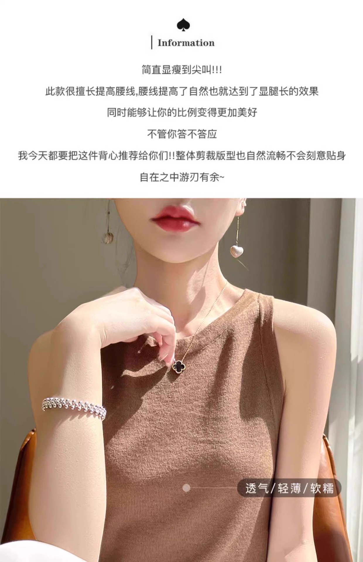 크루 넥 니트 카미 솔 여성용 내복 봄과 가을 스몰 사이즈 유방 커버 슬림 핏 민소매 기본 셔츠 세트 내복