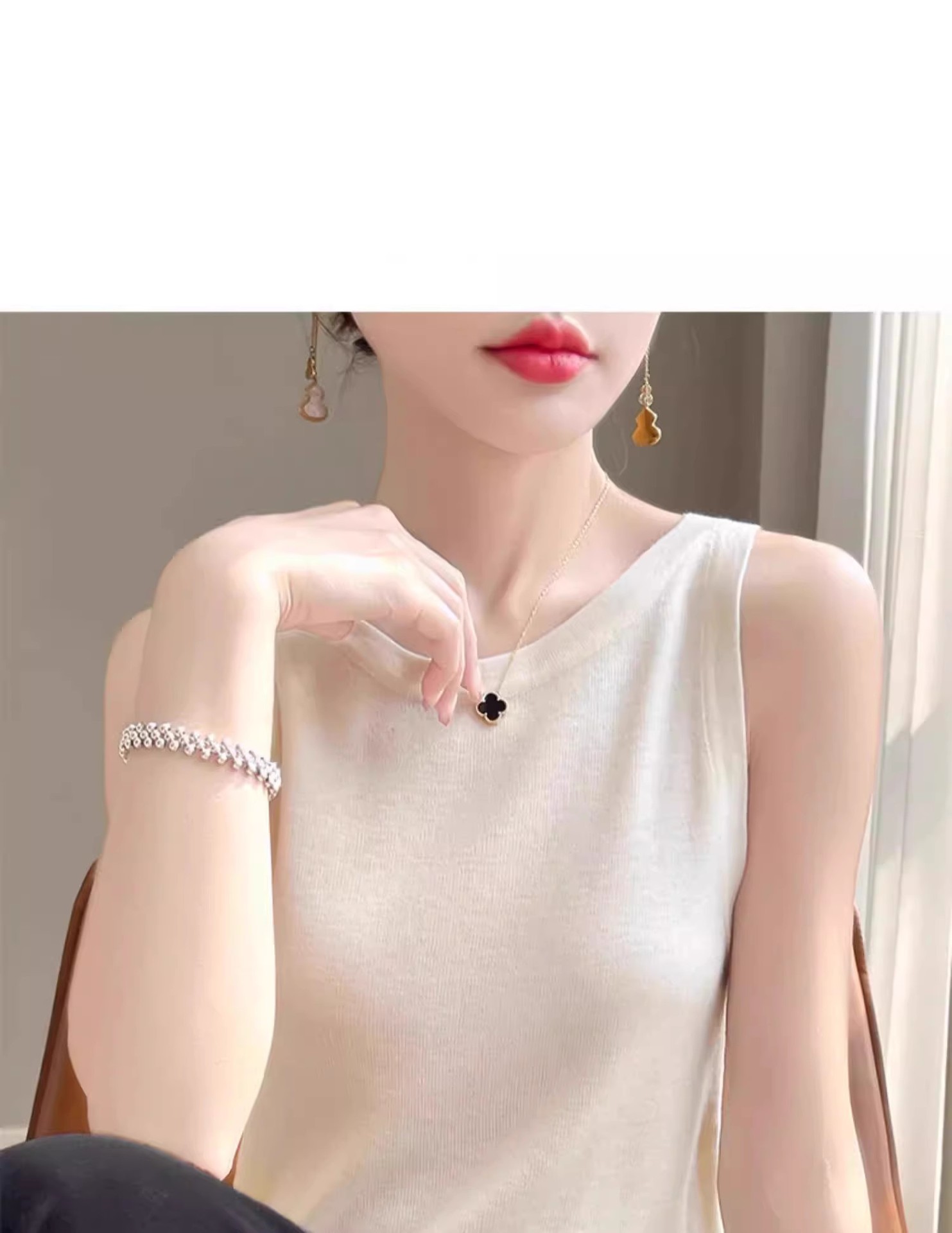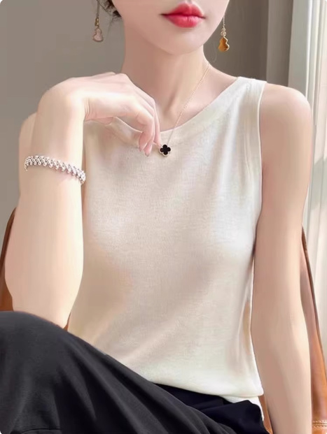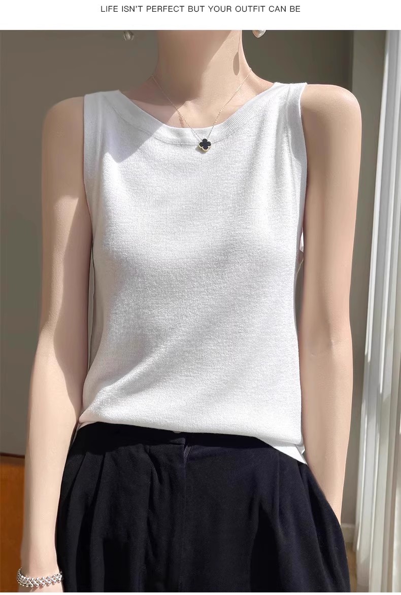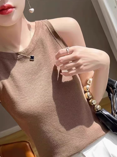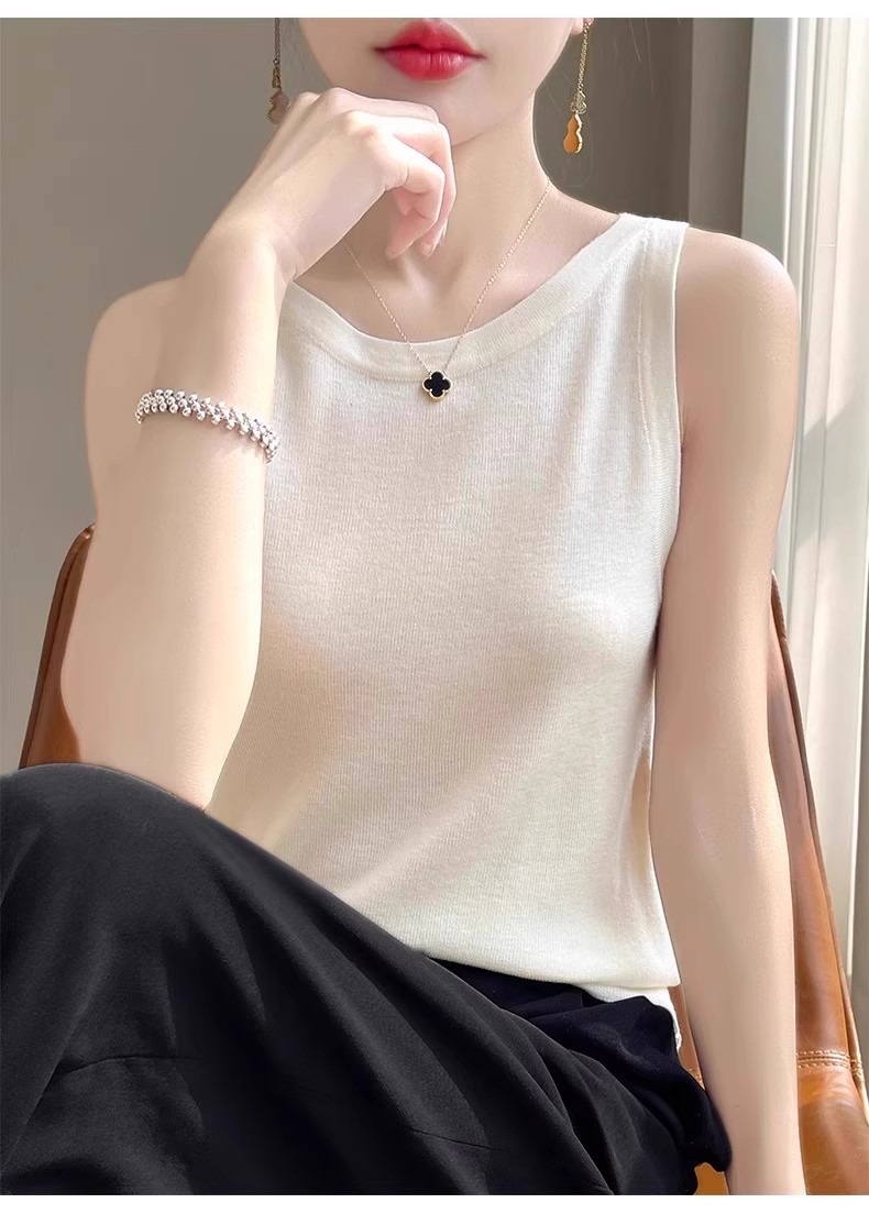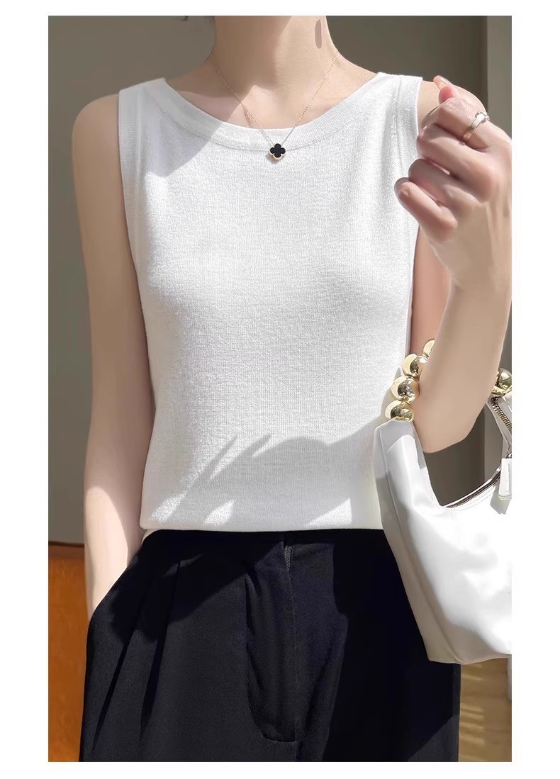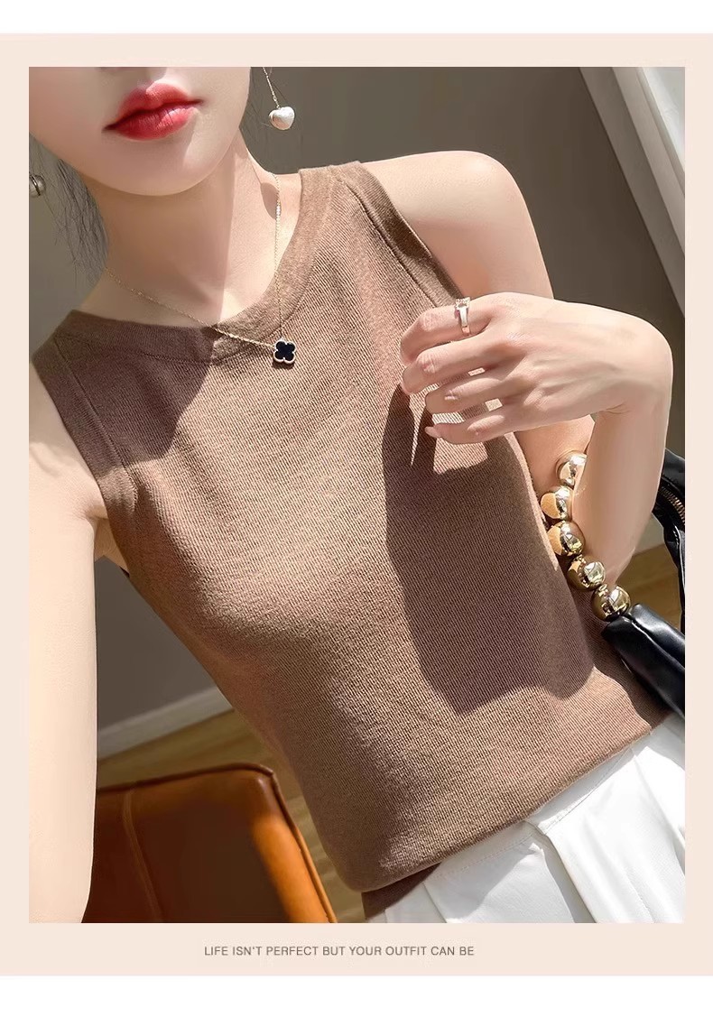 크루 넥 니트 카미 솔 여성용 내복 봄과 가을 스몰 사이즈 유방 커버 슬림 핏 민소매 기본 셔츠 세트 내복