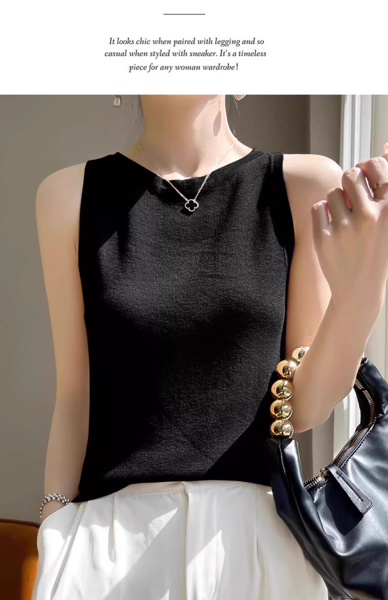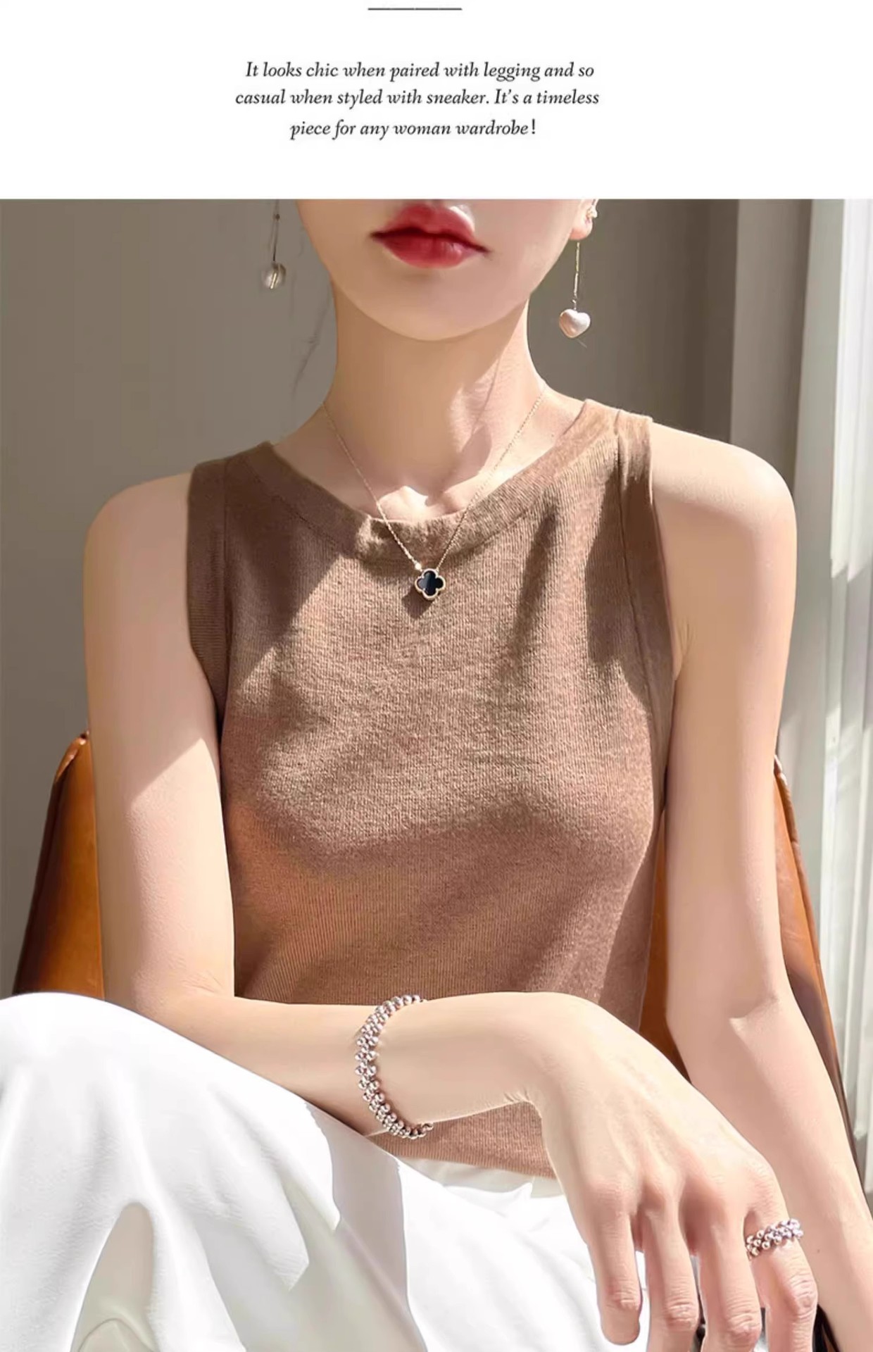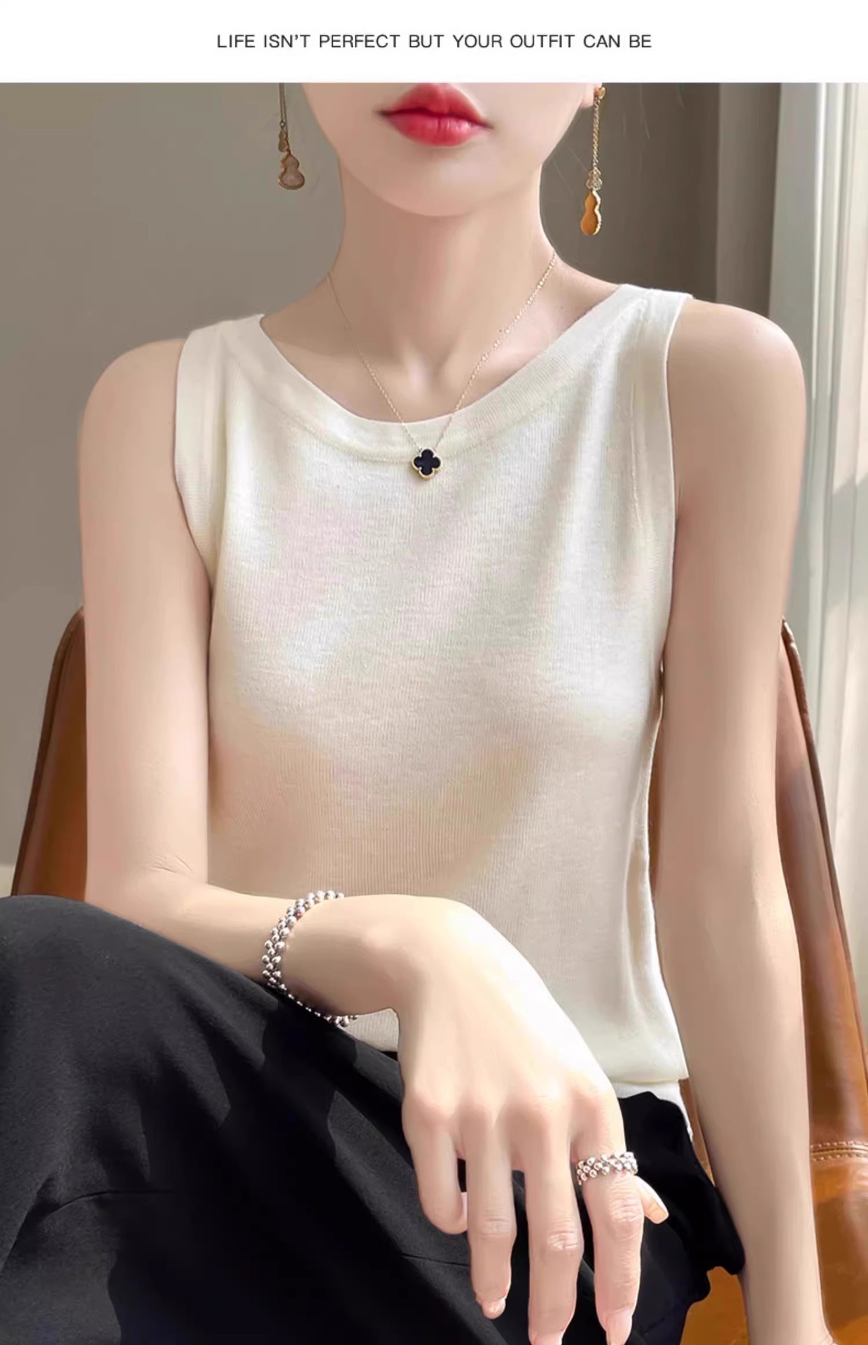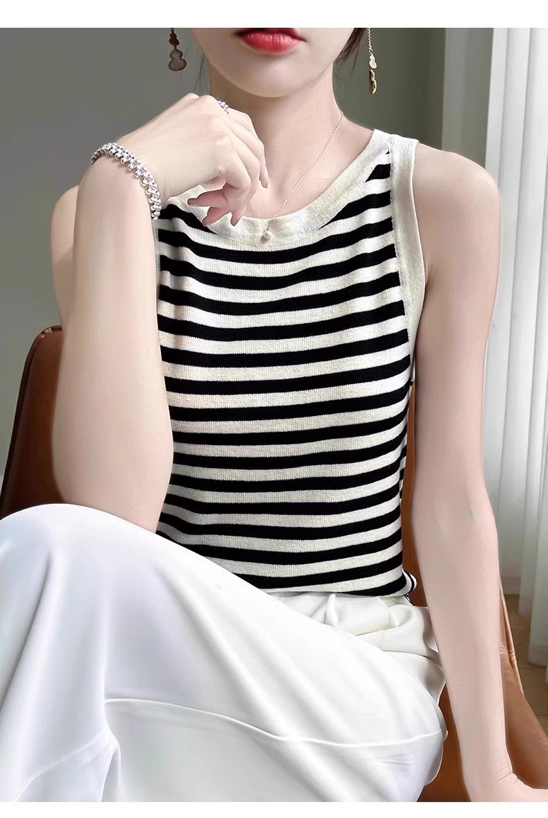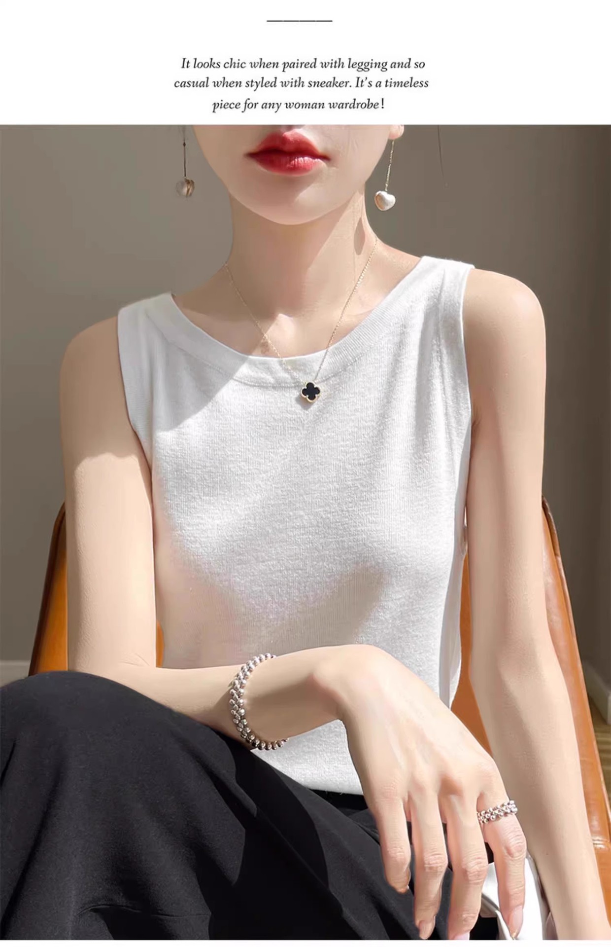 크루 넥 니트 카미 솔 여성용 내복 봄과 가을 스몰 사이즈 유방 커버 슬림 핏 민소매 기본 셔츠 세트 내복