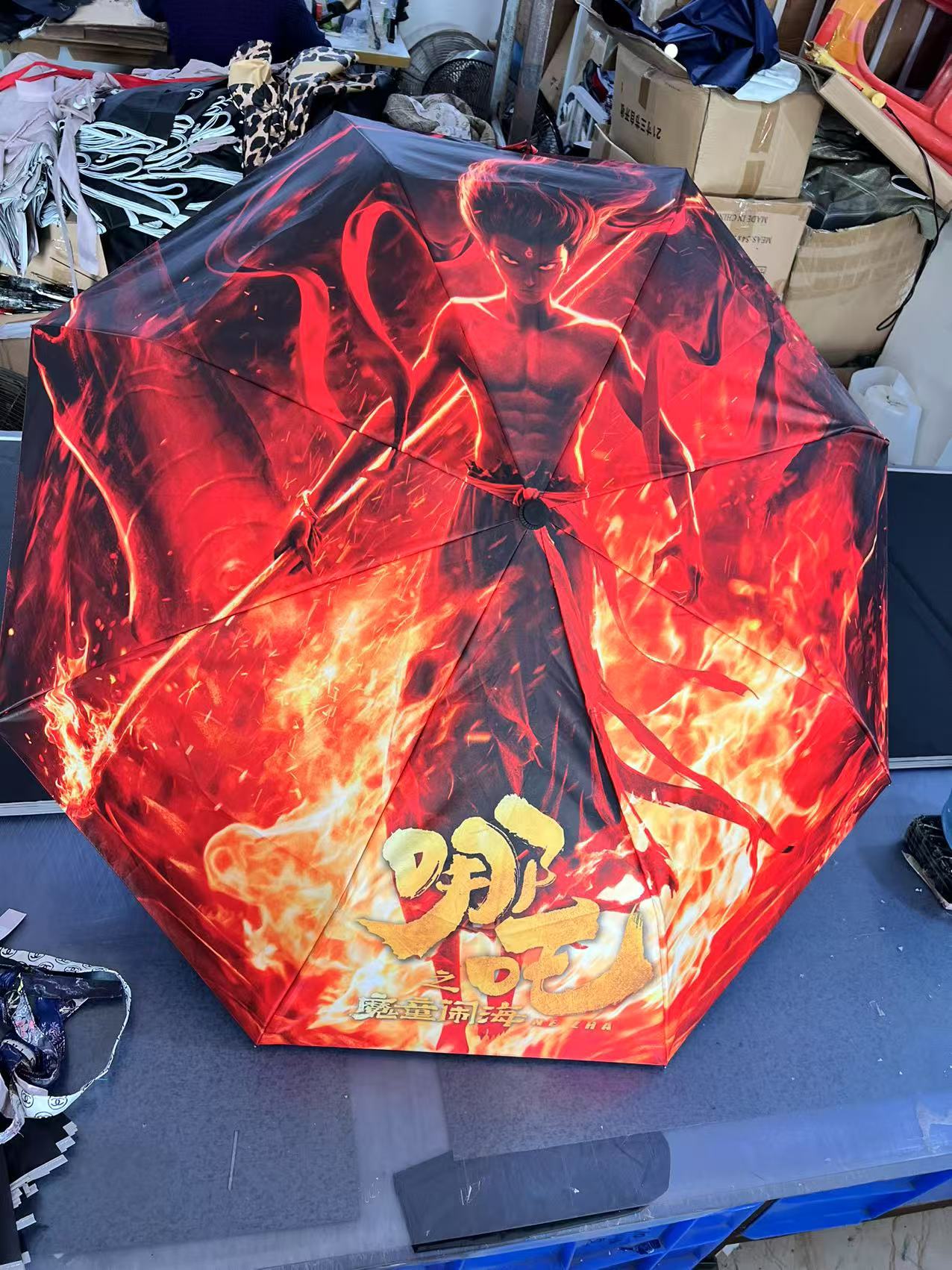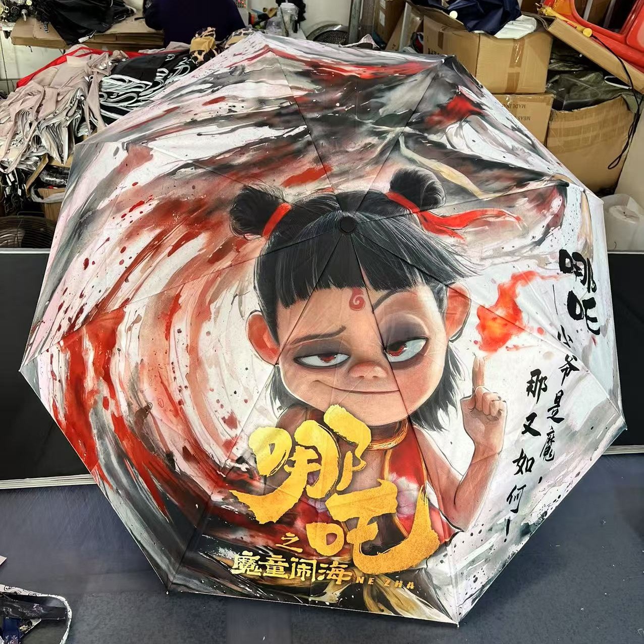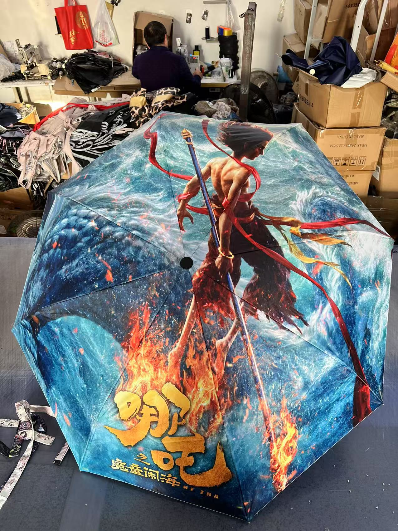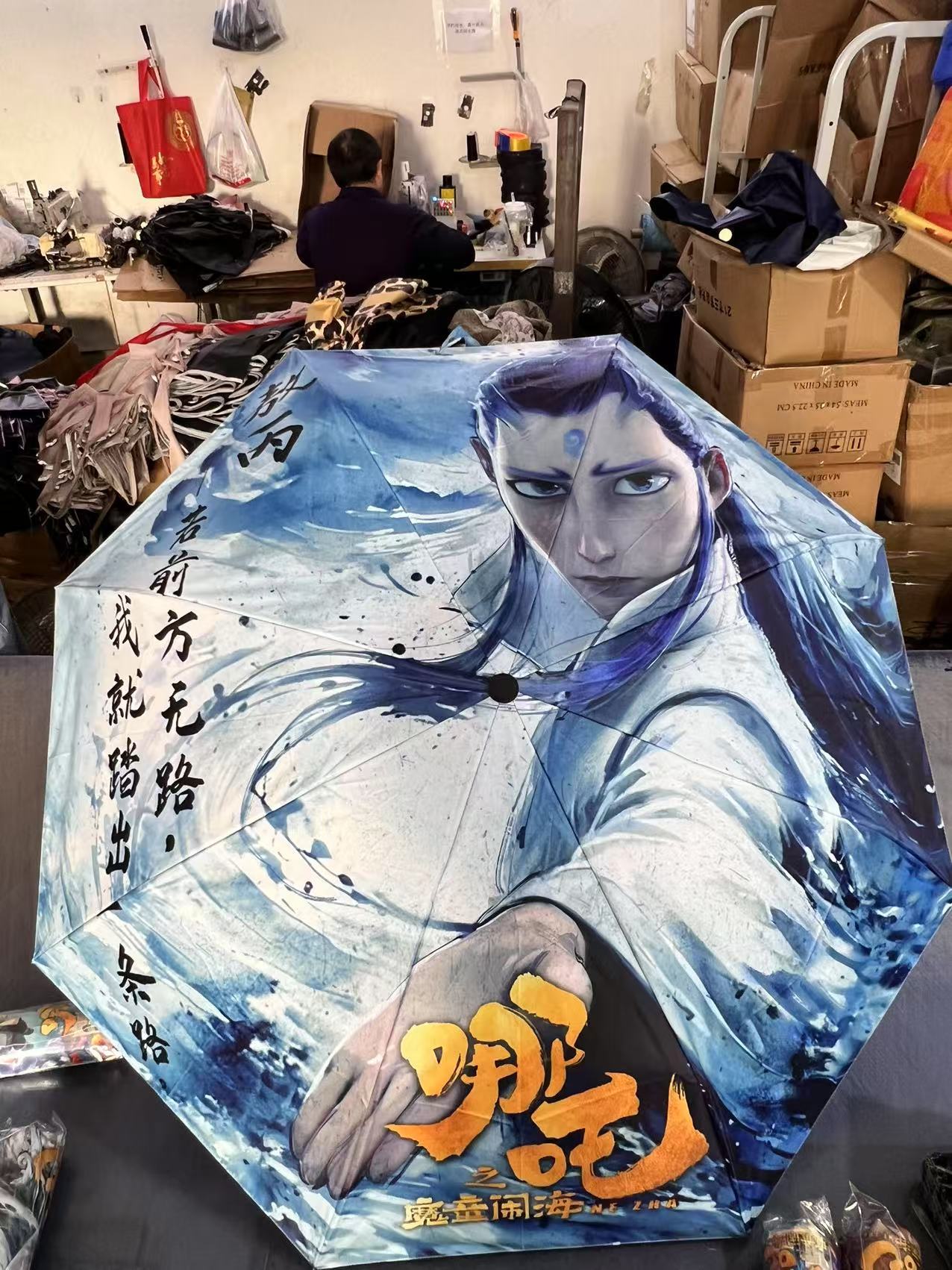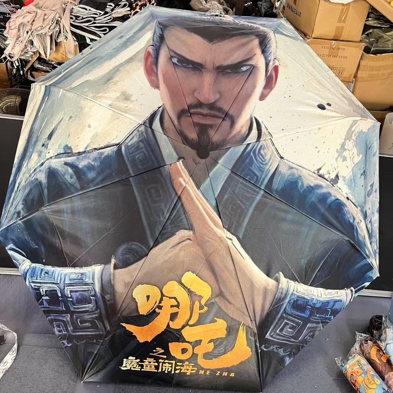 坚固的伞骨,是哪吒不屈的脊梁;绚丽的图案,展现他不羁的灵魂。当风雨来袭,撑开这把伞,如同哪吒直面命运挑战。
