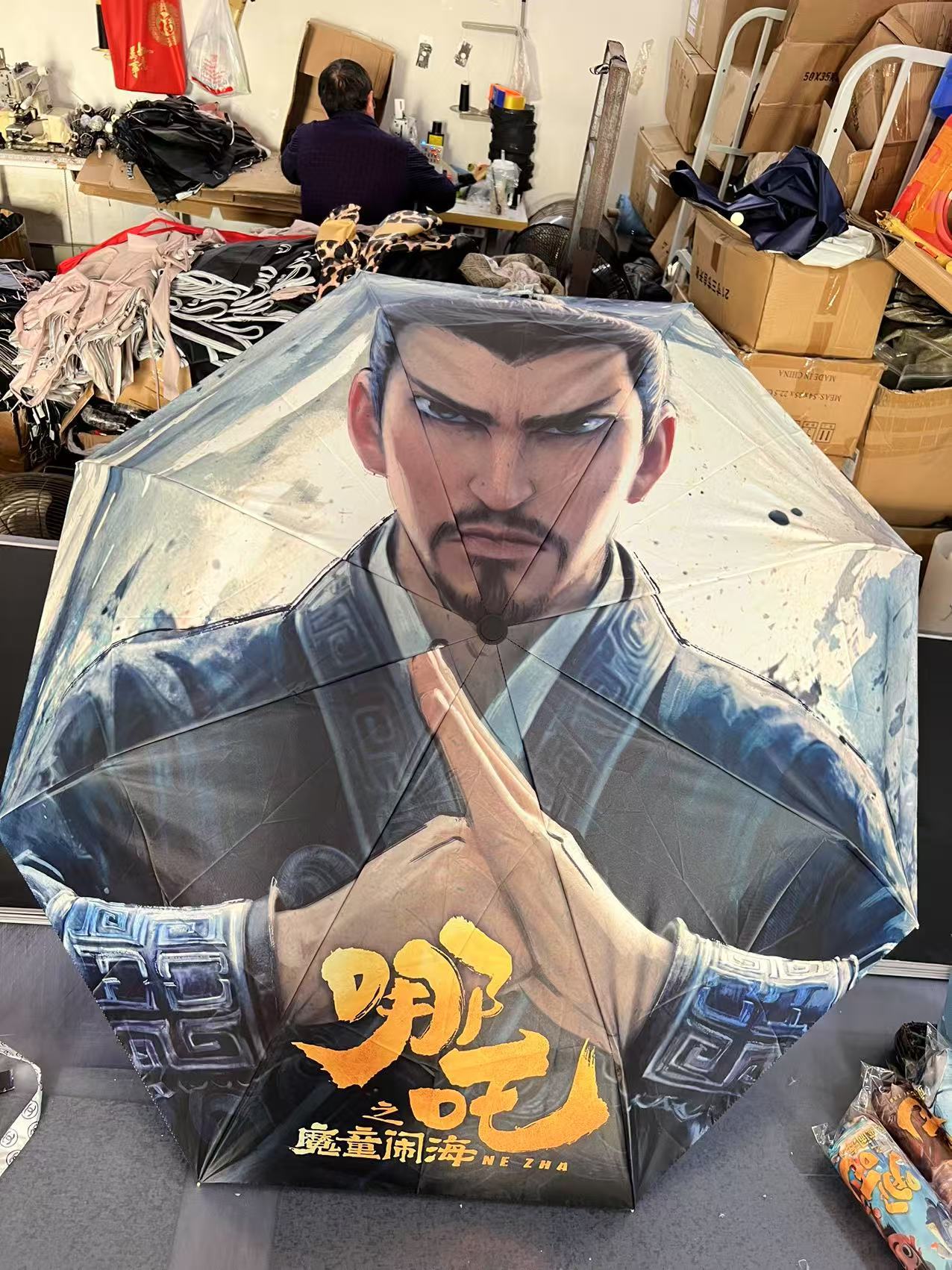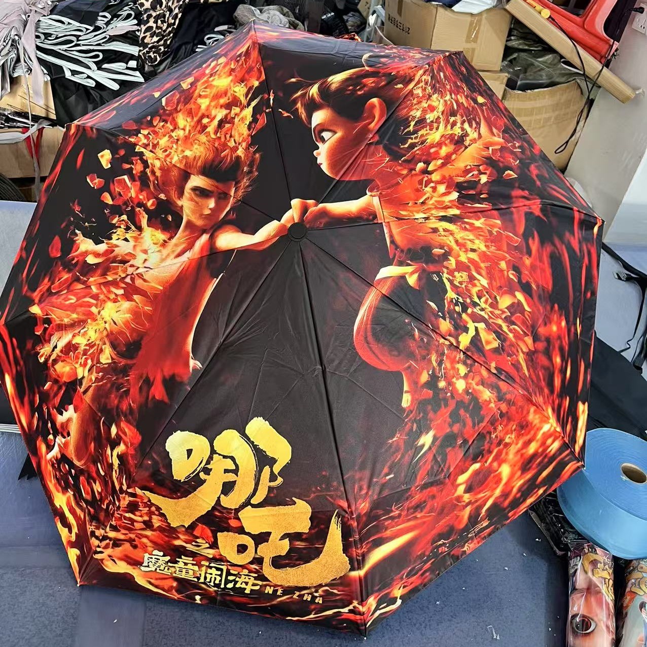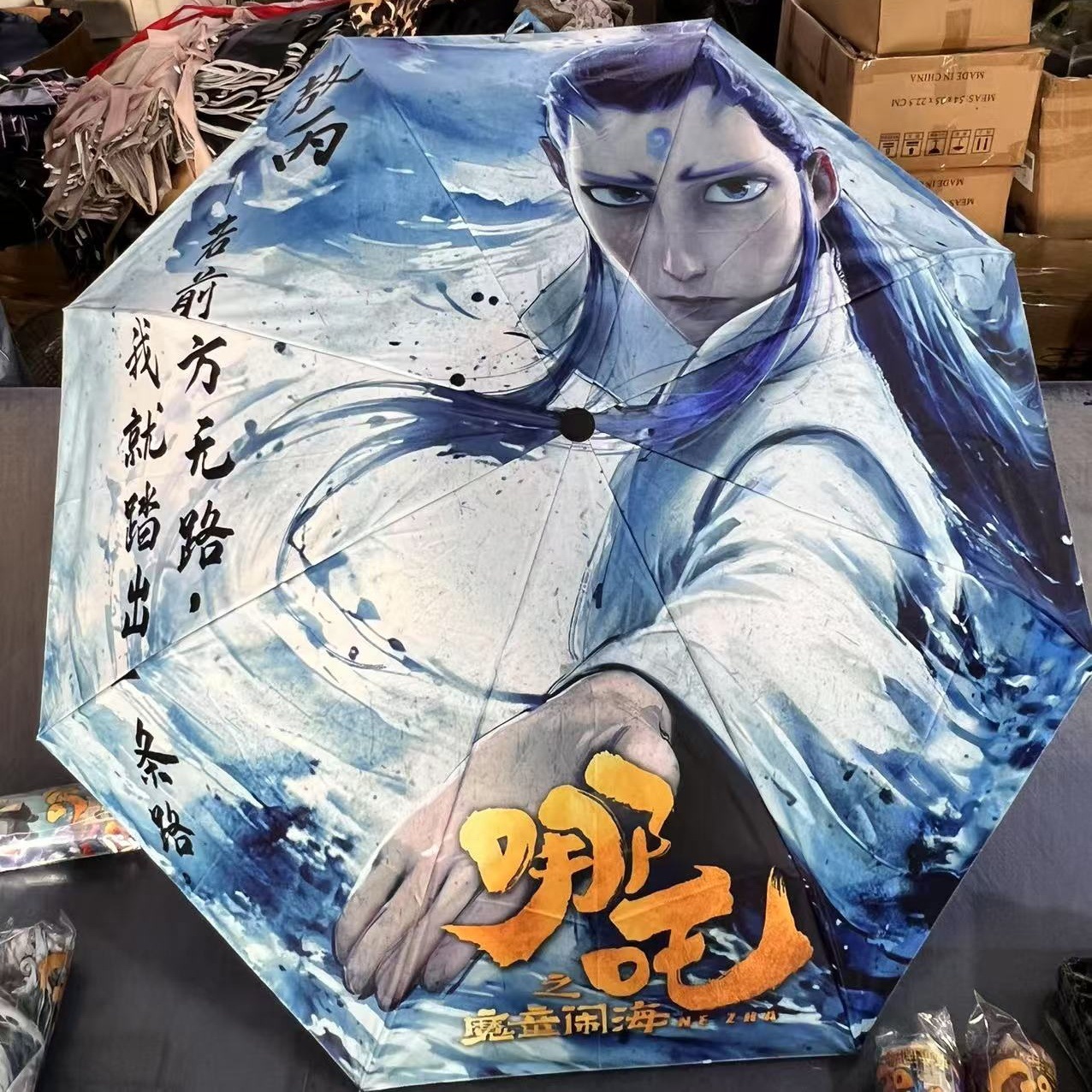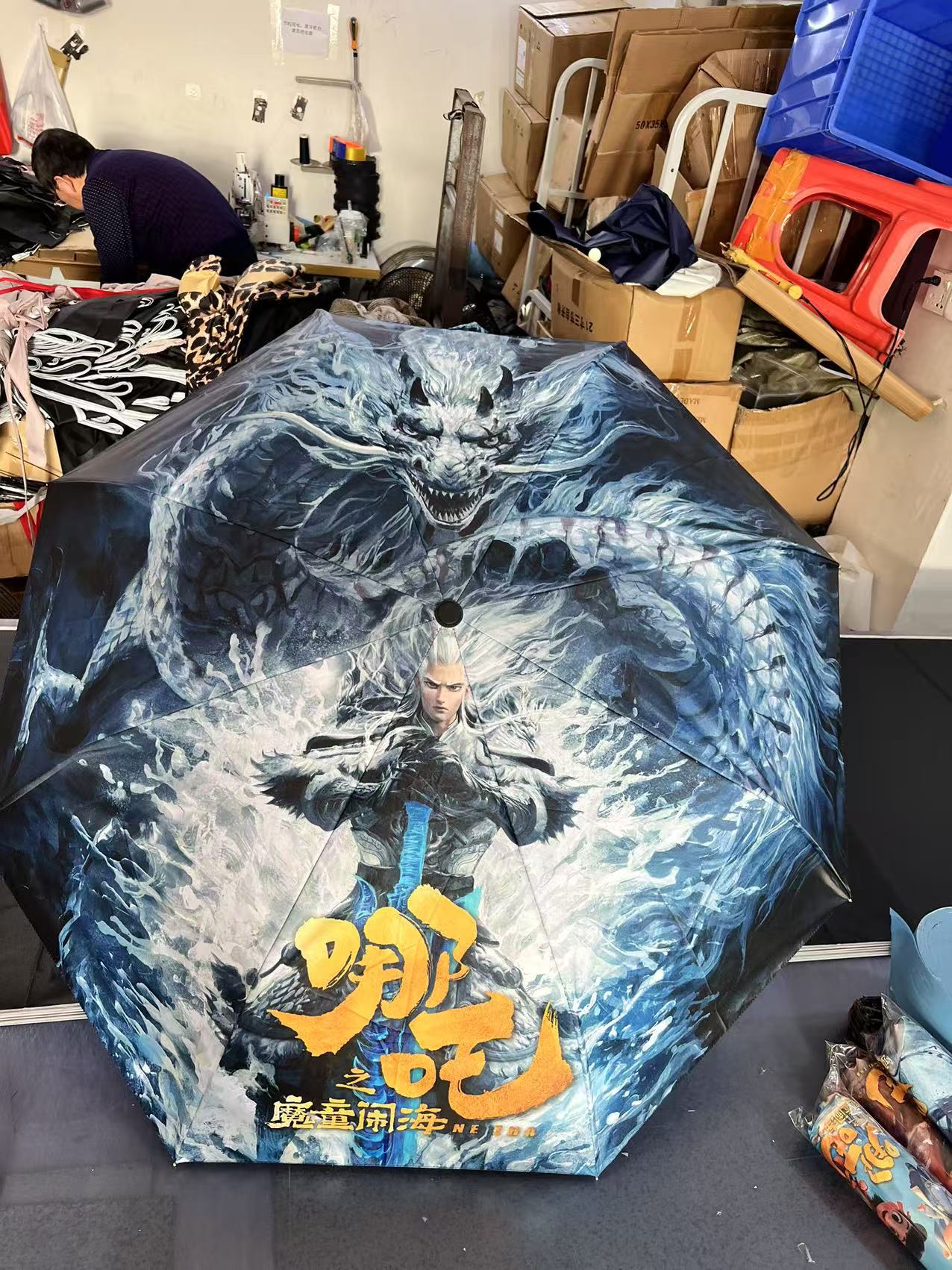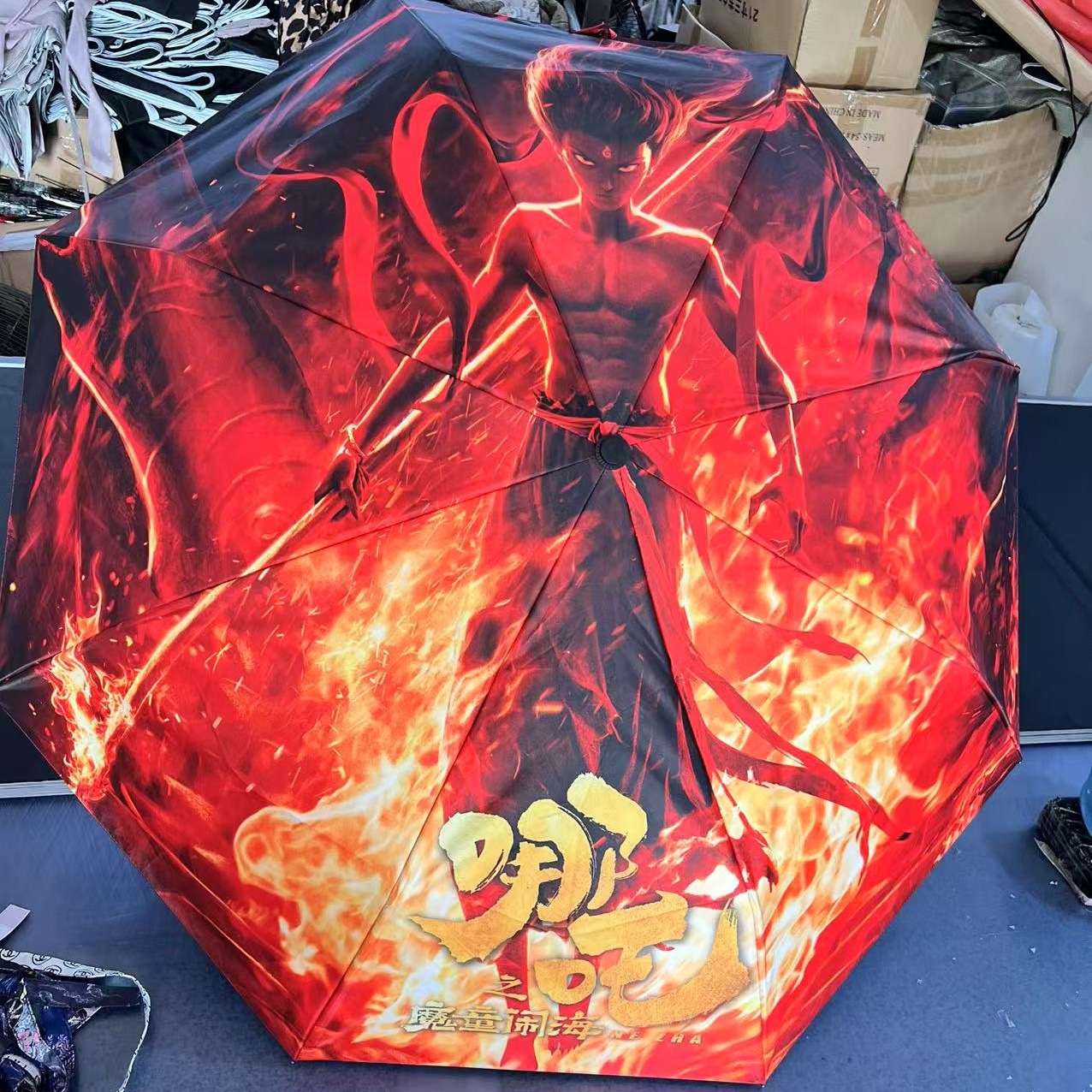 坚固的伞骨,是哪吒不屈的脊梁;绚丽的图案,展现他不羁的灵魂。当风雨来袭,撑开这把伞,如同哪吒直面命运挑战。
