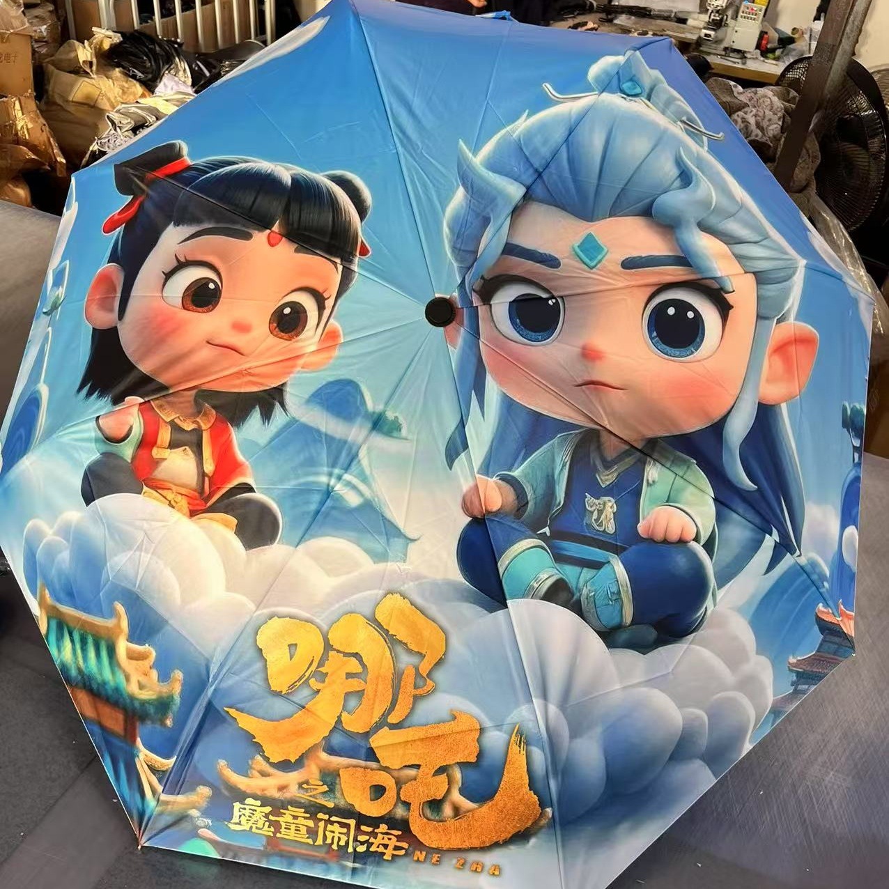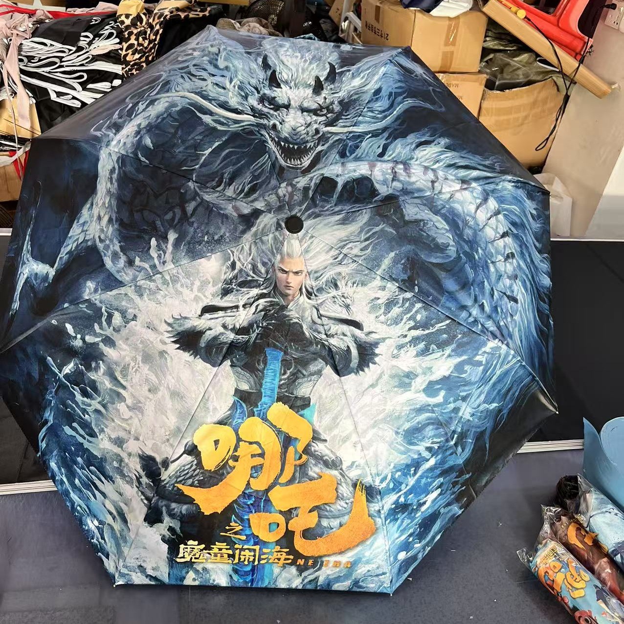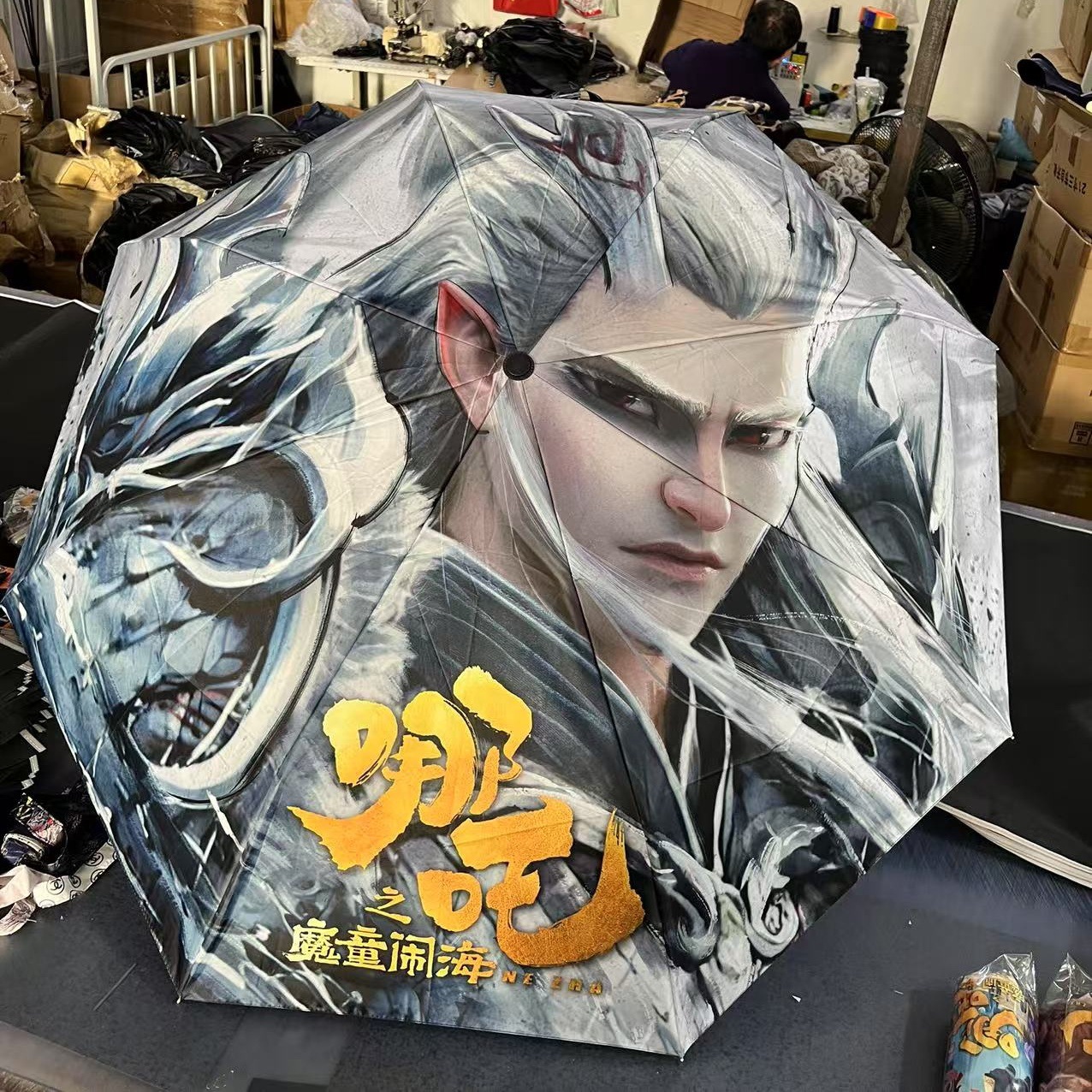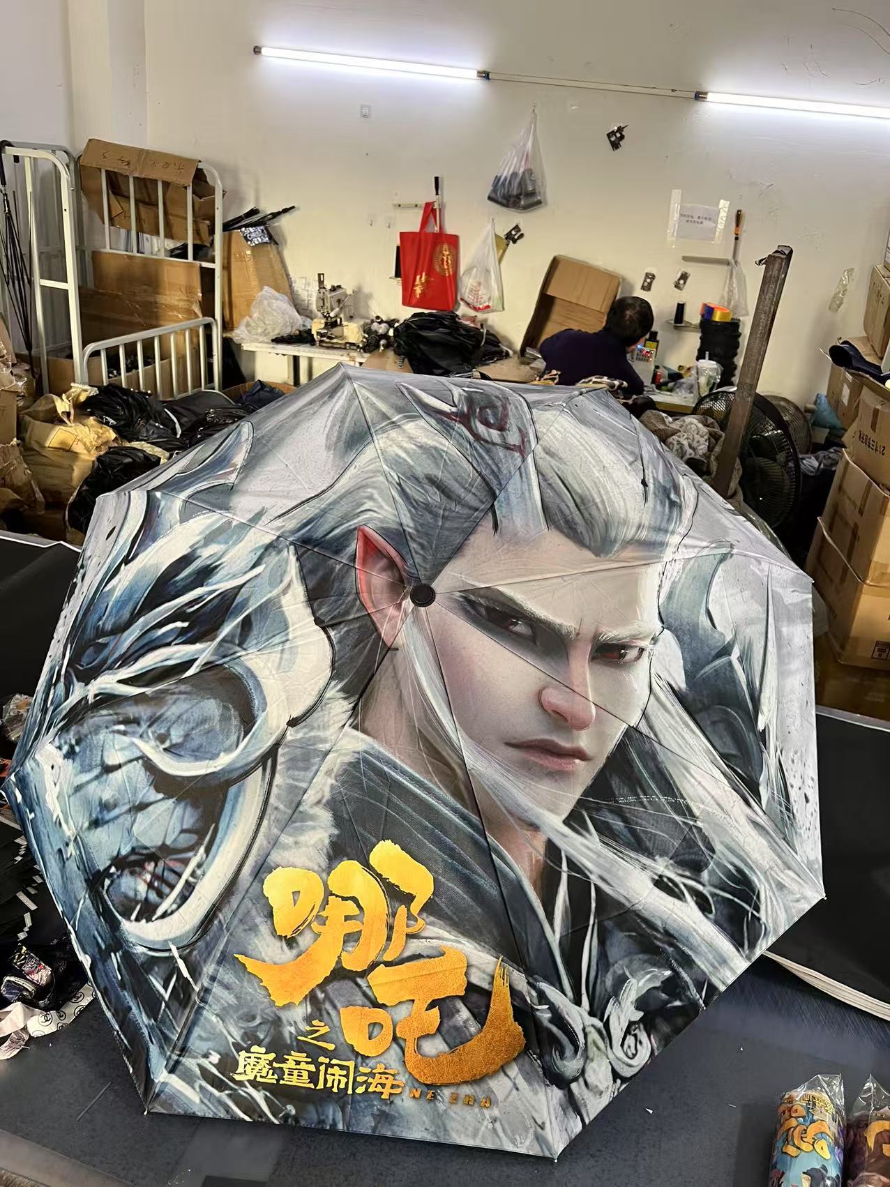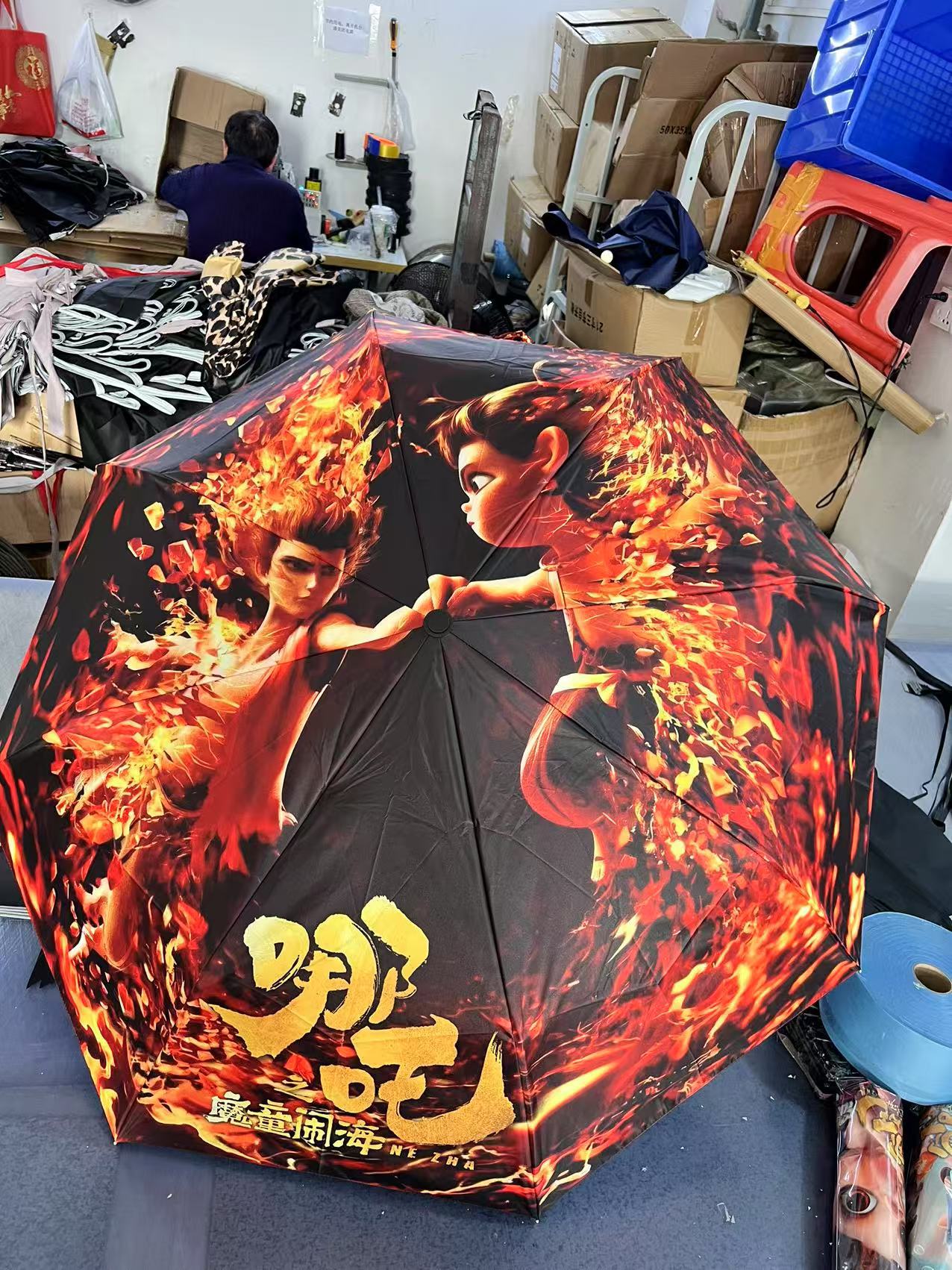坚固的伞骨,是哪吒不屈的脊梁;绚丽的图案,展现他不羁的灵魂。当风雨来袭,撑开这把伞,如同哪吒直面命运挑战。