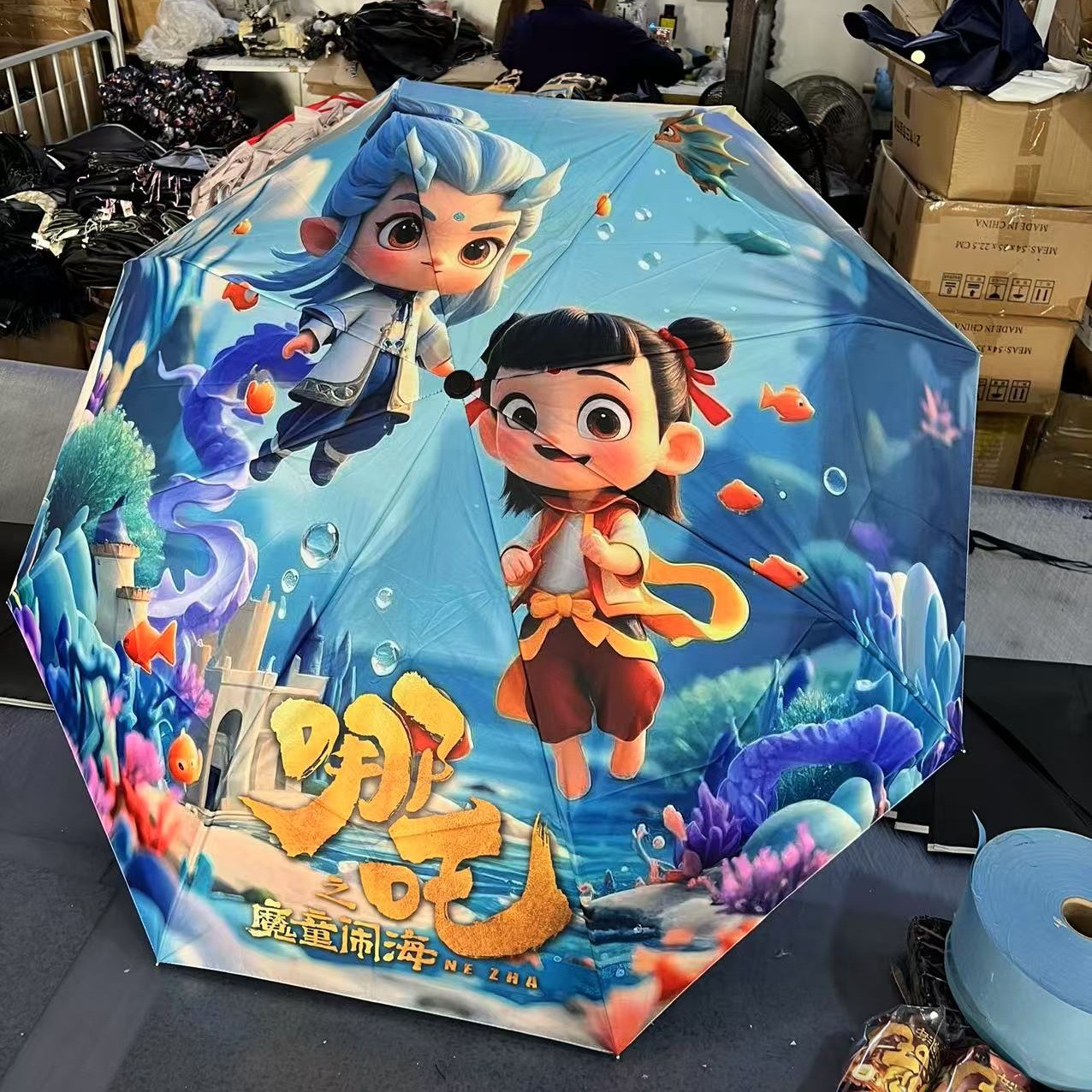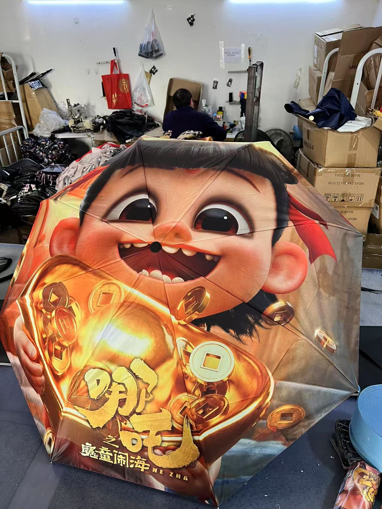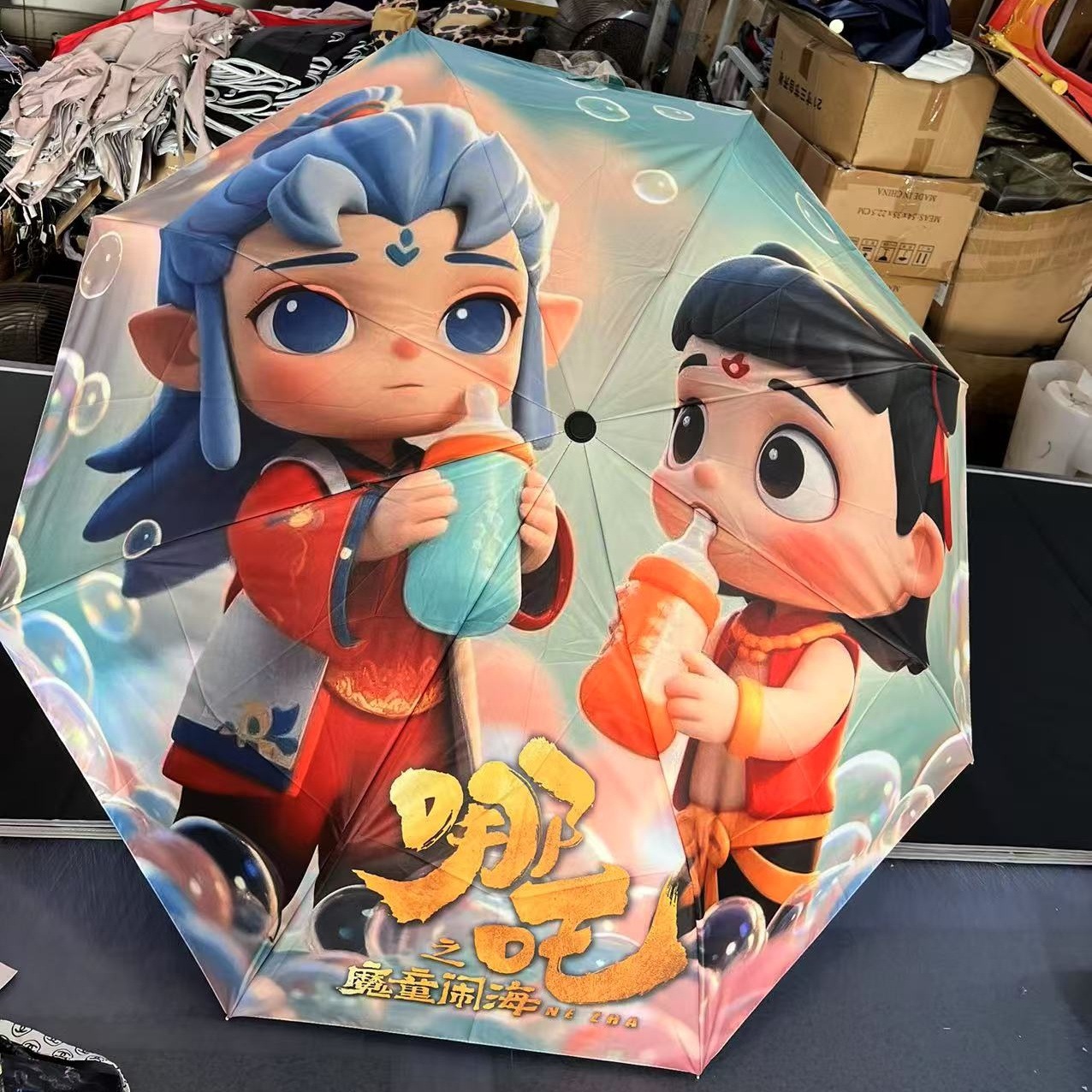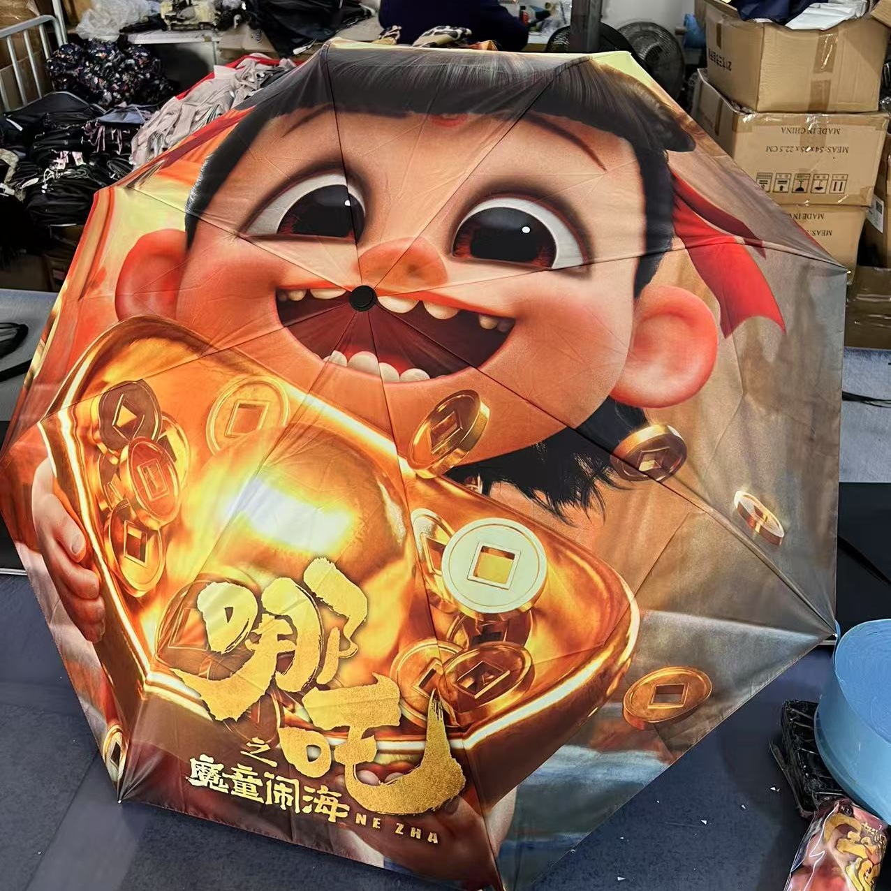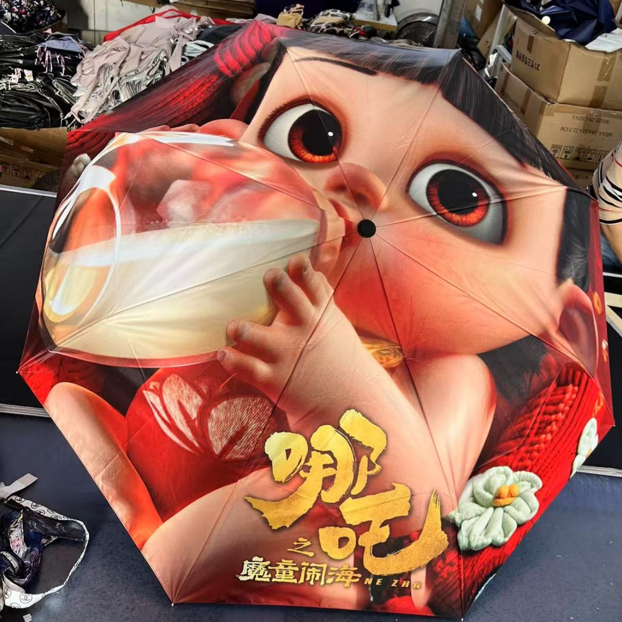 坚固的伞骨,是哪吒不屈的脊梁;绚丽的图案,展现他不羁的灵魂。当风雨来袭,撑开这把伞,如同哪吒直面命运挑战。