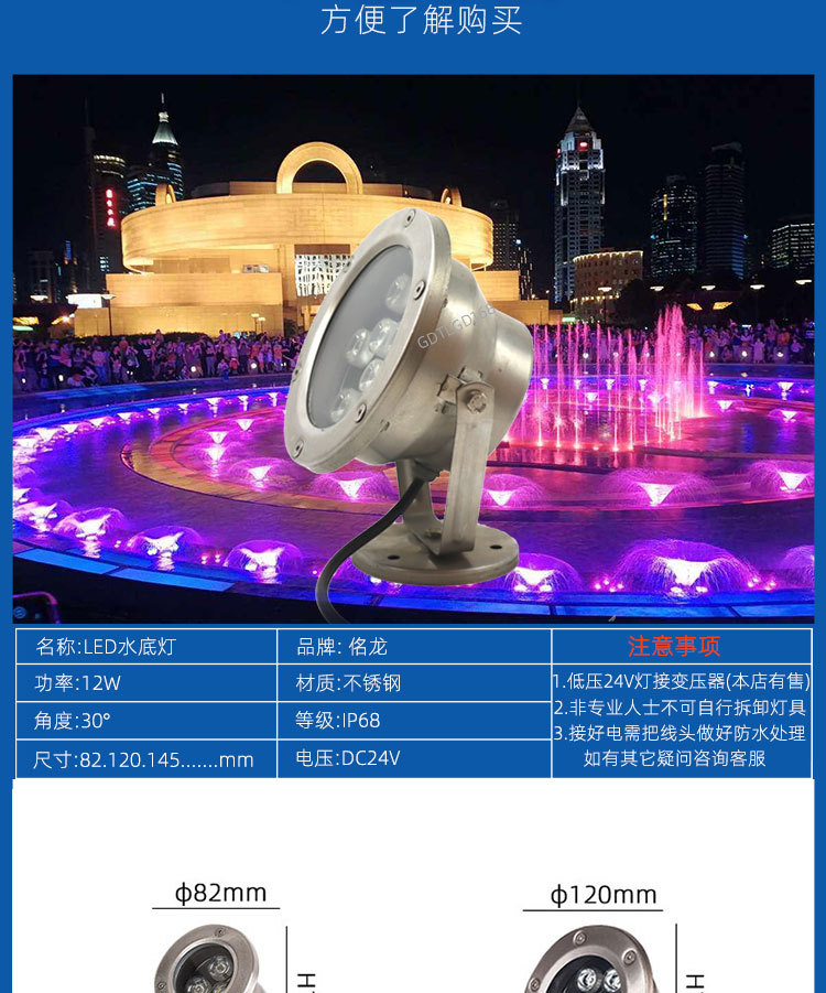 12V24Vled 수중등, 수중조명, 수영장 조명, 연못 조명, 조경 방수 스포트라이트, 분수 조명, LED 다이빙 조명