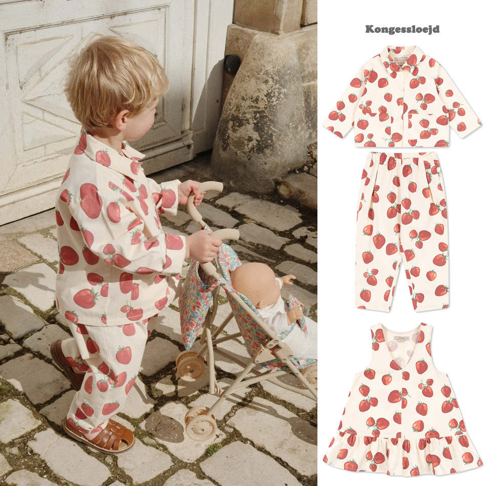 25 여름 신상 남녀 아동복 KS 동일 스타일 딸기 시리즈 자켓 캐주얼 상의 긴바지 세트 조끼 원피스스토어 가기