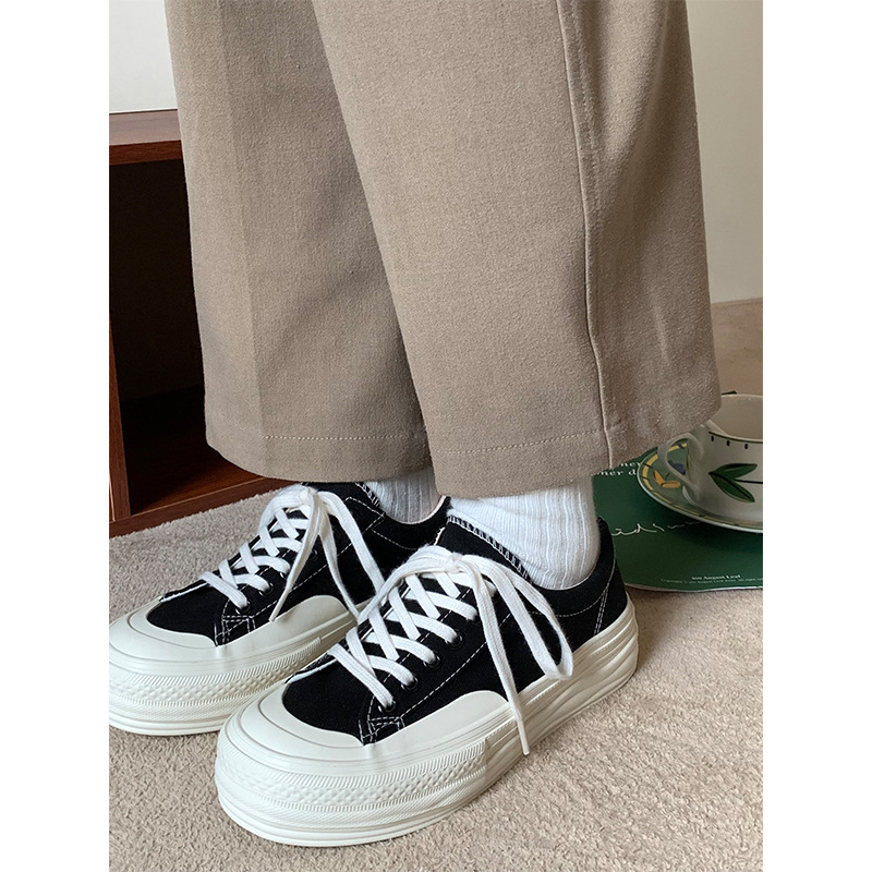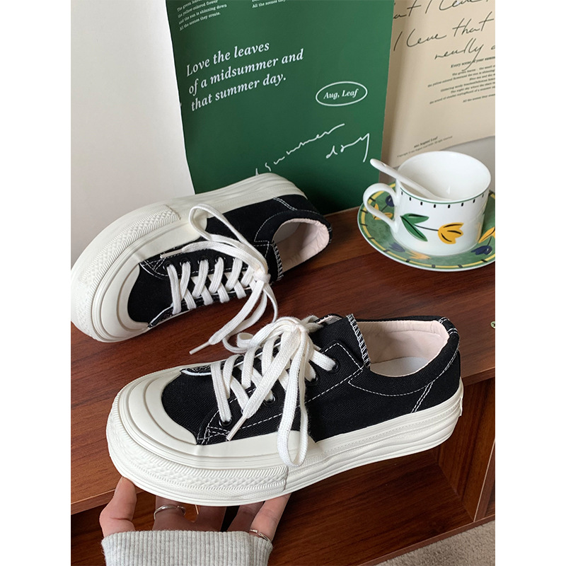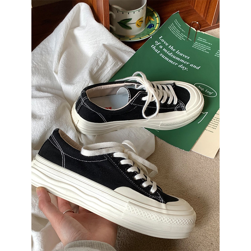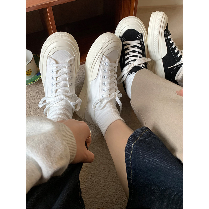 플랫폼 캔버스 신발 여성 용해 신발 귀여운 일본 스타일 큰 머리 신발 2025 봄 새로운 도착 올매치 화이트 신발 학생 여성스토어 가기